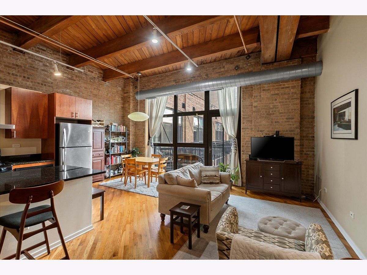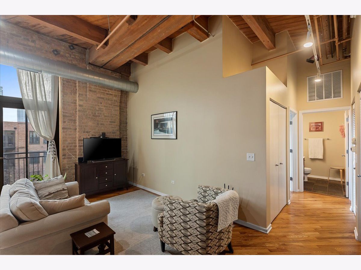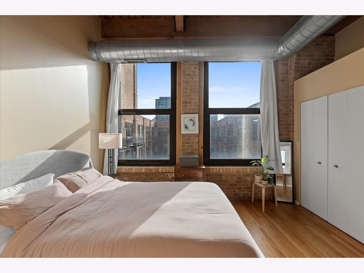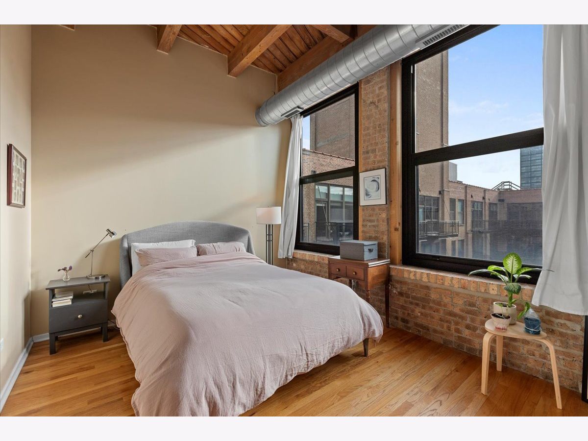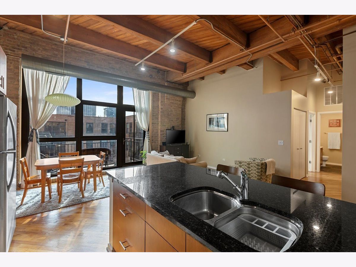 Top floor, sunny brick and timber loft with a fully enclosed bedroom, in a full amenity building in the West Loop! This unit soaks in the sunlight from the south facing windows that overlook the building's serene courtyard. This spacious home has tall ceilings, large windows, and hardwood floors. The open floorplan has an updated kitchen with granite and stainless steel appliances and a large breakfast bar. The living area has ample room for both living and dining! There is a private balcony accessed from the living room. The bedroom is large and features 2 big windows, a wall of closets, and is fully enclosed (with a full wall and door). The bathroom is a generous size and has slate tile floors and a soaking tub. Washer/dryer in the unit (new ~2023), garage parking available for 30k, storage onsite. This building has a stunning lobby, open and well designed with multiple seating areas, and a 24 hour doorstaff and onsite management. There is a large exercise room, Owners Lounge with seating/kitchen/pool table/and terrace, business center and conference room, and a theater! This is a fabulous West Loop location with easy access to the Loop, public transit, highways, and many dining, shopping and nightlife options!
