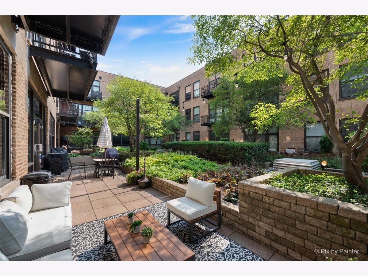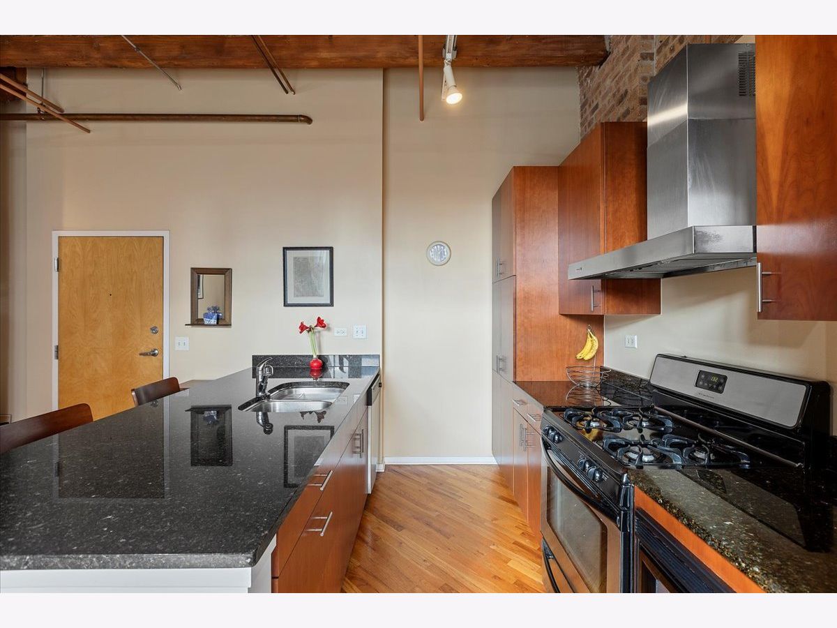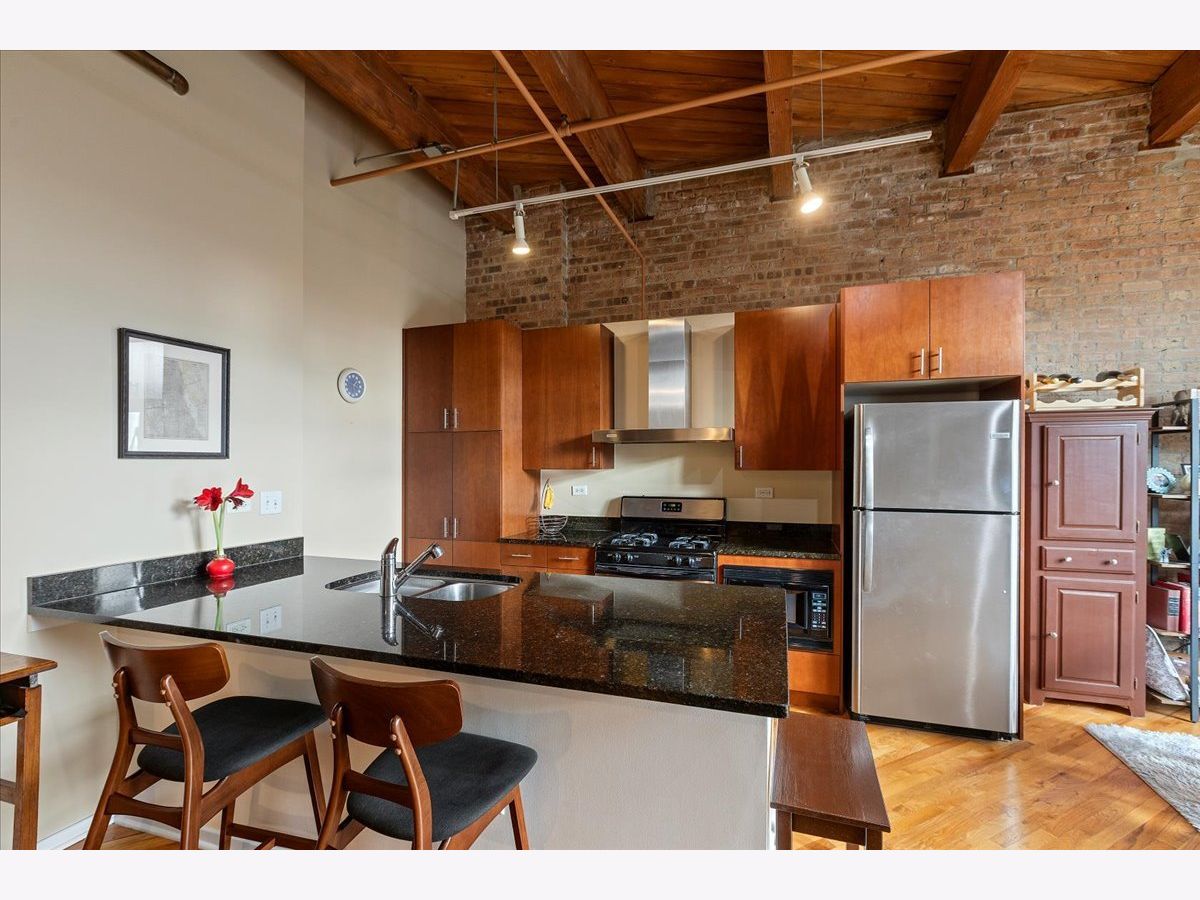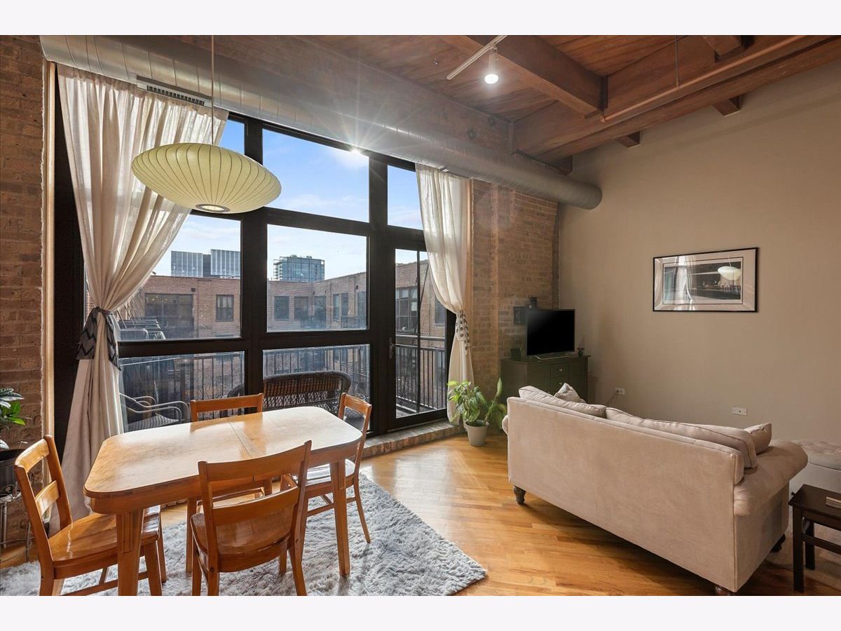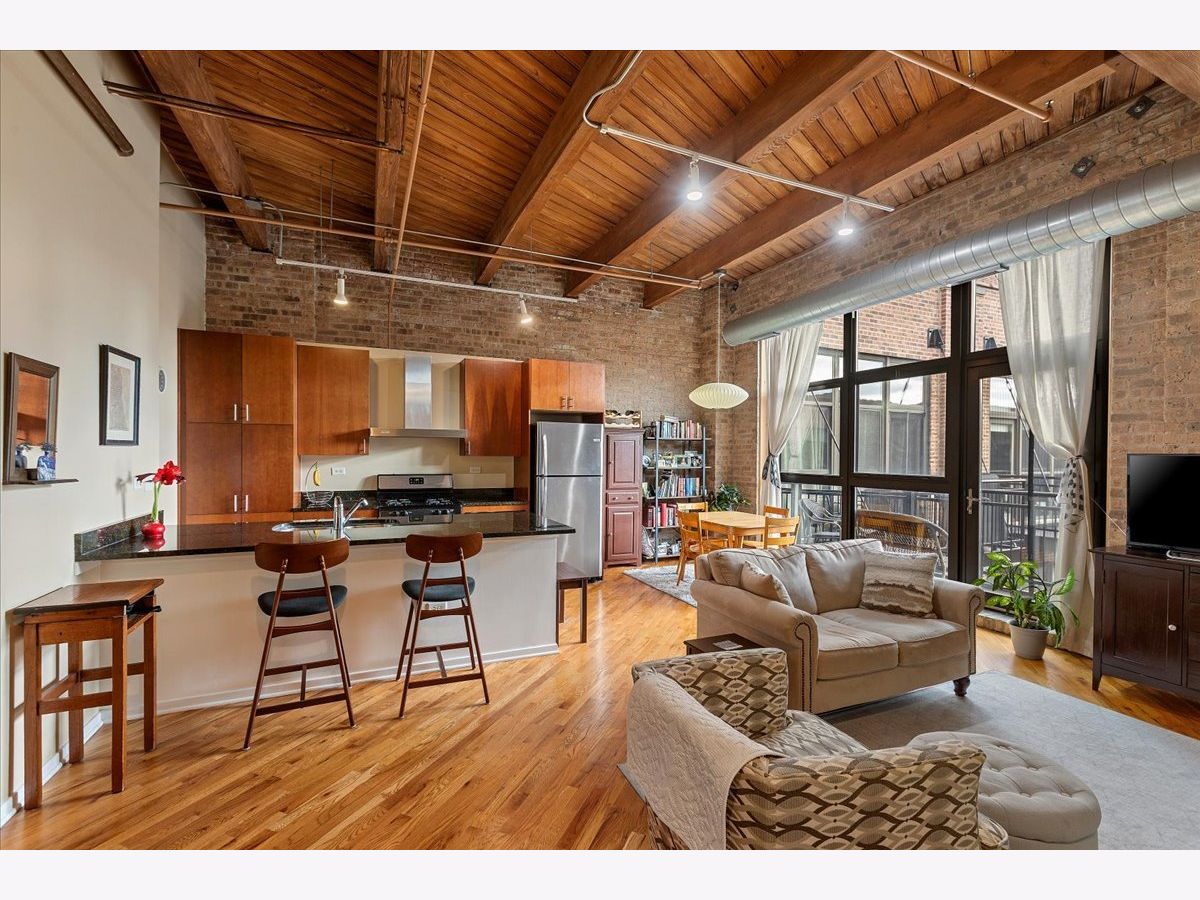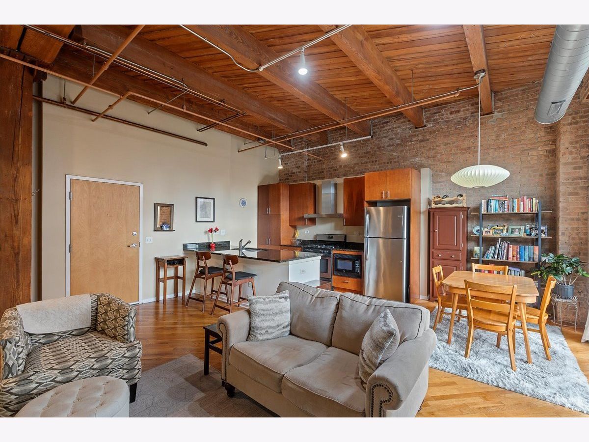 Top floor, sunny brick and timber loft with a fully enclosed bedroom, in a full amenity building in the West Loop! This unit soaks in the sunlight from the south facing windows that overlook the building's serene courtyard. This spacious home has tall ceilings, large windows, and hardwood floors. The open floorplan has an updated kitchen with granite and stainless steel appliances and a large breakfast bar. The living area has ample room for both living and dining! There is a private balcony accessed from the living room. The bedroom is large and features 2 big windows, a wall of closets, and is fully enclosed (with a full wall and door). The bathroom is a generous size and has slate tile floors and a soaking tub. Washer/dryer in the unit (new ~2023), garage parking available for 30k, storage onsite. This building has a stunning lobby, open and well designed with multiple seating areas, and a 24 hour doorstaff and onsite management. There is a large exercise room, Owners Lounge with seating/kitchen/pool table/and terrace, business center and conference room, and a theater! This is a fabulous West Loop location with easy access to the Loop, public transit, highways, and many dining, shopping and nightlife options!