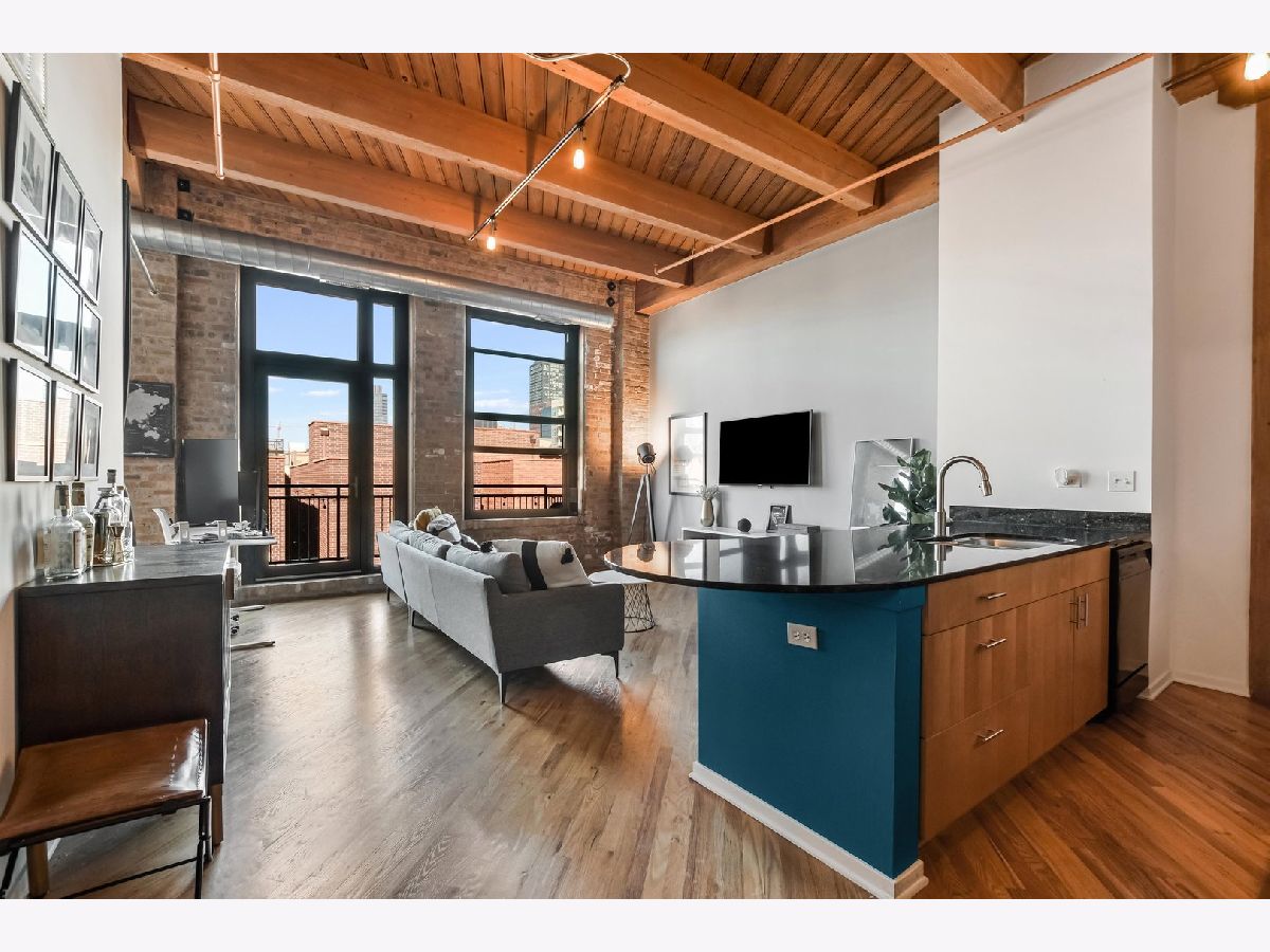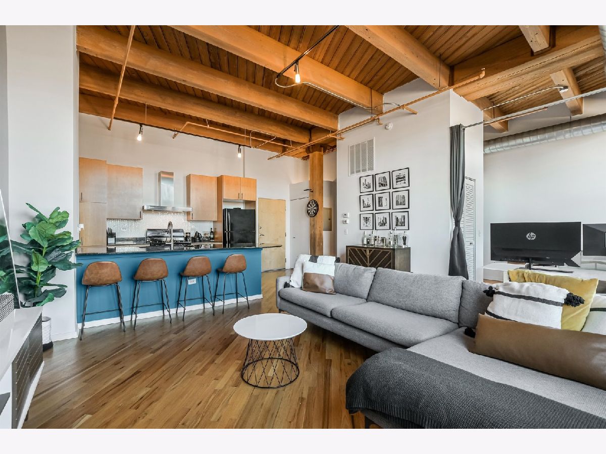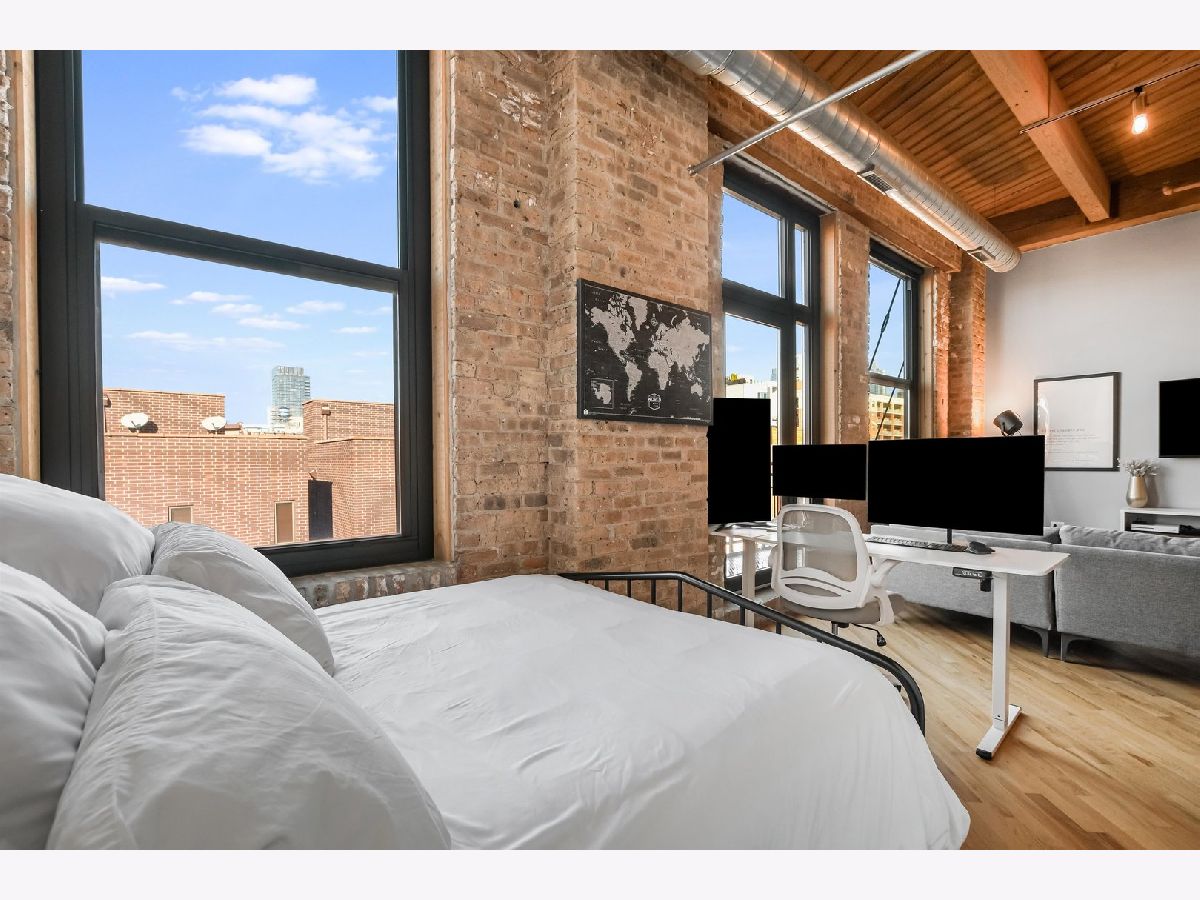 Top-floor junior 1-bedroom timber loft at West Loop's sought-after No. 10 Lofts. This bright, beautifully updated home features an open, highly functional layout with exposed brick, 11' timber ceilings, hardwood floors, and generous natural light throughout. Enjoy a generous sized balcony, in-unit laundry, and modern finishes. The full-amenity building offers a fitness center, movie theater, party room, business center, on-site property management, and 24-hour door staff. Garage parking available for additional 30k.