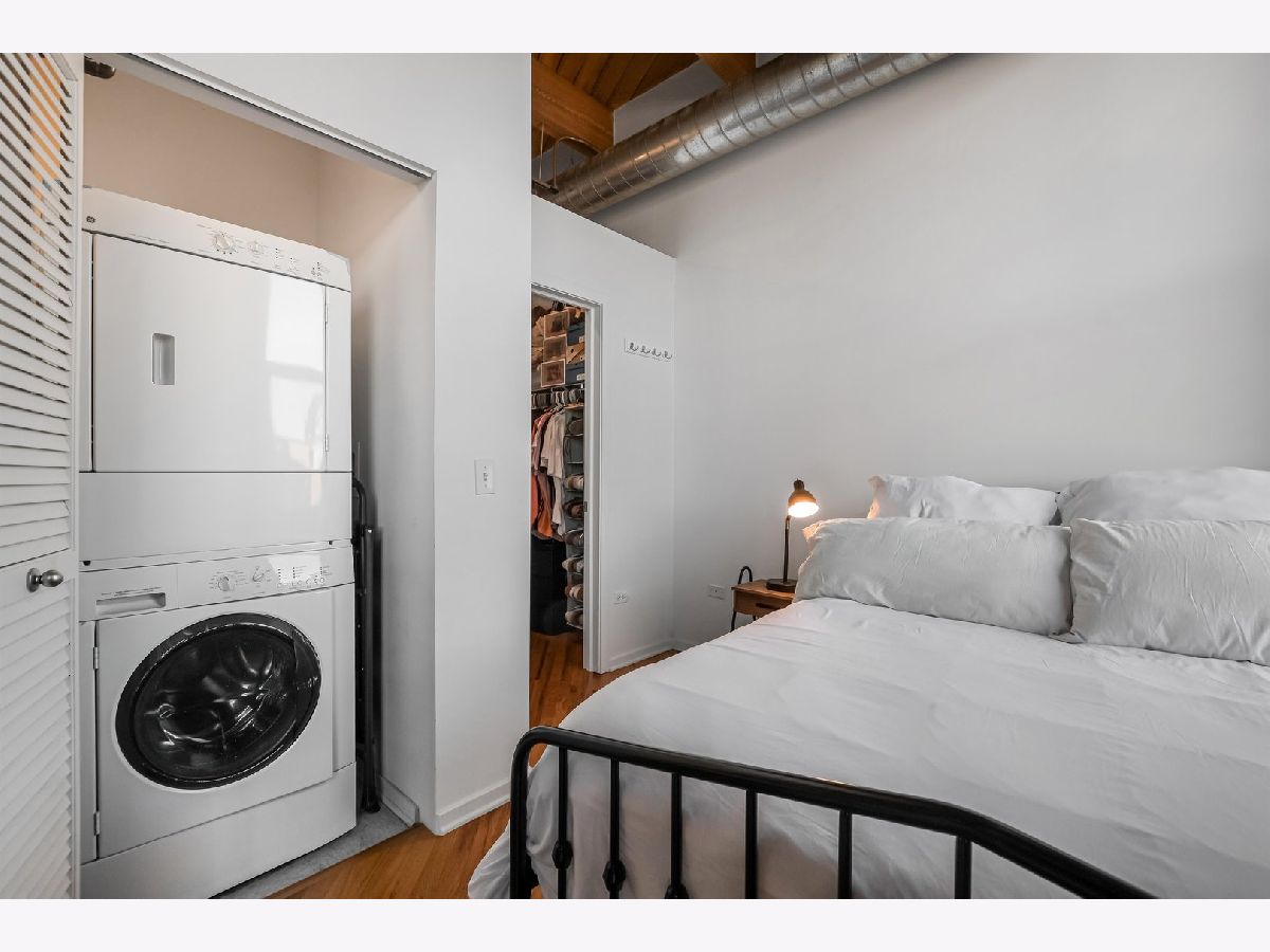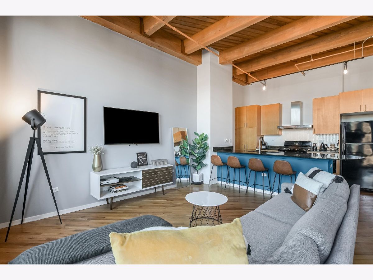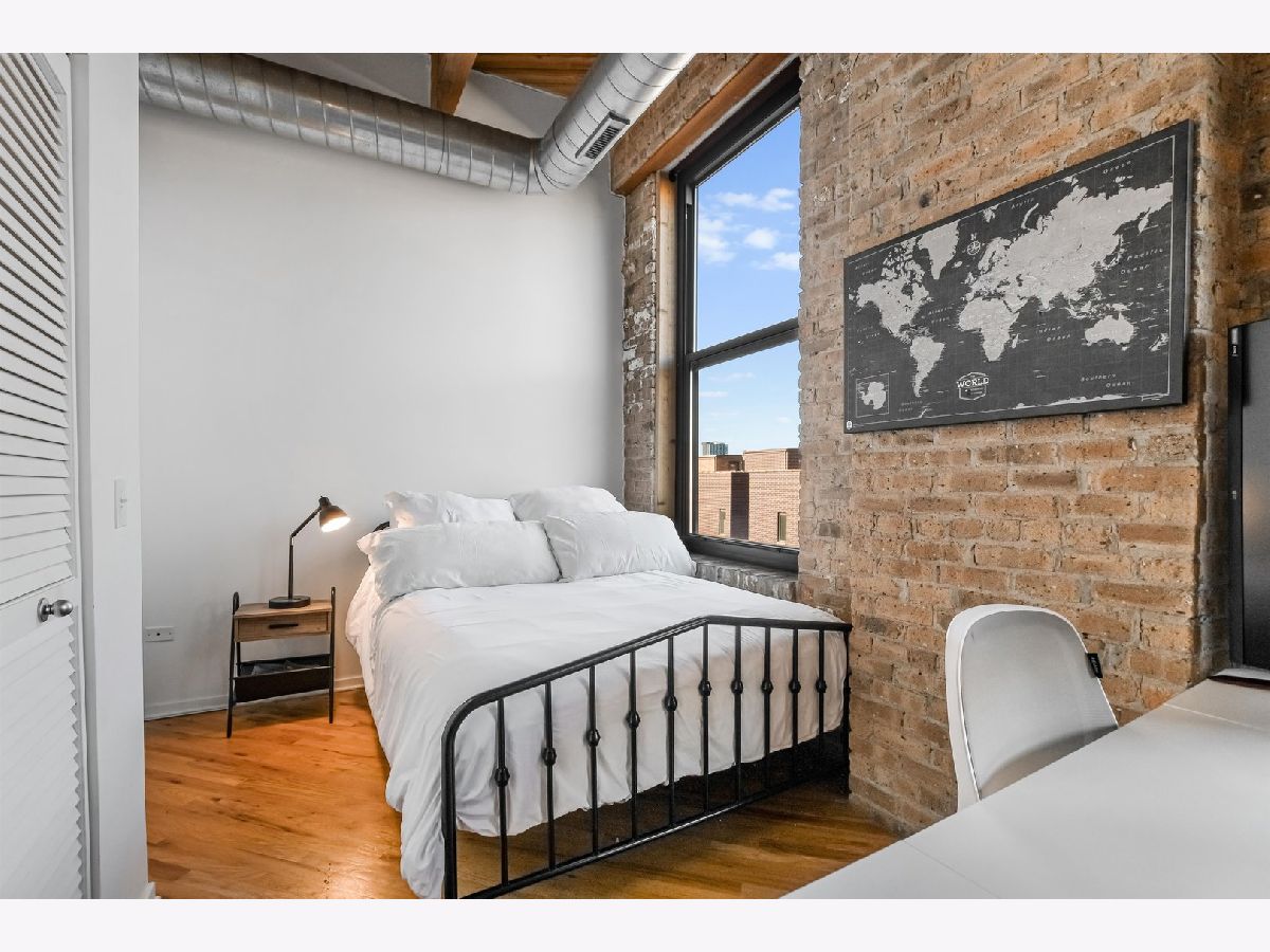 Top-floor junior 1-bedroom timber loft at West Loop's sought-after No. 10 Lofts. This bright, beautifully updated home features an open, highly functional layout with exposed brick, 11' timber ceilings, hardwood floors, and generous natural light throughout. Enjoy a generous sized balcony, in-unit laundry, and modern finishes. The full-amenity building offers a fitness center, movie theater, party room, business center, on-site property management, and 24-hour door staff. Garage parking available for additional 30k.