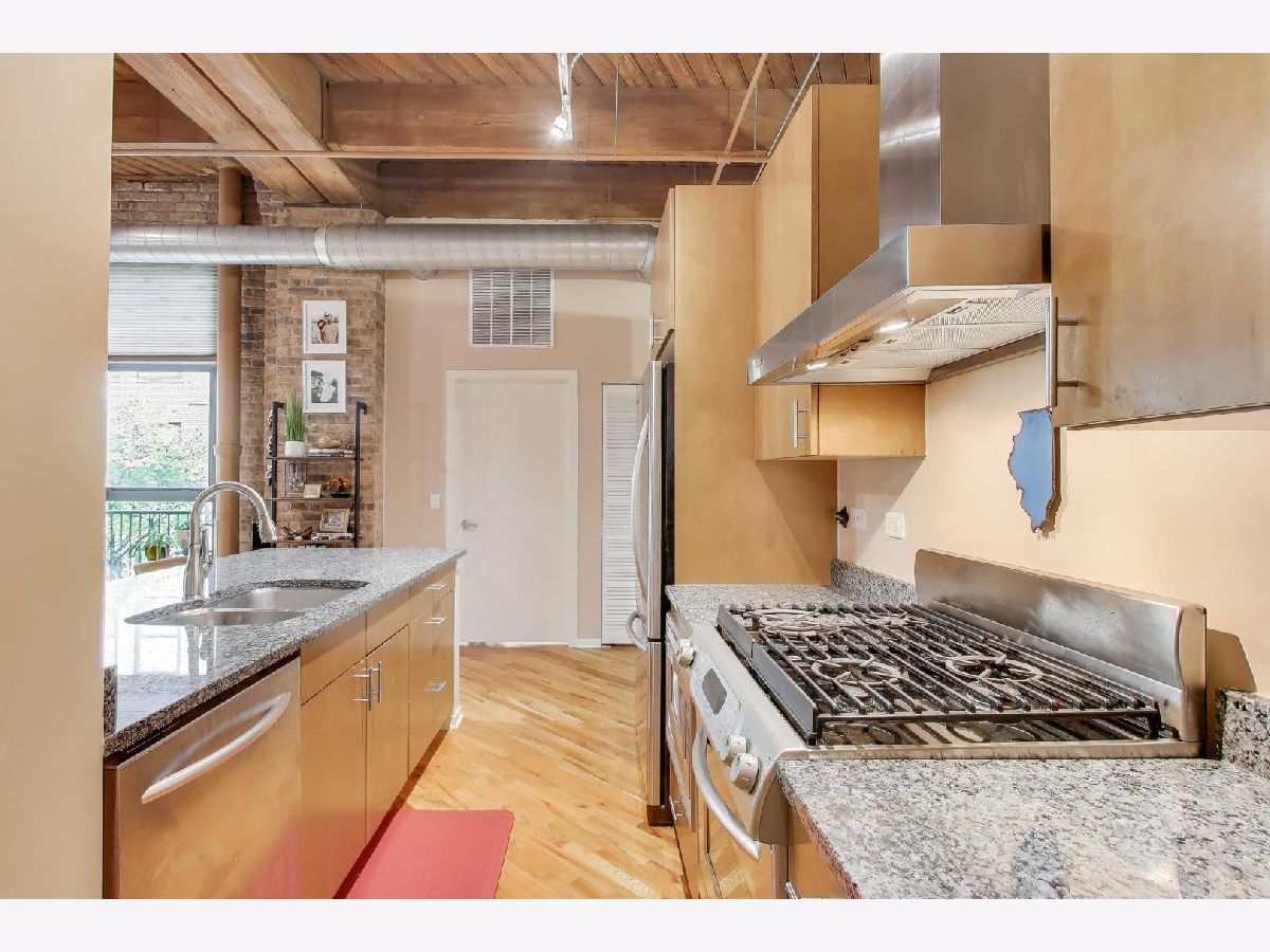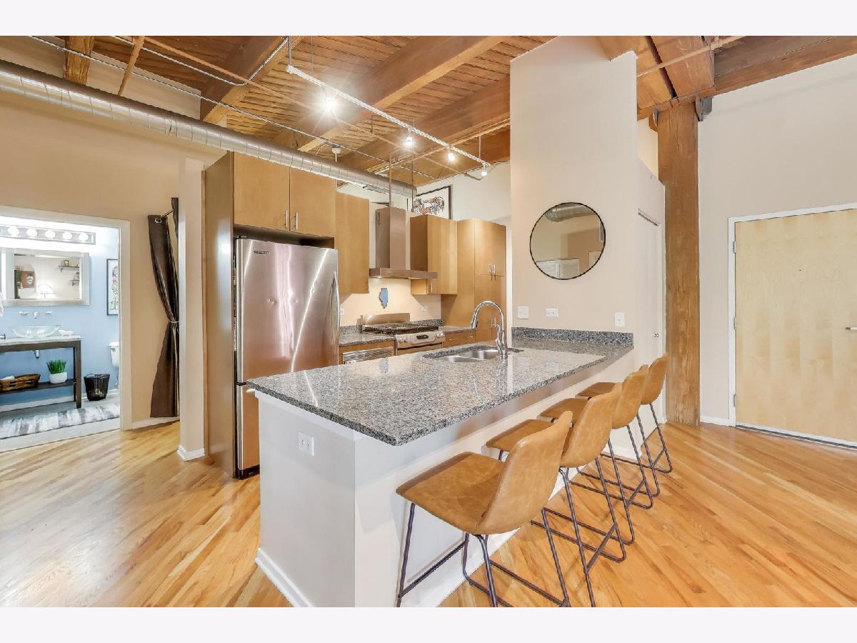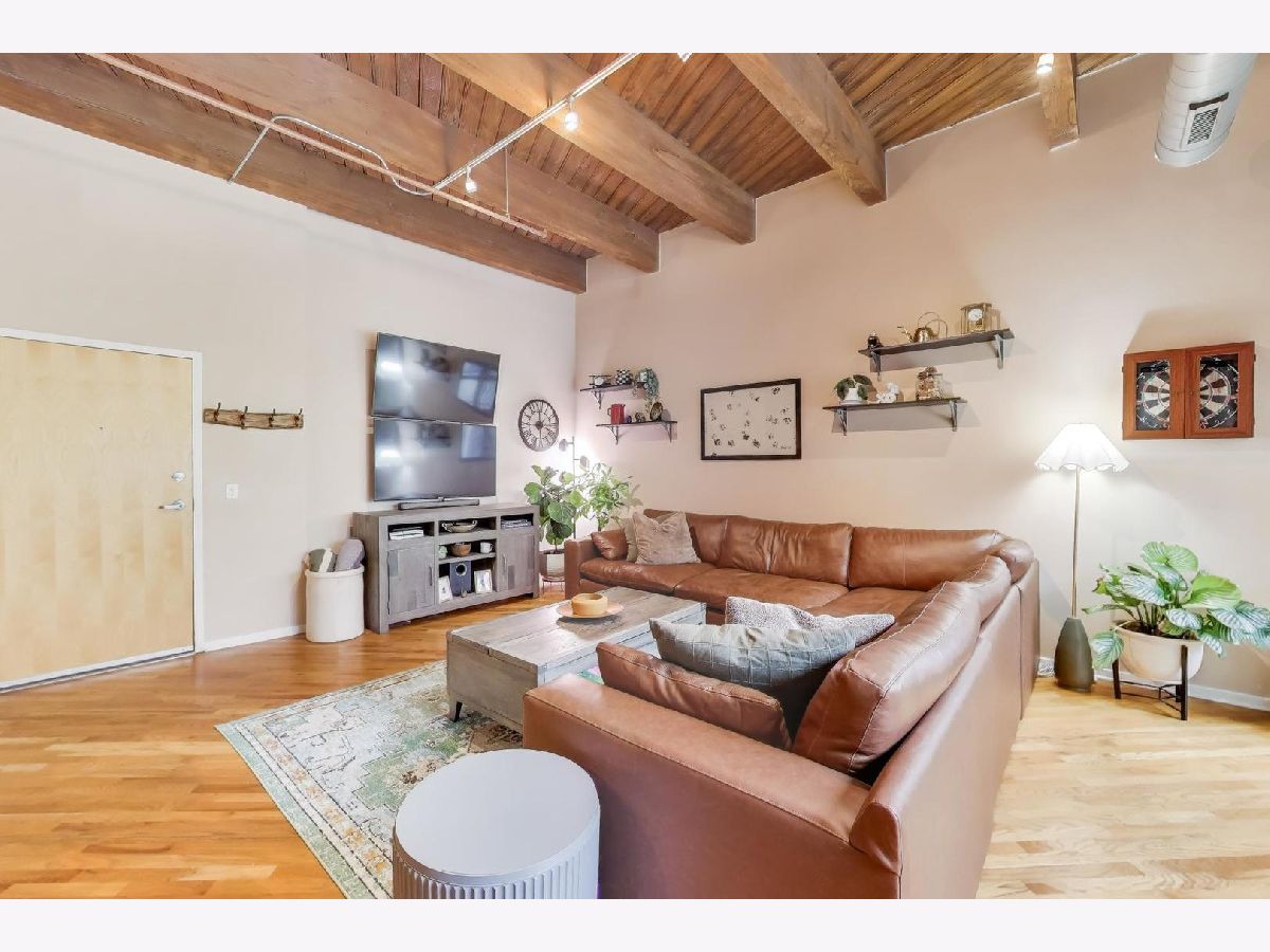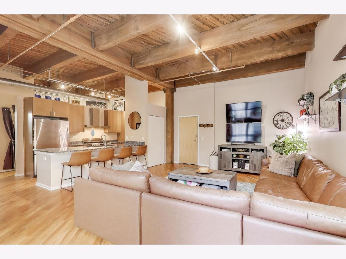 Experience elevated loft living in this spacious 1 bed + den, 1.5 bath brick and timber left in the heart of the West Loop. This beautifully appointed home features soaring ceilings, hardwood floors throughout, and oversized windows that overlook a serene interior courtyard-offering both privacy and abundant natural light. The updated kitchen is designed for both style and function, complete with stainless steel appliances, granite countertops, and a breakfast bar with seating-perfect for casual dining or entertaining. The expansive primary suite boasts a walk-in closet with organizers and a luxurious ensuite bath with a double vanity and steam shower. A versatile den with its own closet provides the ideal space for a home office, nursery, or guest area. The convenience of an in-unit stacked washer and dryer (2024) makes laundry easy. Step outside to your private balcony-perfect for morning coffee, evening relaxation, or grilling. Deeded attached heated garage parking space (P-285) additional $25,000. Generous 4' x 4' x 8' storage locker included. Residents of No. 10 Lofts enjoy full-service amenities including 24/7 door staff, on-site management, a fitness center, business center, conference room, yoga studio, home theater, and a beautifully designed community lounge with outdoor grilling space.