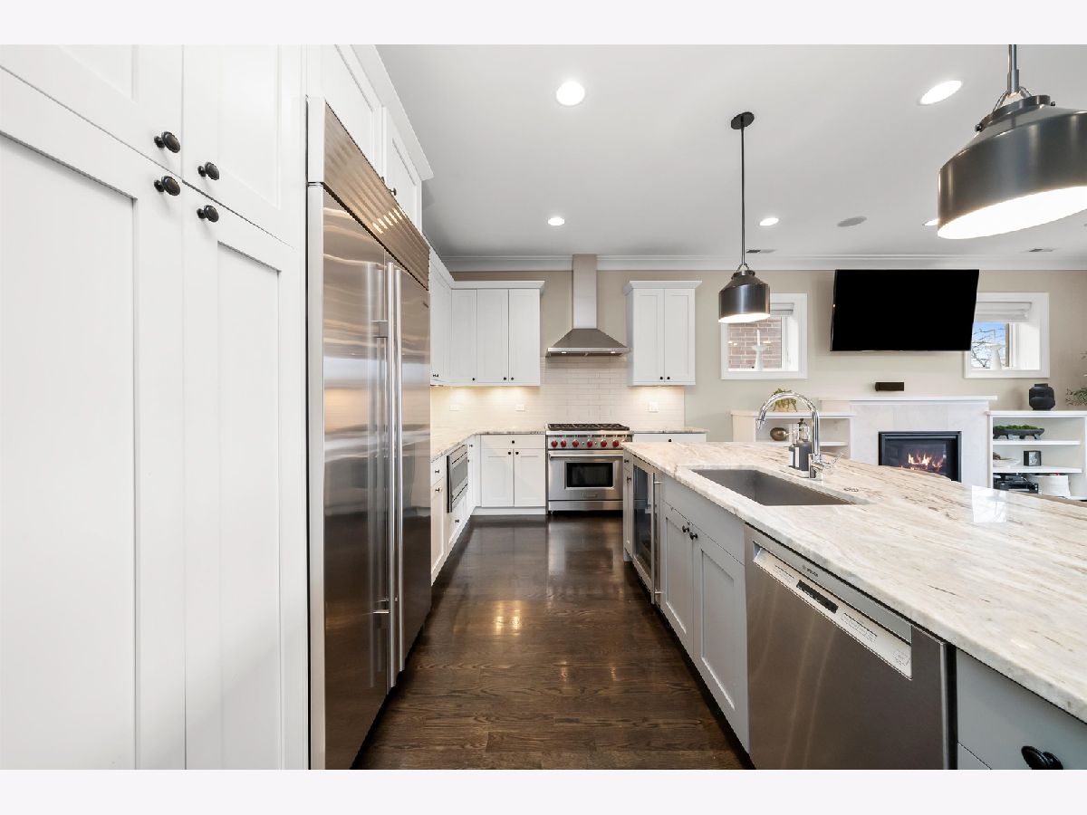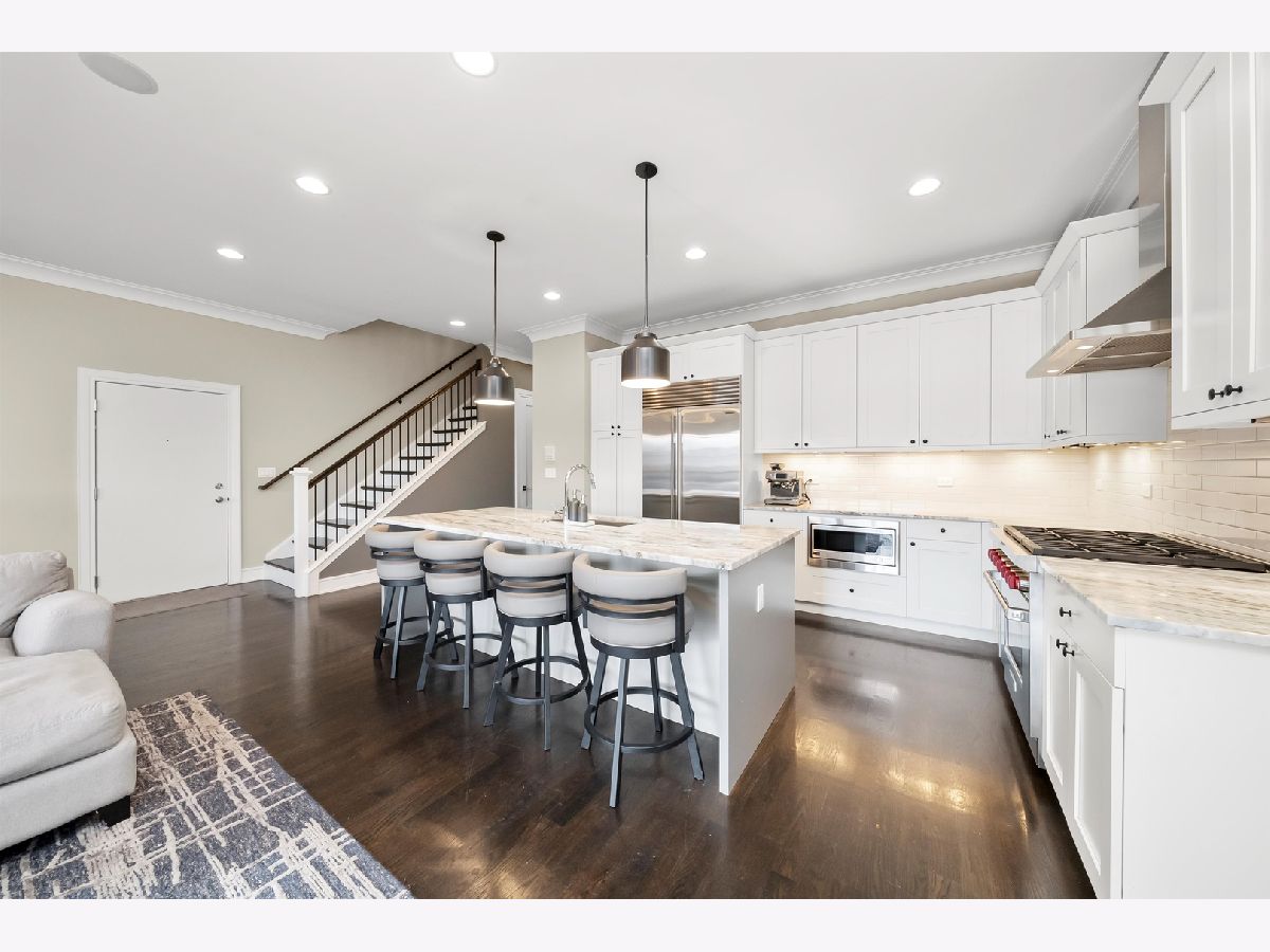 Stunning extra-wide 3 bed, 2 bath luxury penthouse with a private rooftop deck, perfectly situated on a quiet, tree-lined street in Lincoln Park. Set within an all-brick building spanning three oversized city lots, this home offers an exceptionally open and airy layout. The chef's kitchen is beautifully appointed with high-end finishes, including a large eat-in island, quartz countertops, wine fridge, and premium Wolf, Bosch, and Sub-Zero appliances. The spacious living area features a gas fireplace and custom built-ins, flowing seamlessly into a dedicated dining space, ideal for entertaining. Step out onto the generous front terrace, one of two private outdoor spaces. The primary suite is a true retreat, complete with dual vanities, heated floors, and an oversized steam shower. A private interior staircase leads to the fully built-out rooftop deck, designed for entertaining with a bar, built-in TV, fire pit, sound system, rear speakers, and artificial turf. Additional highlights include garage parking, a private rear entrance with a built-in mudroom, and a highly sought-after location within the Oscar Mayer school district-just blocks from the Brown and Red Lines, and several parks.