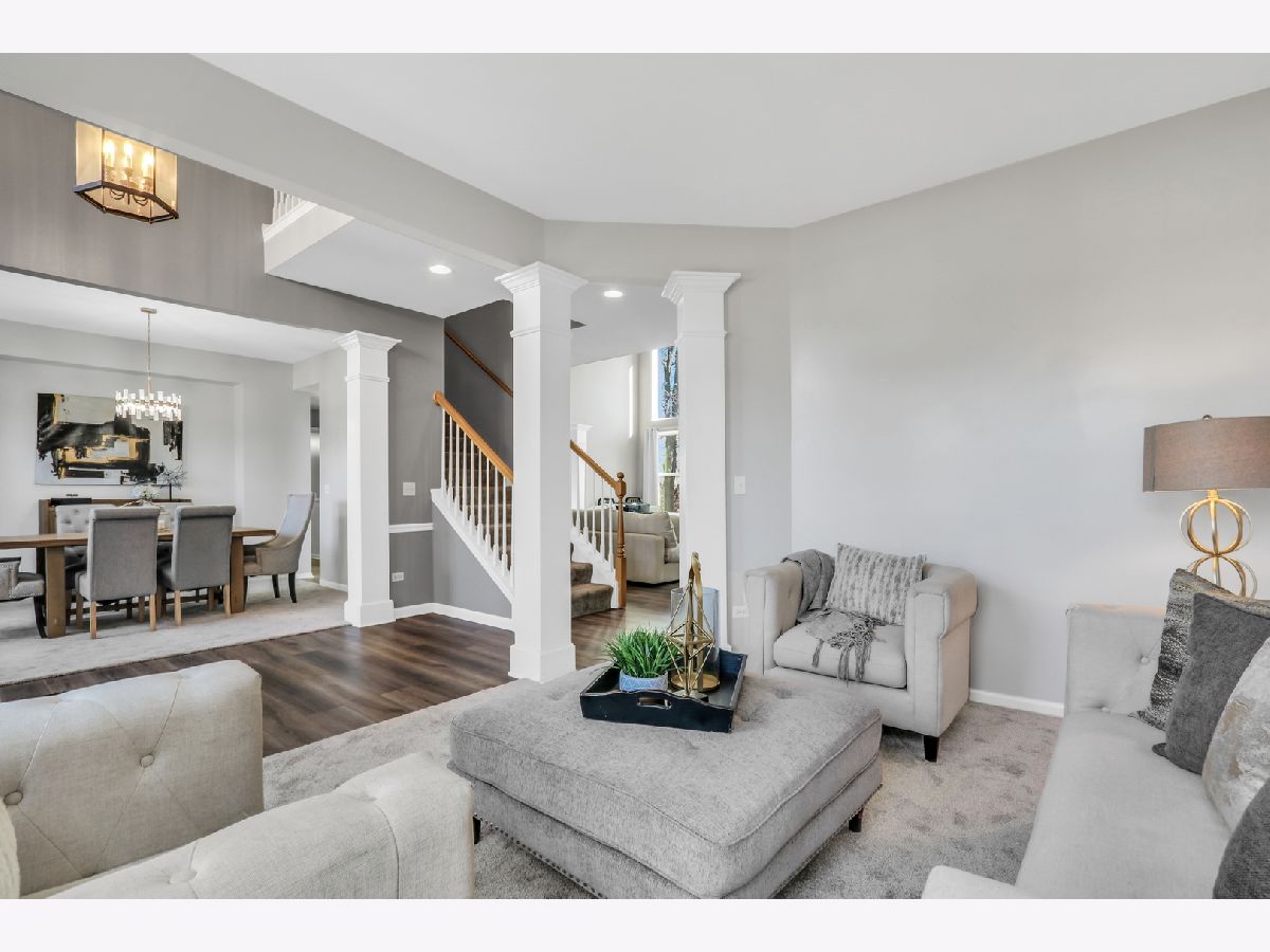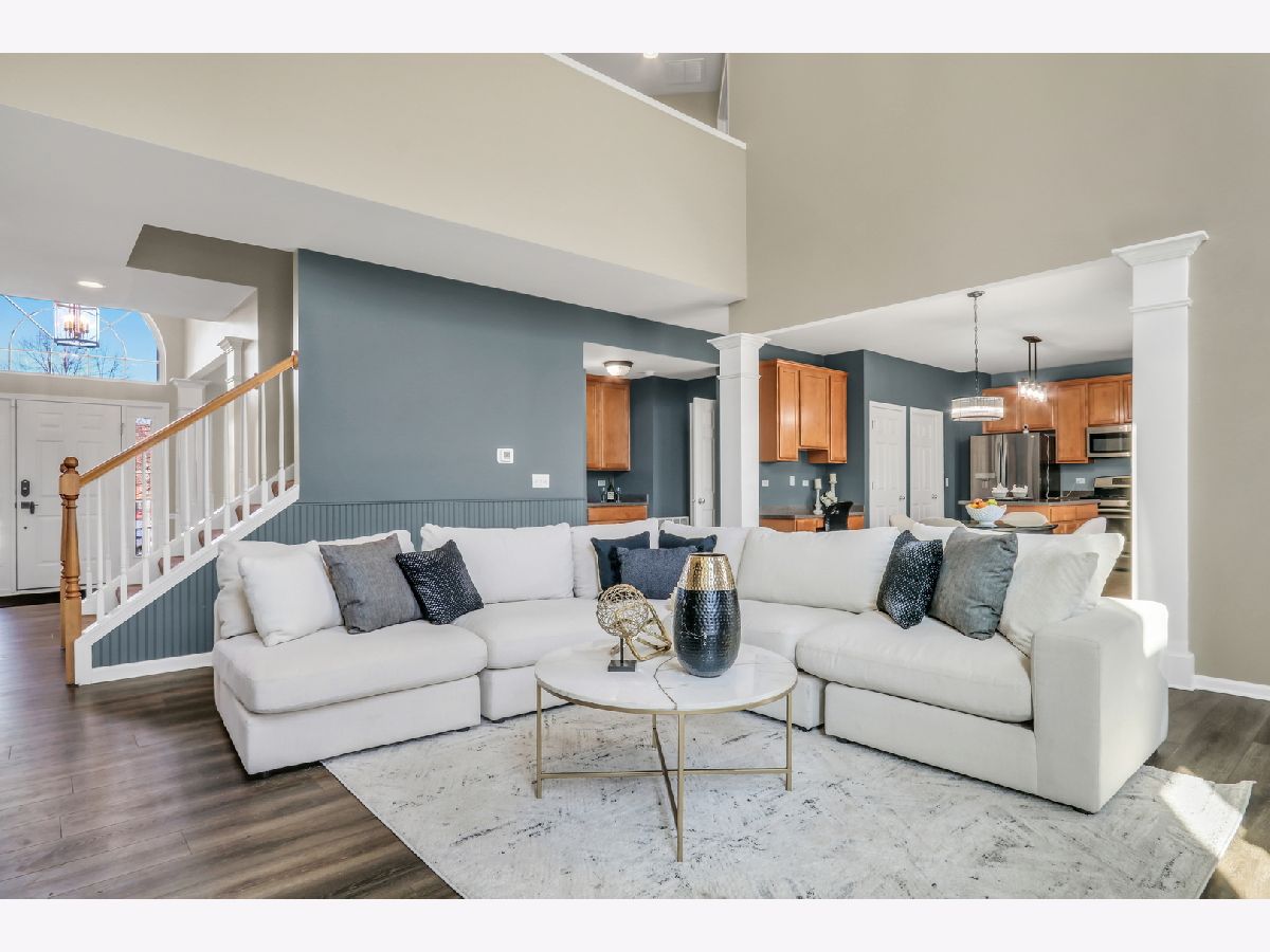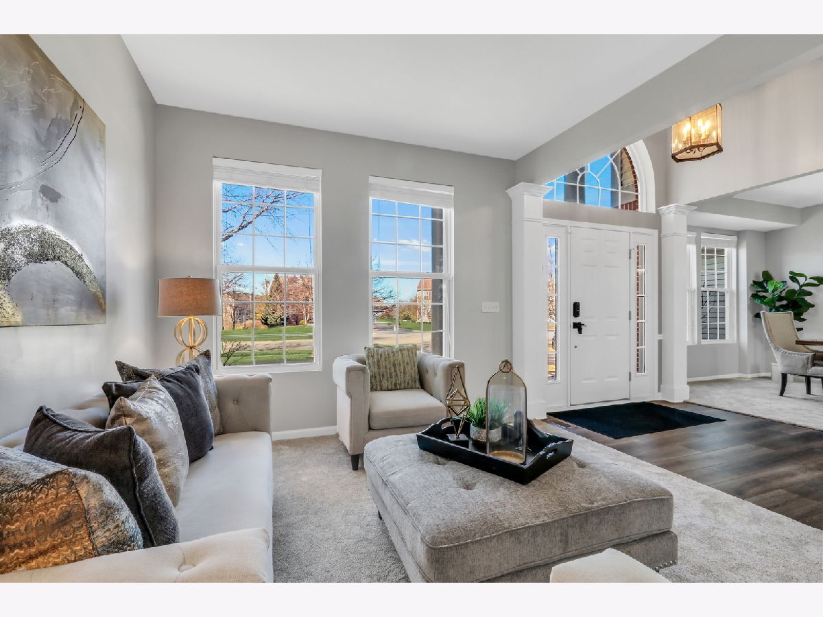 Welcome to this stunning home in the highly sought-after Red Wing View neighborhood - where style, comfort, and functionality come together beautifully. From the moment you arrive, you'll feel the warmth and charm that make this home truly special. Step inside and you're immediately greeted by a sprawling foyer featuring soaring volume ceilings and gorgeous luxury vinyl flooring that flows seamlessly throughout the main level. The open, airy feel sets the tone for the rest of the home. The formal living room is filled with natural light and offers the perfect setting for entertaining guests or enjoying quiet evenings. Just beyond, the adjacent dining room provides an elegant space for hosting dinner parties, holiday gatherings, or special celebrations. Through French doors, you'll find a versatile main-level office - ideal for working from home, creating a craft space, setting up a playroom, or designing the perfect study area. The flexibility of this room allows it to grow with your needs. Head back to the true heart of the home - the kitchen. Designed for both everyday living and entertaining, this space boasts abundant cabinetry, a center island, stainless steel appliances, a comfortable eating area, and a convenient tech desk. Large windows frame stunning backyard views, making meal prep and morning coffee even more enjoyable. Step outside to your brick paver patio complete with a built-in fire pit - the ultimate outdoor entertaining space. Whether you're hosting summer barbecues, cozy fall evenings by the fire, or simply relaxing under the stars, this backyard is designed for making memories. The family room is simply spectacular, featuring dramatic volume ceilings, a cozy fireplace, and an abundance of natural light pouring in through expansive floor-to-ceiling windows. It's the perfect gathering space for family and friends. Convenience continues with a main-level half bath and a functional mudroom/laundry room that helps keep everyday life organized and effortless. Upstairs, retreat to your luxurious Primary Suite featuring luxury vinyl flooring, a spacious walk-in closet, and a beautifully appointed en suite bath complete with double sink vanities, a soaking tub, and a separate shower - your own private sanctuary at the end of the day. Three additional generously sized bedrooms and a full bathroom complete the upper level, offering comfort and space for everyone. The basement provides incredible potential and is ready for your personal touches. With ample storage and room to expand, you can create anything you've always dreamed of. This Red Wing View beauty truly has it all - space, style, warmth, and endless possibilities. Welcome Home.