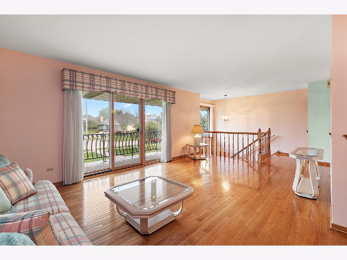 Step into this beautifully maintained 2 bedroom, 2 1/2 bath raised ranch townhome/condo in the heart of Eagle Ridge, filled with natural light and warm finishes. The main level showcases an open floor plan with beautiful hardwood floors flowing seamlessly through the living room, dining room, kitchen, and both bedrooms. Enjoy cozy mornings or evenings on the balcony, easily accessed through sliding glass doors off the living room. The eat-in kitchen is both stylish and functional, featuring a pantry, a tasteful backsplash, under-cabinet lighting, can lighting, and several glass-front cabinets. The spacious primary suite includes a walk-in closet and a private bath with shower, while the second bedroom and full bath provide comfort for family, guests, or a home office. The lower level is designed for relaxation and entertaining, with a cozy family room anchored by a brick gas-starter fireplace, a wet bar, and a convenient half bath. The laundry room is equipped with cabinets, counter space, a sink, exterior access, and direct entry to the 2 1/2 car garage - complete with storage cabinets and water spigots. Perfectly located, you'll love being just a short walk to Eagle Ridge Park and Orland Grassland walking trails. Plus, enjoy peace of mind with a brand new A/C installed in September 2025. Come see why this lovely townhome/condo could be the perfect place to call home. Home is being sold As Is.