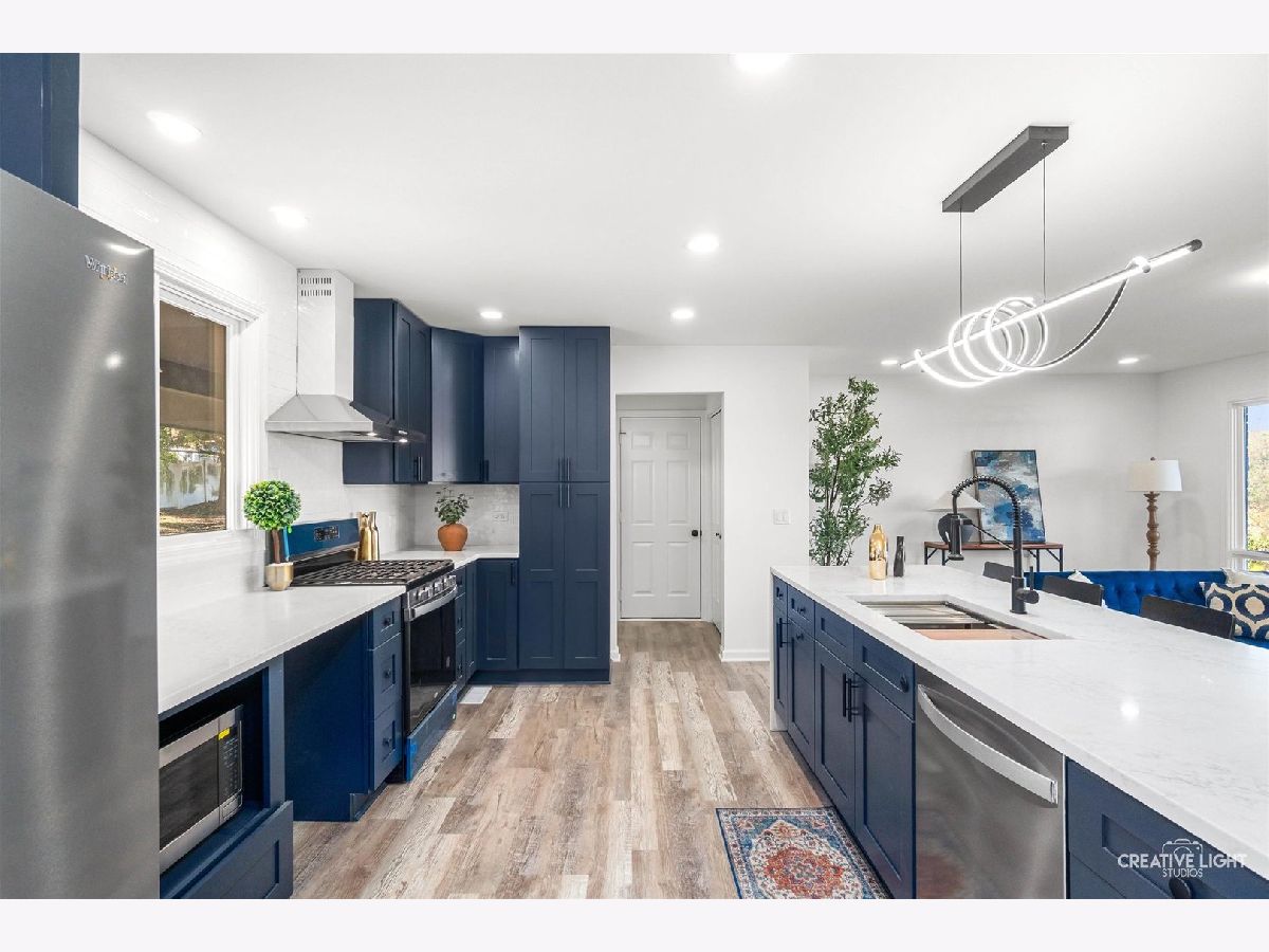 ***HUGE PRICE IMPROVEMENT!! THIS IS YOUR CHANCE TO OWN THIS GORGEOUS LIKE-NEW HOME!!*** Wow! This home will take your breath away. Fully rehabbed from top to bottom, this 5-bedroom, 2.5-bath home features a 3-car garage, over 2,200 square feet of living space, and nearly an acre of outdoor area - where luxury and country living blend perfectly. Step inside to a designer kitchen with quartz countertops, a waterfall island, custom-made cabinets, modern lighting, and brand-new stainless steel appliances. The 2.5 bathrooms were tastefully remodeled with high-end porcelain tile, elegant vanities, and LED mirrors - perfect for every selfie. Luxury vinyl plank flooring runs throughout the upper, main, and lower levels, adding to the home's seamless modern appeal. The upper level offers 3 bedrooms and 1 bath, while the lower level features 2 additional bedrooms, another full bath, and a bonus room ideal for an office, gym, or flex space. The spacious laundry room includes a brand-new Samsung washer and dryer for your convenience. The huge sub-basement provides endless possibilities - extra storage, a playroom, a man cave, or whatever fits your lifestyle. This home offers peace of mind with newer energy-efficient windows, a brand-new roof on both the main house and detached garage, plus new plumbing, new electrical, a new water softener, a new A/C unit - new everything! Outside, enjoy beautiful landscaping and ample outdoor space perfect for entertaining, gardening, or relaxing. This is truly the home you've been waiting for - move-in ready, luxurious, and absolutely stunning!