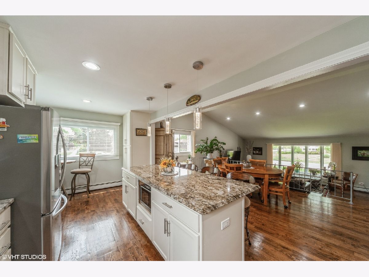 Welcome Home to this beautiful 4 bedroom split level home with sub-basement that gives you room to roam. Open floor plan boasts updated kitchen with newer stainless steel appliances, granite counter tops and huge island. Hardwood floors throughout the main levels and bedrooms and plank vinyl flooring in family room and sub. Primary bedroom has 2 closets and ensuite full bath. 3rd bedroom has a walk in closet. Main hallway and family room level bath have radiant heat floors to keep your feet toasty warm. Family room also has a newly refinished wood burning fireplace. Roof, windows, hvac are 8-10 years old. Outside there is a gorgeous pergola in the large partially fenced yard perfect for entertaining or just enjoying the nice weather. You will not be disappointed from viewing this home, come see it today and make it yours. Curtains in the Primary bedroom are excluded.
