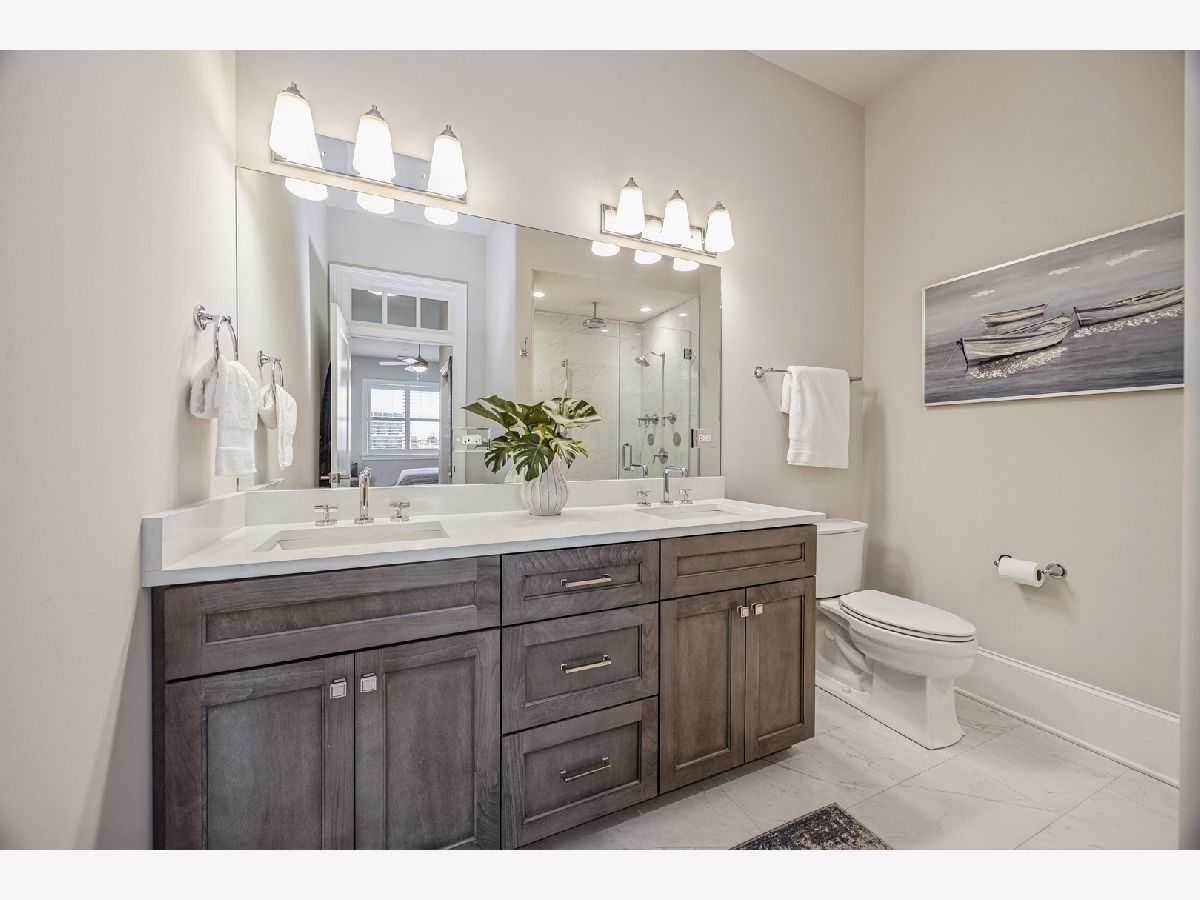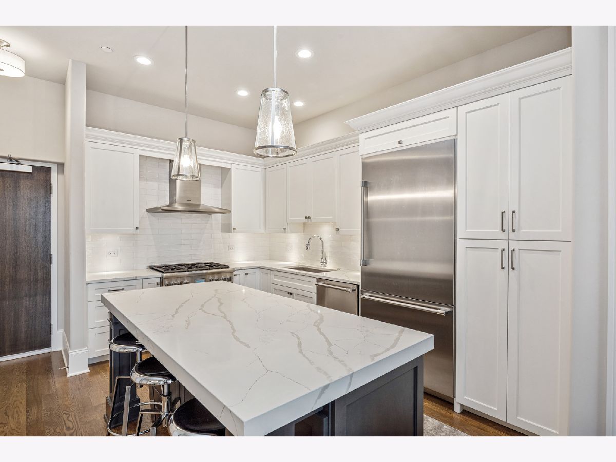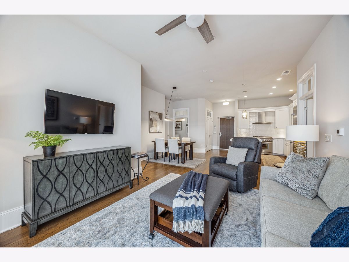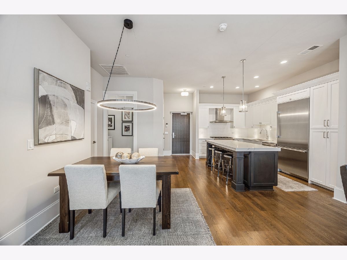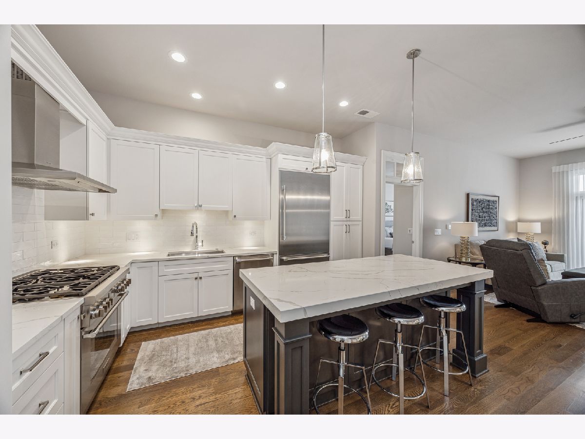 Experience refined living in this luxury two-bedroom, two-bath condominium home located in the heart of downtown Elmhurst. Built in 2021, this immaculate residence showcases exceptional quality craftsmanship with thoughtfully curated high-end finishes throughout. The open-concept layout is anchored by the stunning chef's kitchen featuring custom cabinetry, quartz countertops, and premium Thermador appliances. The living and dining areas provide access to a private west facing terrace filling the home with abundant afternoon sunlight. The luxurious primary suite includes a spa bath, 2 fully organized closets and large picture window while the guest bed and bath are thoughtfully positioned on the opposite wing. Additional features of this beautiful home include 10' ceilings, 9 1/4" base molding, 4" white oak floors, solid wood interior doors with transoms, an oversized laundry room with front load machines, and custom window treatments. The building features convenient drive-in heated parking with storage and an exceptional rooftop deck featuring Wolf grills, flat-screen TVs, and breathtaking sunset views-an ideal extension of your living space. Enjoy an unbeatable location just steps from the Metra station, Elmhurst Public Library, Wilder Park, and an abundance of retail, coffee shops, acclaimed restaurants, and even a first-run movie theater-all right outside your door. Truly one of a kind in the western suburbs, this meticulously maintained condominium home combines luxury, location, and lifestyle with easy access to everything Chicagoland has to offer.