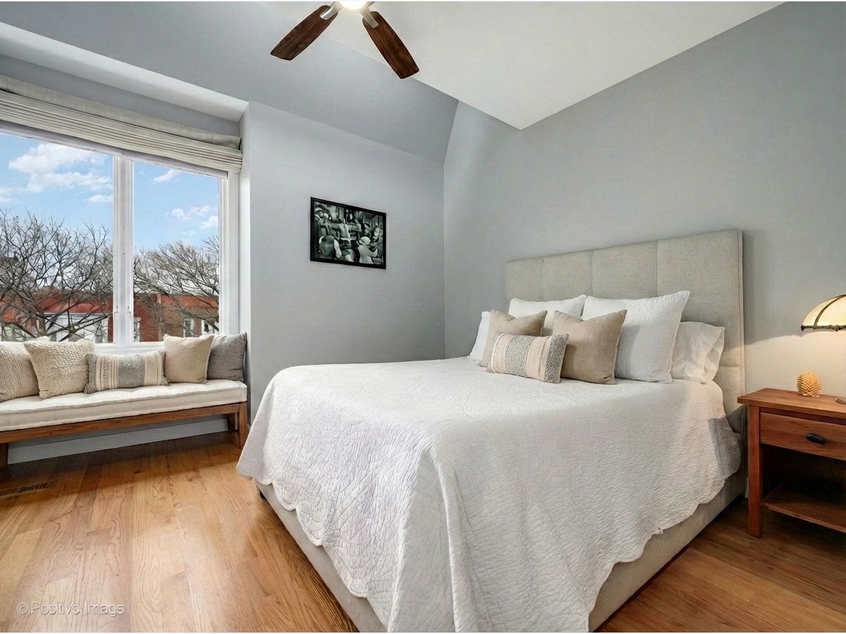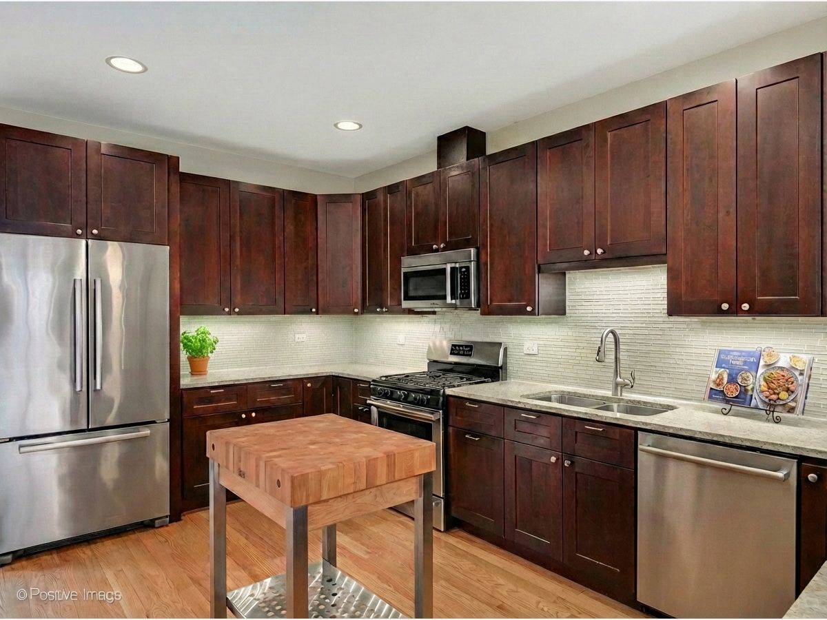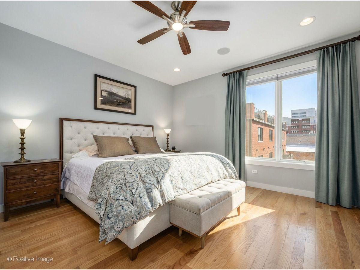 Live in the heart of beautiful Downtown Oak Park in this street-facing luxury SoHo townhome-truly a pedestrian's paradise just steps from restaurants, shops, and transportation. This open-concept home features 3 bedrooms and 3.5 baths with generous room sizes and hardwood floors throughout. The main living level includes a bright living and dining area with crown molding and a custom fireplace mantle, plus a well-appointed kitchen with wood cabinetry, quartz countertops, and stainless Bosch appliances, along with space for a breakfast table and a balcony perfect for grilling. The first-floor en-suite bedroom offers excellent flexibility as a guest suite, home office, gym, or den. The bedroom level features a spacious primary suite with a spa-like bath offering heated floors, double vanity, whirlpool tub, and separate steam shower, plus a second bedroom with vaulted ceilings and abundant natural light. Laundry with newer front-load washer and dryer is conveniently located on this floor. The top level offers a bonus room with wet bar and direct access to a large private rooftop deck, creating an ideal indoor/outdoor entertaining space. The deck provides ample room for lounge seating, dining, and container gardening, making it perfect for summer gatherings, quiet mornings, or unwinding at the end of the day with city views and open sky. Enjoy nearby coffee shops, shopping, movie theater, library, parks, schools, pool, and Metra/Green Line, with everything Oak Park has to offer right outside your door. An unbeatable home in an unbeatable location.