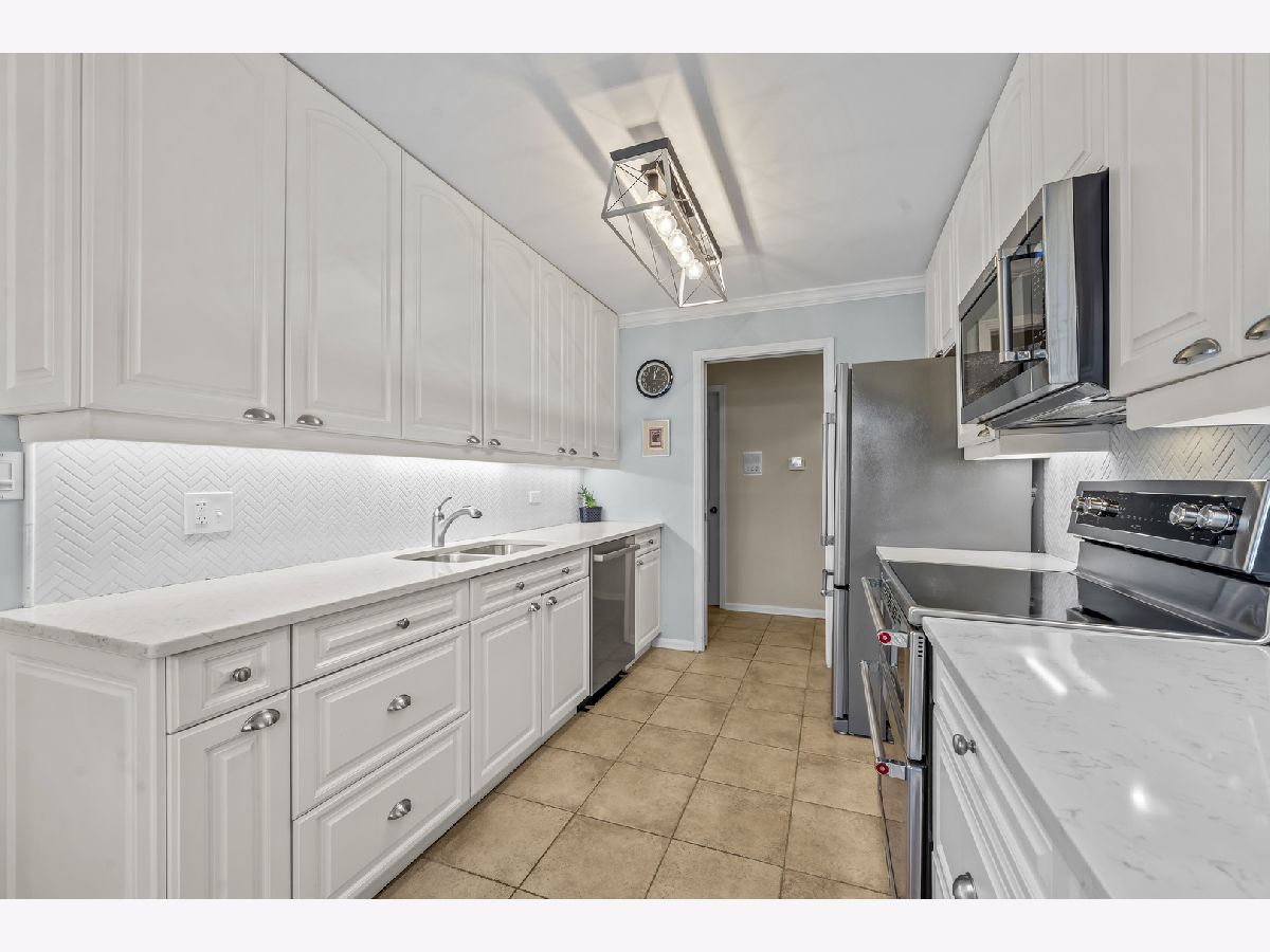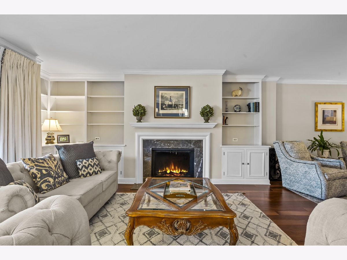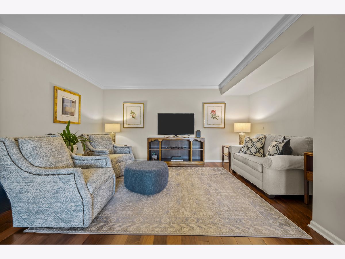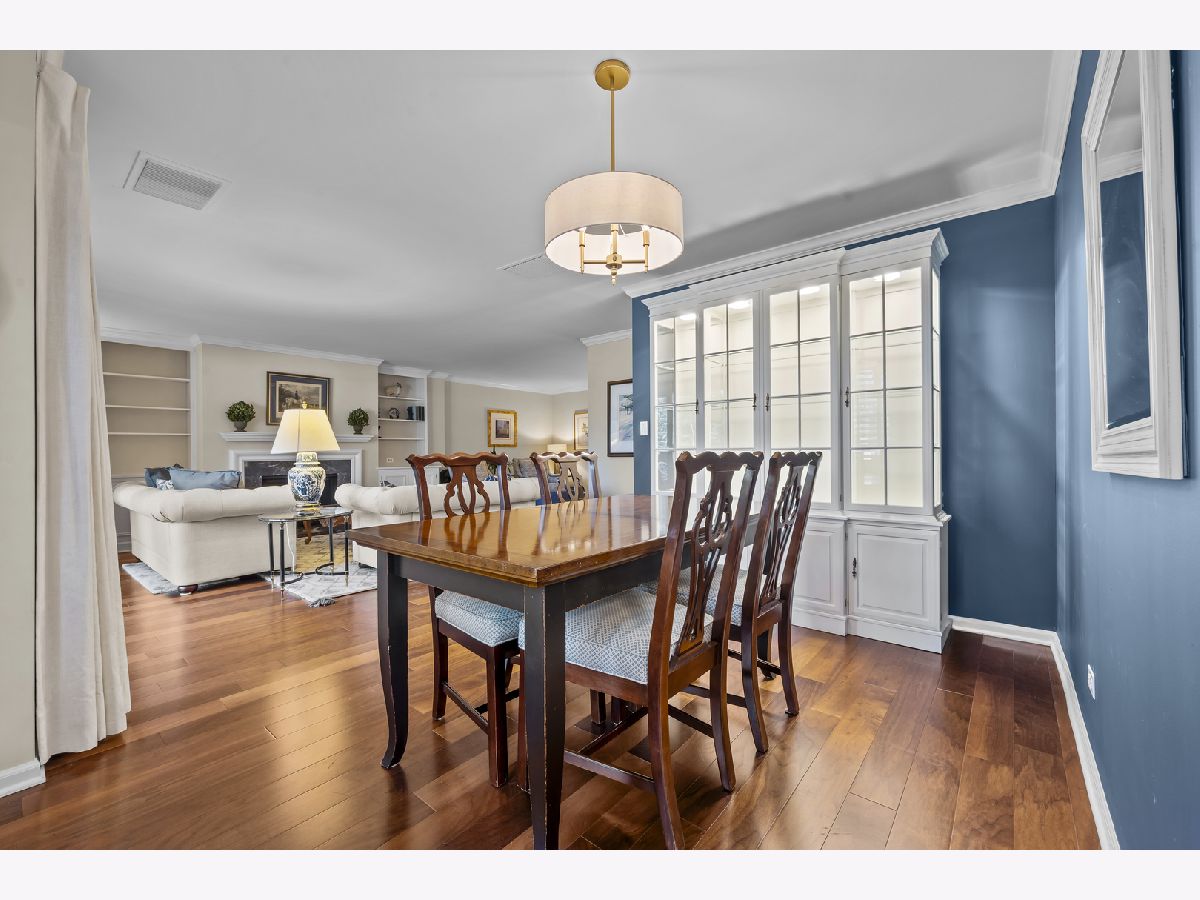 Enjoy living in the downtown Lake Forest, just a short distance from shops, the grocery store, the train, and restaurants. This first-floor unit stands out for its private patio with western exposure and open, unobstructed views and afternoon light that fills the space. Inside, the spacious layout includes two bedrooms, a living room with fireplace and built-in bookcases, which opens to a den and dining room. The eat-in kitchen is clean and classic, featuring white cabinetry, a white subway tile backsplash, quartz countertops, newer stainless steel appliances, and a large picture window that welcomes afternoon light. Spacious primary bedroom with large walk-in closet with custom organizer. Two parking spaces and a separate storage unit are included. All windows were replaced with Pella windows, furnace and AC new in 2019. Monthly assessment is $899.09, with a special assessment of $496.56 is billed quarterly and concludes at the end of 2026.