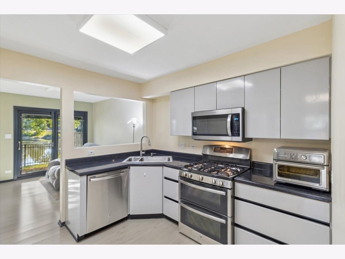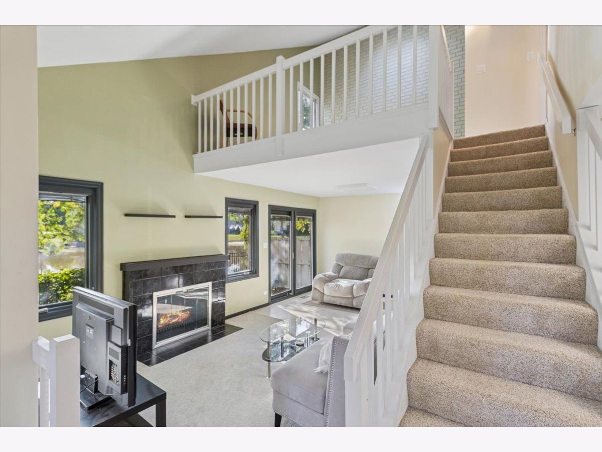 Welcome to this beautiful home in the heart of Palatine! Two Bed, 1.1 Bath two-story townhome on the pond with water views in the desirable Stonington subdivision. Notice the lovely landscaping as you approach the home. As you enter though the front door, you will be quickly drawn to the cozy fireplace equipped with convenient gas logs. Enjoy the views of the pond though the Pella windows with integrated horizontal blinds. Access the patio through the sliding glass door in the living room. Notice the generous use of laminate wood flooring on the ground level. Prepare your meals in the stainless steel kitchen with gas stove and cook-top, then enjoy them in the separate dining room. When it is time to rest, a master bedroom and a guest bedroom await on the upper level. Both are equipped with ceiling fans to keep you cool during the warm months. The master features a large walk-in closet. There is also a loft on the upper level that could easily serve as a 3rd bedroom. Enjoy the convenience of the attached garage. Doing the laundry is a breeze with the upper-level laundry room with gas dryer. Homes on the water in Stonington are rarely available so this gem will not last long!
