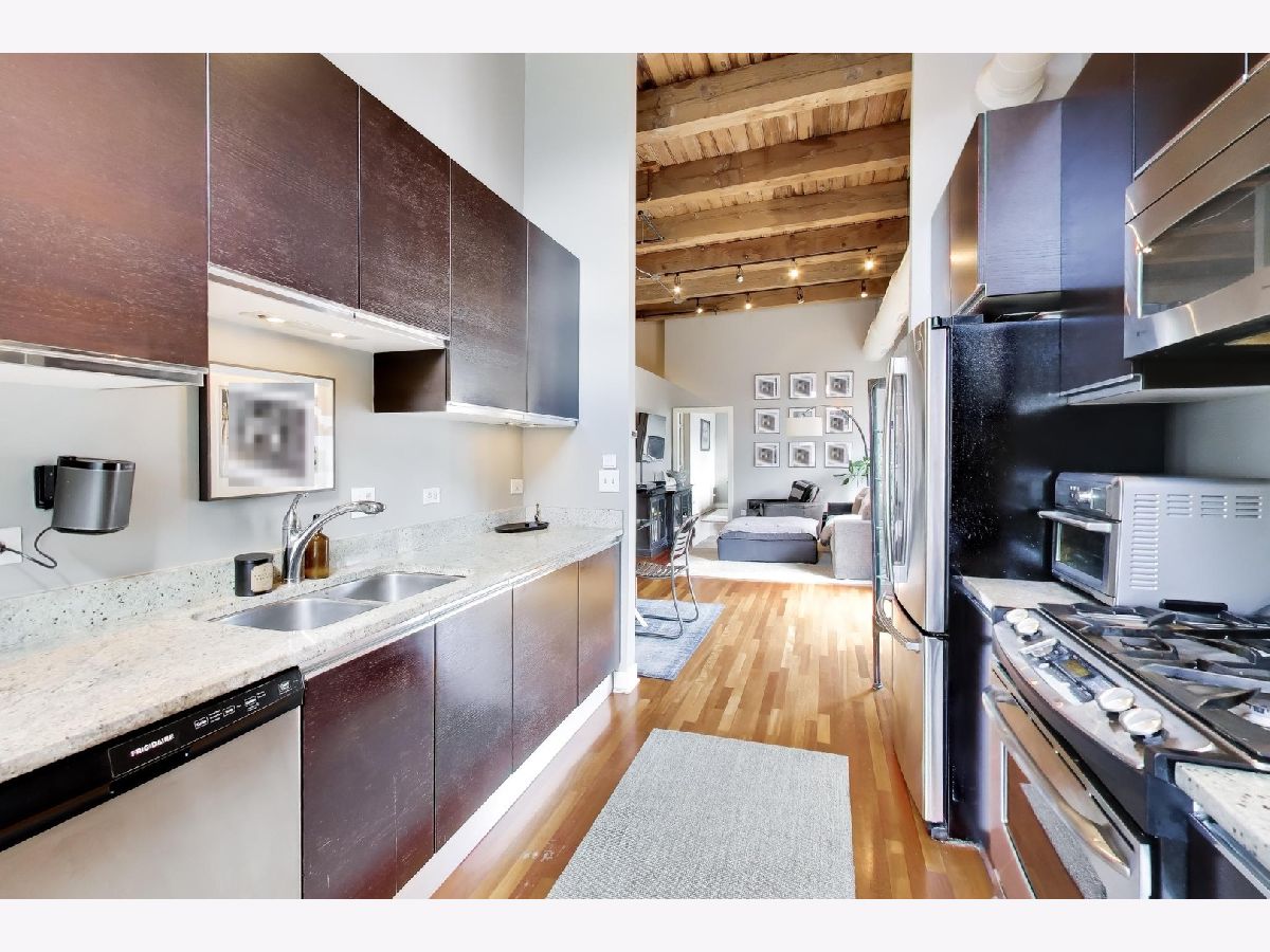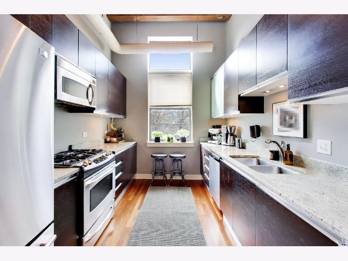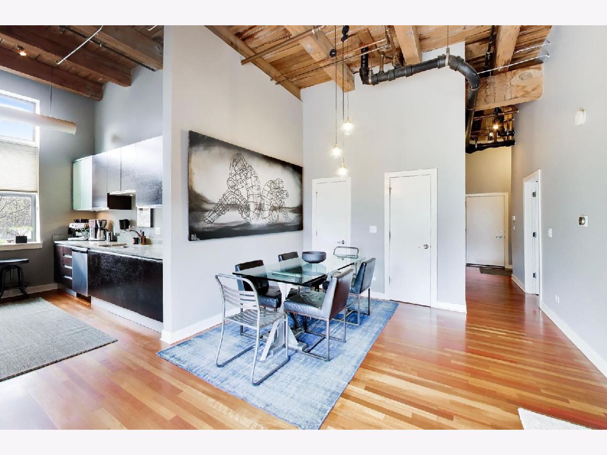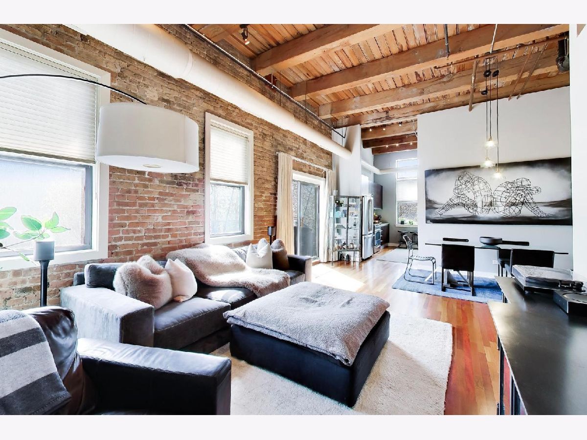 Experience the ultimate in West Loop living in this rarely available, meticulously upgraded timber loft! Step into a world where industrial charm meets modern luxury, boasting soaring 14-foot ceilings, dramatic exposed brick, and oversized windows framing breathtaking City skyline views. Entertain guests on your private balcony, perfect for grilling and soaking in the vibrant cityscape. Rich Cherrywood floors flow seamlessly throughout, creating a warm and inviting ambiance in every room. The chef-inspired kitchen is a culinary masterpiece, featuring sleek cabinetry, granite countertops, and a full suite of stainless-steel appliances (including a brand-new dishwasher). Retreat to your primary suite, complete with a spacious walk-in closet, double vanity, and separate shower. Enjoy the convenience of a brand-new in-unit Washer/Dryer and move-in-ready fresh paint. Benefit from a two-year-old HVAC, oversized private storage, and a deeded parking space included in the price. Elevate your lifestyle with building amenities like a rooftop deck, fully equipped gym, and a recreation room. Enjoy the exceptional value of Webpass Google Fiber high-speed internet. Located in an unbeatable location with easy access to the highway; Blue/Pink Lines; Fulton Market/Randolph St. AND Grand Ave. restaurants/bars - including Aberdeen Tap across the street! This loft offers the very best of city living. Investors are welcome to discover this exceptional opportunity! Walk Score 94/100.