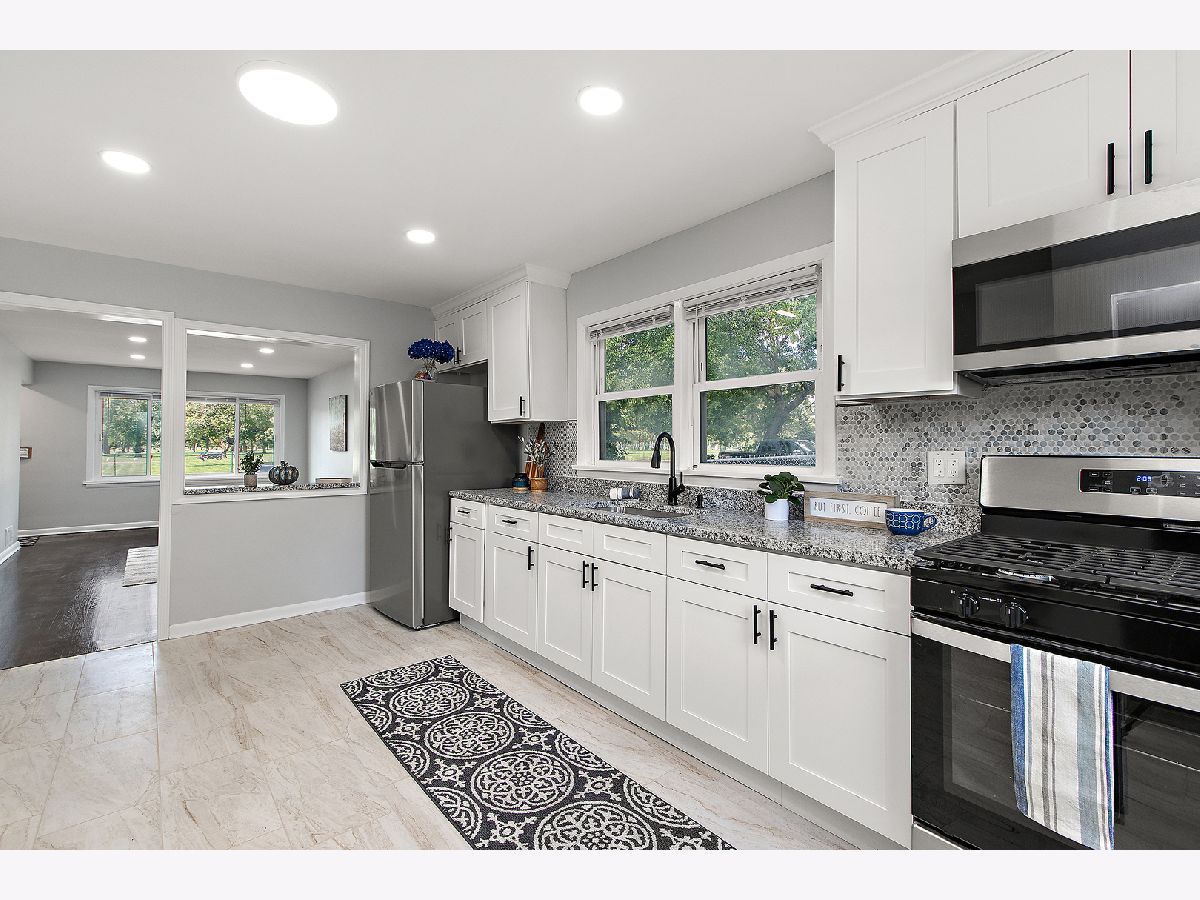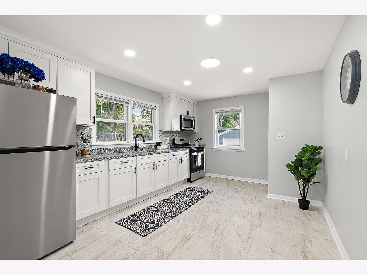 Welcome to a phenomenal move-in-ready 3-bedroom, 2-bathroom gem offering nearly 1,800 square feet of professionally finished living space. Situated just minutes from shopping, Sand Ridge Nature Center, and easy access to I-94, I-294, and I-90, this home blends modern updates with timeless charm. Step inside to find a brand-new kitchen featuring granite countertops, crisp white shaker cabinetry, custom tile backsplash, and durable ceramic tile flooring-designed for both style and function. The oversized family room showcases refinished hardwood floors and a unique picture nook that opens to the kitchen, perfect for entertaining or everyday living. Two main-level bedrooms also offer refinished hardwood floors and great natural light. Both full bathrooms have been fully updated with custom tile surrounds, sleek fixtures, and smart mirrors for that extra touch of luxury. The finished basement expands your living space with a spacious rec room, third bedroom, second full bathroom, and plenty of room for storage or a home gym. Fresh lighting, white trim throughout, updated electrical, and a brand-new roof complete the package. Outside, enjoy a fully fenced yard and a detached 2-car garage-everything you need for comfort and convenience. Don't miss this exceptional value in a well-established neighborhood. *Home qualifies for a grant program to help fund owner occupant buyers closing costs. Interested buyers should ask their agent for more information.