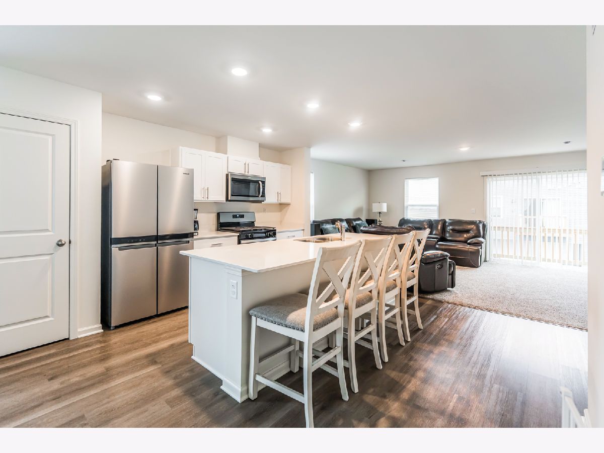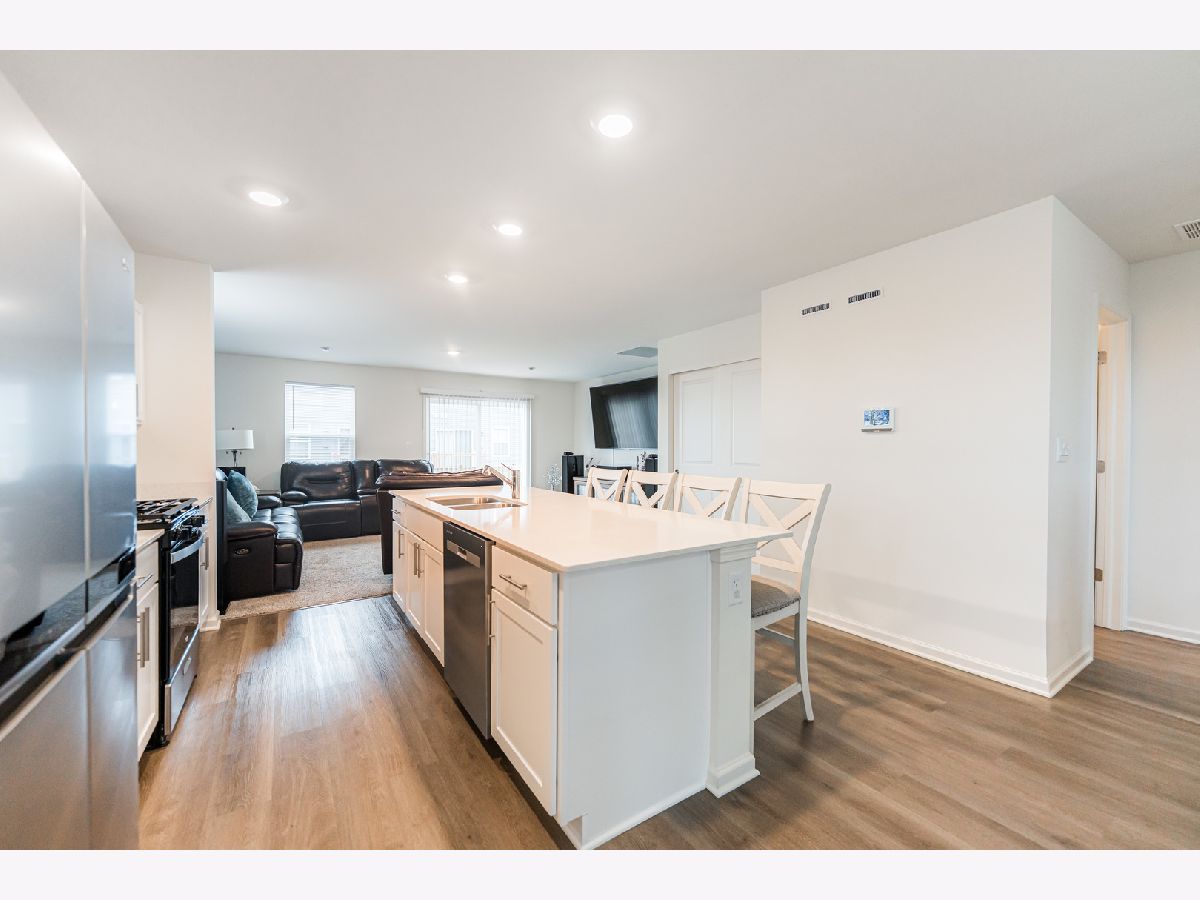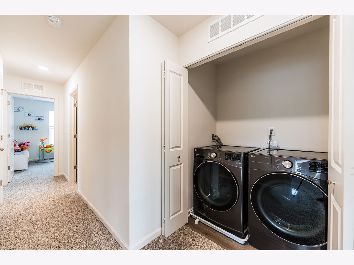 END UNIT 3 BEDROOM, 2.5 BATHS TOWNHOME - 2024 NEW CONSTRUCTION MOVE IN READY! This stunning and upgraded end-unit offers 1,756 sq. ft. of stylish living space. With 3 bedrooms, 2.5 baths, and a finished flex room, this home perfectly adapts to any lifestyle. The open-concept design fills the home with natural light, creating a warm, welcoming atmosphere. At the heart of it all, the kitchen shines with bright white cabinetry, a spacious island topped with quartz countertops, a pantry, and sightlines to both the front dining area and back great room-ideal for entertaining. Step out onto your private balcony for fresh air and relaxation. Upstairs, the spacious primary suite serves as a serene retreat with a walk-in closet and an en-suite bath featuring a raised dual quartz vanity. Two additional bedrooms, a full bath, and the convenience of second-floor laundry add both comfort and function. Luxury vinyl plank flooring flows through the kitchen, bathrooms, and laundry, balancing durability with modern style. Efficiency and innovation are built in with an ERV furnace system, tankless water heater, and America's Smart Home Technology, including a video doorbell and Honeywell smart thermostat. The upgrades to the townhome include a new washer and dryer, a modern refrigerator, and updated hardware for both the bathrooms and kitchen. Additionally, the garage has been finished to enhance the overall functionality and appearance of the space. This home blends comfort, convenience, and cutting-edge features-perfect for your lifestyle!