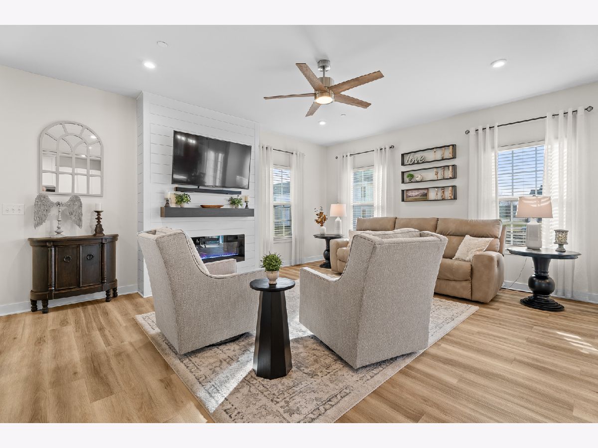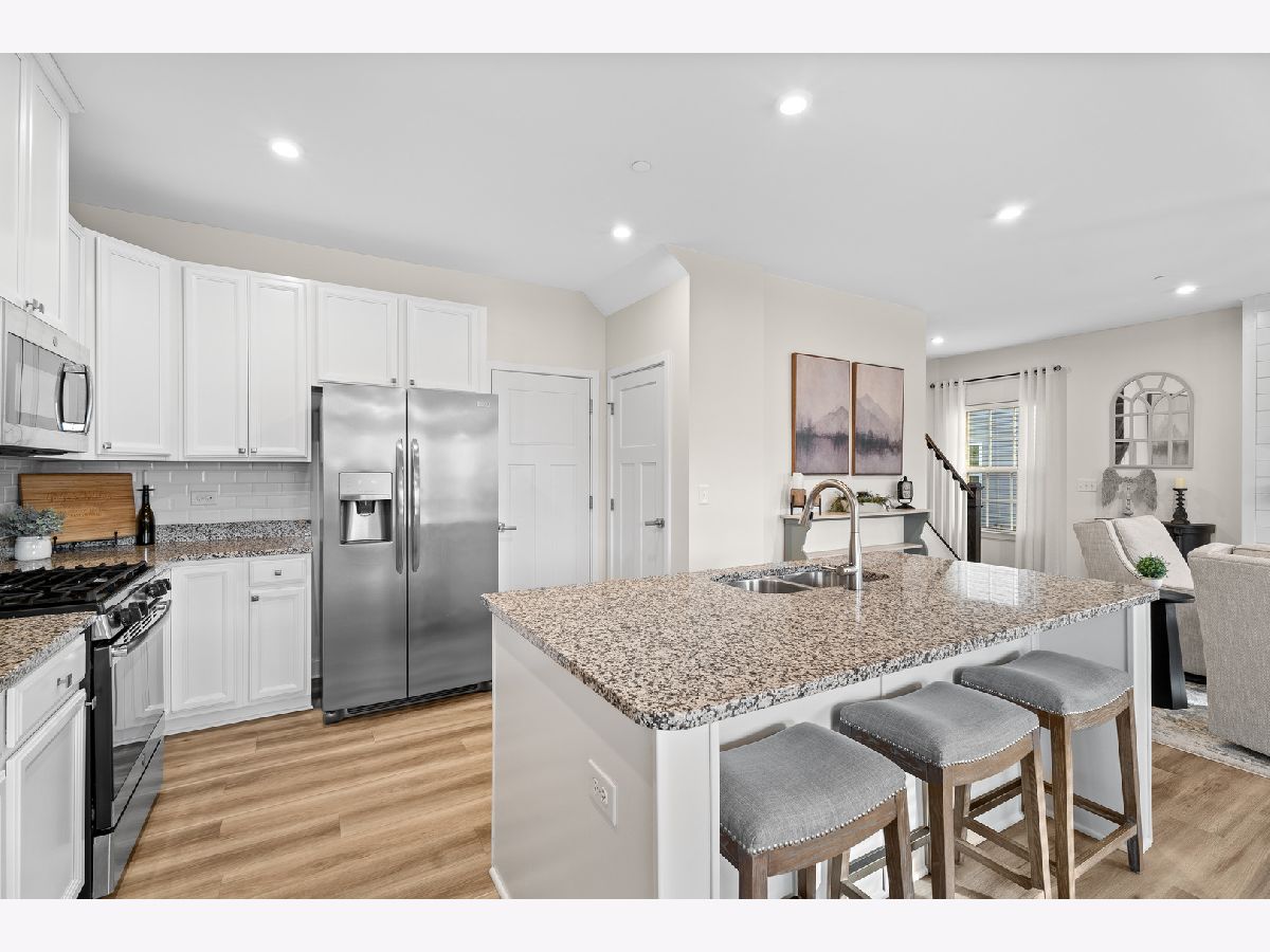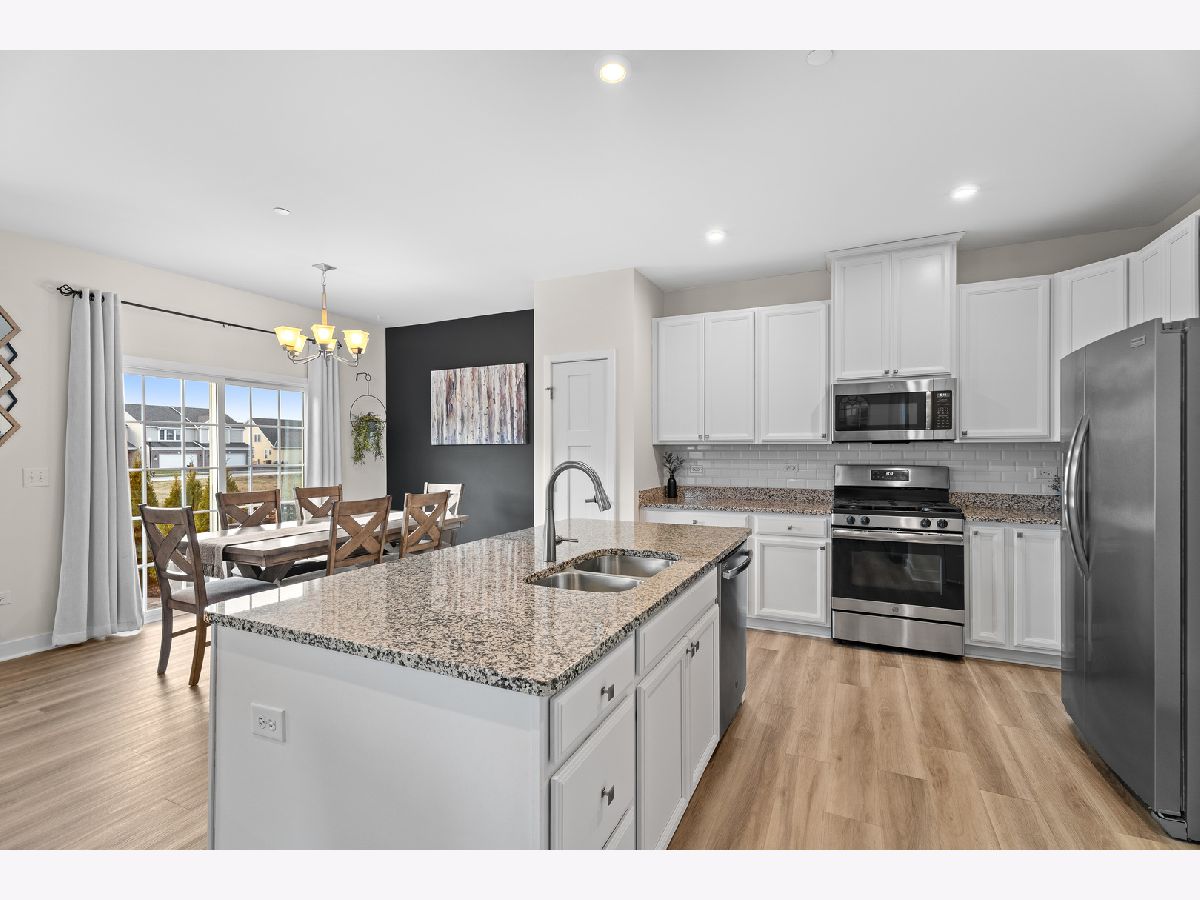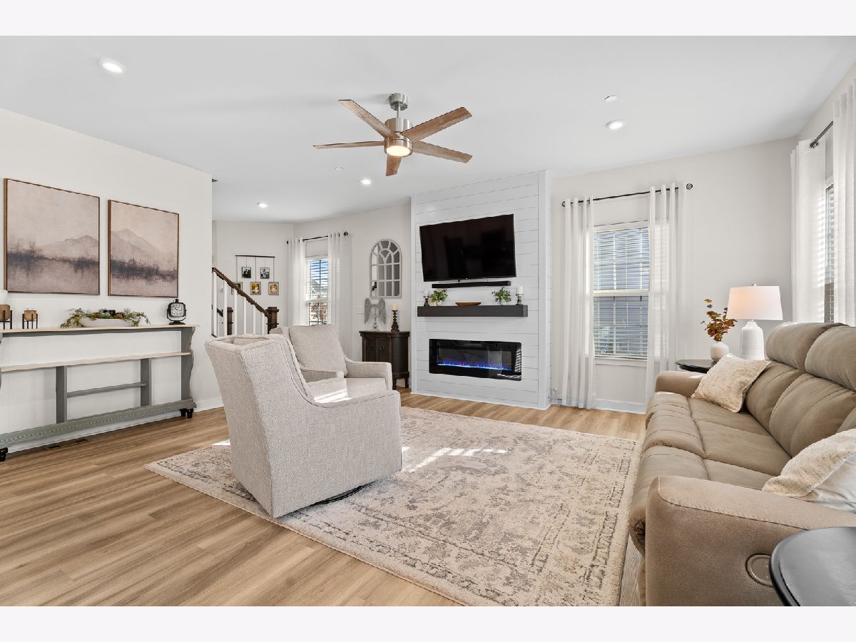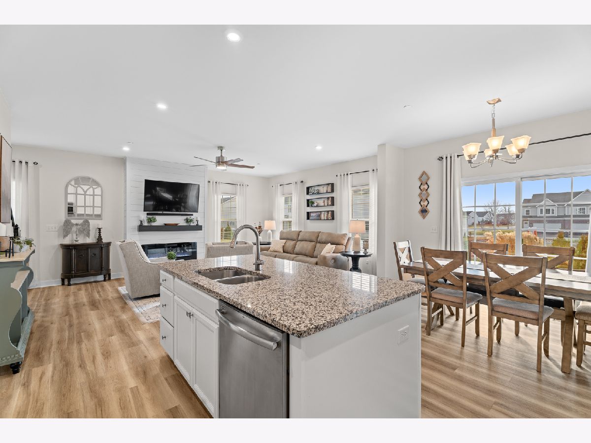Beautiful 3 bedroom, 3.5-bath duplex townhome built in 2020, end unit in the highly sought-after Blackberry Creek community. The main level features an open-concept layout with 9-foot ceilings, wide-plank luxury vinyl flooring, an electric fireplace, and a welcoming foyer with a board-and-batten accent wall. The kitchen offers 42-inch white cabinets, walk-in pantry and a large island that opens to the dining and living areas. The second level includes three spacious bedrooms, two full bathrooms, and a convenient second-floor laundry. A flexible loft provides space for a home office. The primary suite features two walk-in closets and a private bath with a double vanity. The finished basement with a full bathroom adds valuable living space, ideal for guests, a recreation room, or a home gym. A brick paver patio and professionally landscaped grounds complete this low-maintenance home in the Kaneland 302 School District, close to shopping, dining, and everyday conveniences.