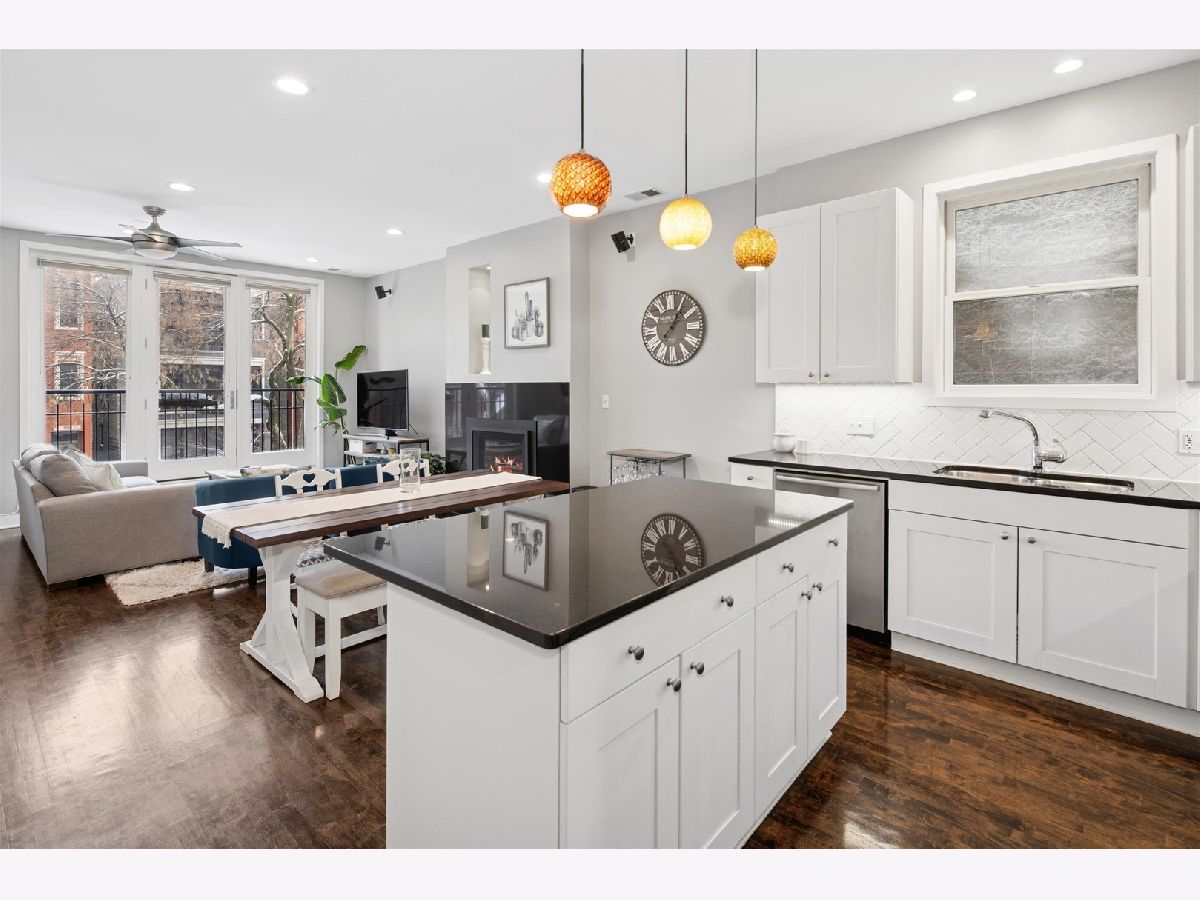 Walk to all Division Street has to offer in this 2BR/2BA East Village condo! The main living room has a spacious layout with room with a cozy fireplace! Room for a desk & dining room table! Open kitchen has white cabinets, black granite counters and stainless steel appliances with island seating. There is a small laundry room with side by side laundry. Primary suite has 2 closets including a walk-in. Second bedroom is perfect for a guest bedroom or home office. Access the deck off the back terrace! Unit features maple floors, Garage parking and full height storage locker! Steps to Division Street, CTA Blue Line and easy freeway access!