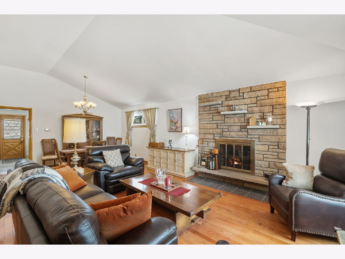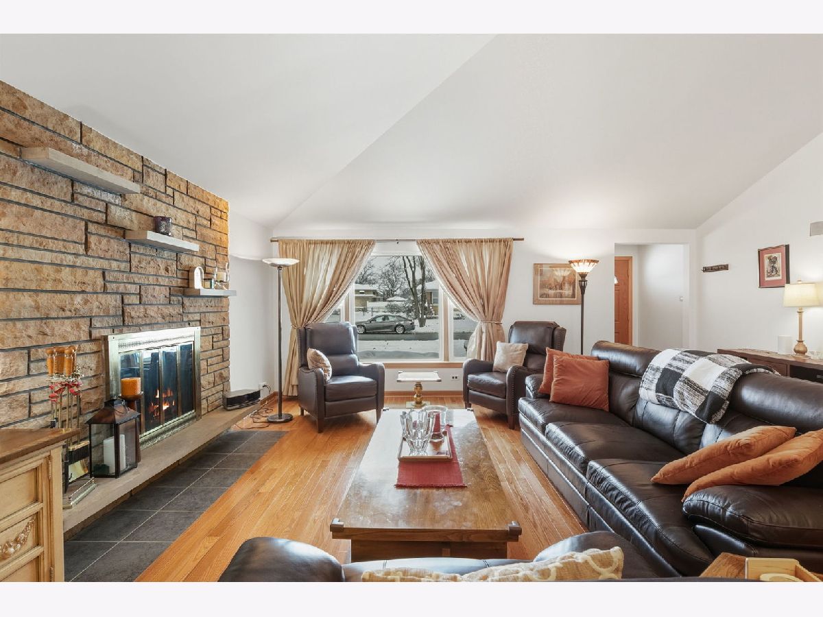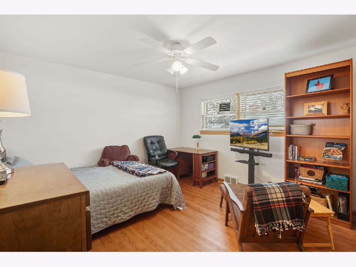 Spacious and beautifully updated brick home with 3 bedrooms upstairs plus a bonus 4th bedroom in the walk-out English basement. This move-in-ready home features a charming brick exterior, long driveway, perennial landscaping, and a cozy front porch. Inside, enjoy vaulted ceilings, freshly refinished hardwood floors, an open concept living and dining room, and a fireplace that is perfect for gatherings. The eat-in kitchen was remodeled in 2012 and includes granite counters, upgraded backsplash, stainless steel appliances, a 5-burner stove, and plenty of storage. The removed kitchen provides direct access to a beautiful low-maintenance backyard featuring a private patio and gorgeous perennial garden. The finished basement adds extra living space with a large rec room, BONUS 4TH BEDROOM, oversized laundry room, bonus crawl storage, and a private entrance to the backyard. It is ideal for an in-law suite, home office, or extra living area. The primary bedroom features hardwood floors, ample closet space, and neutral paint. Guests will enjoy their private bedroom and a recently restored mid-century modern bathroom. Upgrades include new living and dining room windows in 2015, new bathroom windows in July 2025, new front door in 2022, new roof in 2025, new furnace/AC in 2021, and new water heater in 2022. The home is ideally located near parks, schools, shopping, restaurants, and major highways. Equally convenient to O'Hare and Midway airports. Peaceful location & well maintained; Just move in and enjoy!