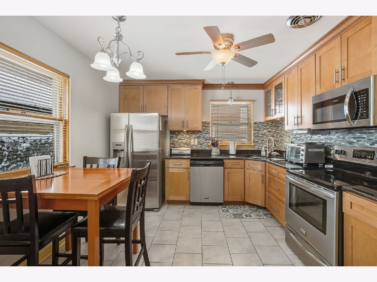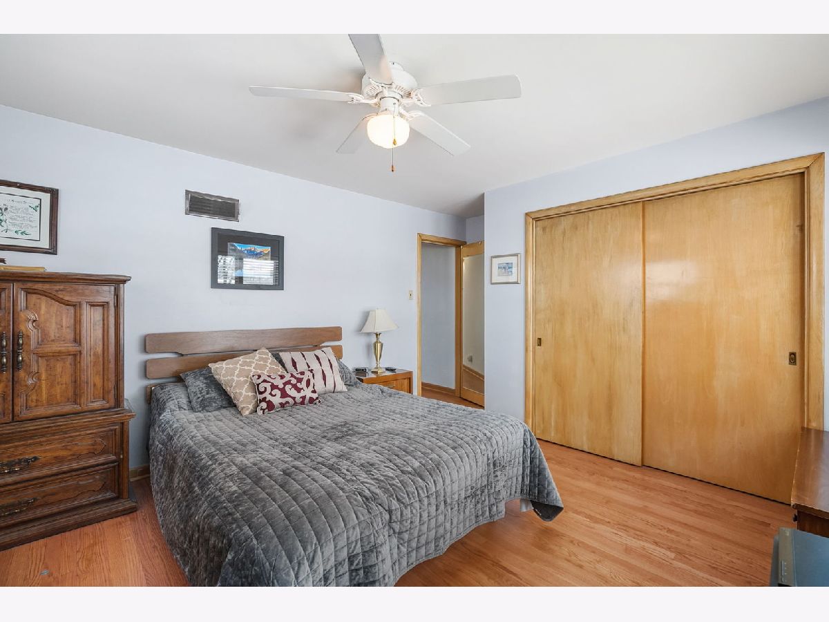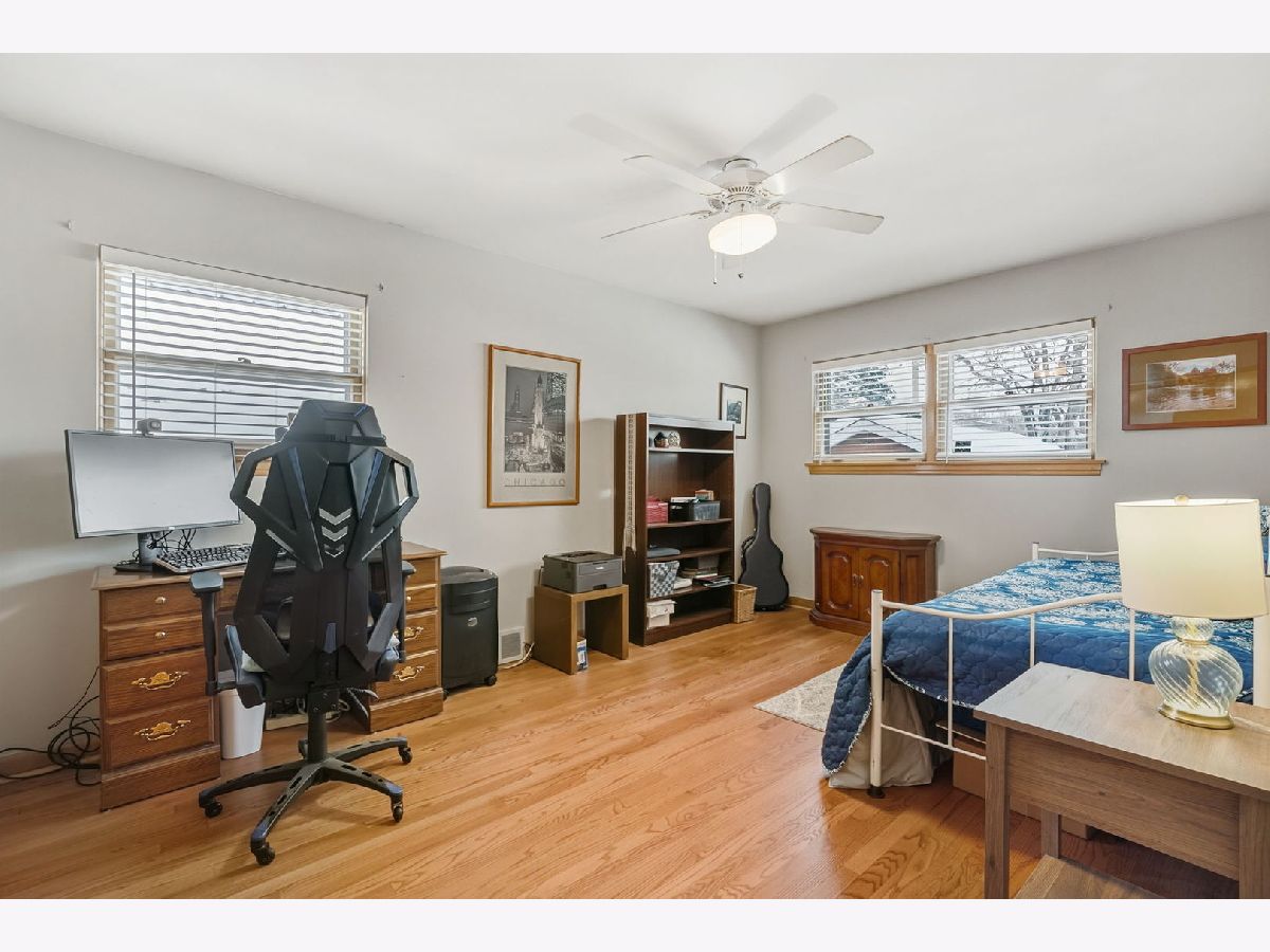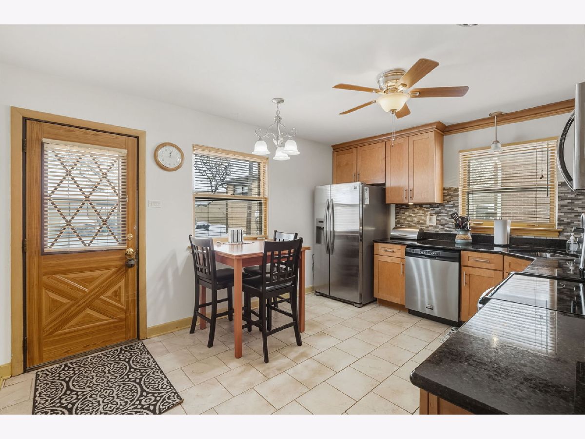 Spacious and beautifully updated brick home with 3 bedrooms upstairs plus a bonus 4th bedroom in the walk-out English basement. This move-in-ready home features a charming brick exterior, long driveway, perennial landscaping, and a cozy front porch. Inside, enjoy vaulted ceilings, freshly refinished hardwood floors, an open concept living and dining room, and a fireplace that is perfect for gatherings. The eat-in kitchen was remodeled in 2012 and includes granite counters, upgraded backsplash, stainless steel appliances, a 5-burner stove, and plenty of storage. The removed kitchen provides direct access to a beautiful low-maintenance backyard featuring a private patio and gorgeous perennial garden. The finished basement adds extra living space with a large rec room, BONUS 4TH BEDROOM, oversized laundry room, bonus crawl storage, and a private entrance to the backyard. It is ideal for an in-law suite, home office, or extra living area. The primary bedroom features hardwood floors, ample closet space, and neutral paint. Guests will enjoy their private bedroom and a recently restored mid-century modern bathroom. Upgrades include new living and dining room windows in 2015, new bathroom windows in July 2025, new front door in 2022, new roof in 2025, new furnace/AC in 2021, and new water heater in 2022. The home is ideally located near parks, schools, shopping, restaurants, and major highways. Equally convenient to O'Hare and Midway airports. Peaceful location & well maintained; Just move in and enjoy!