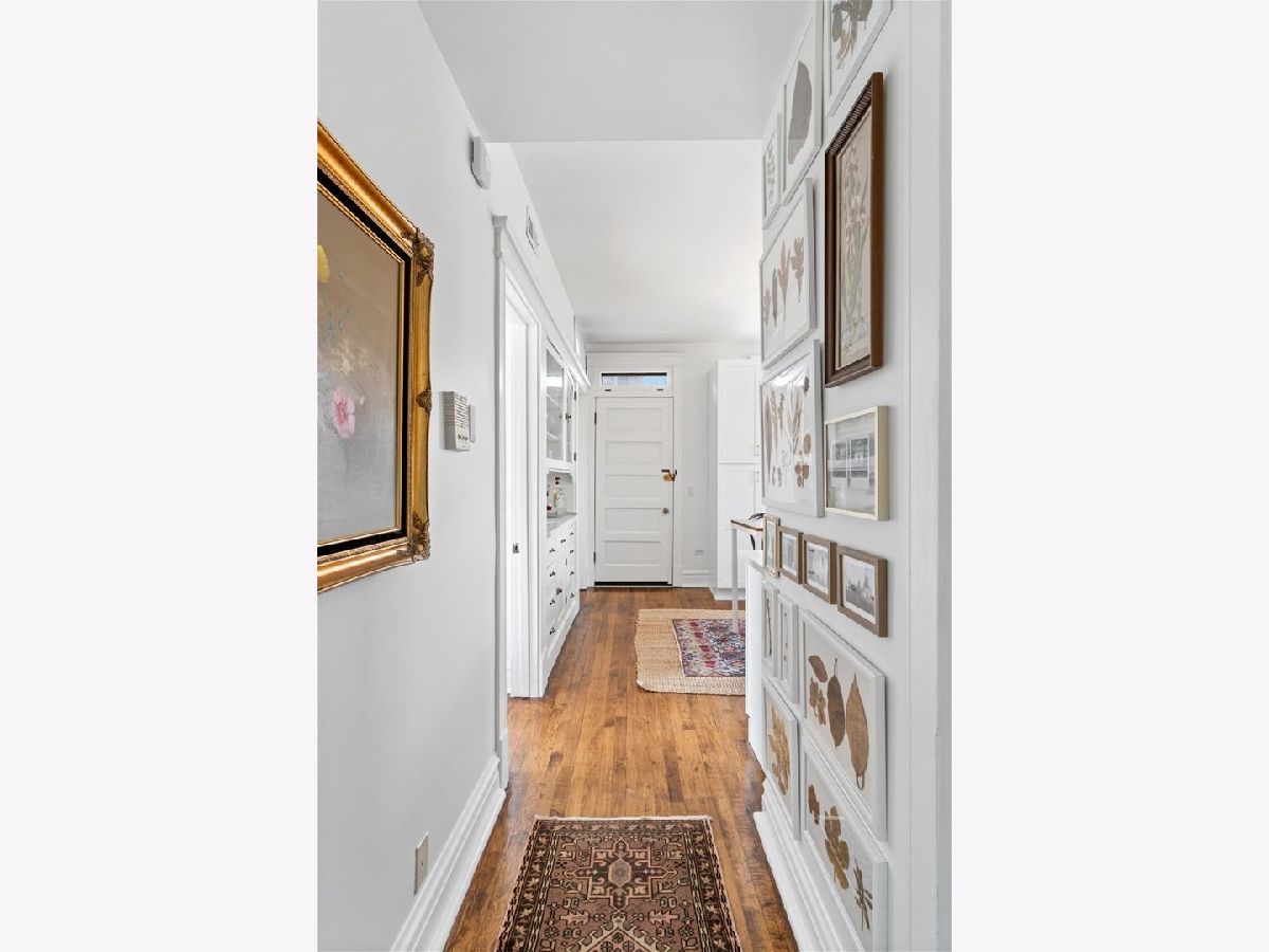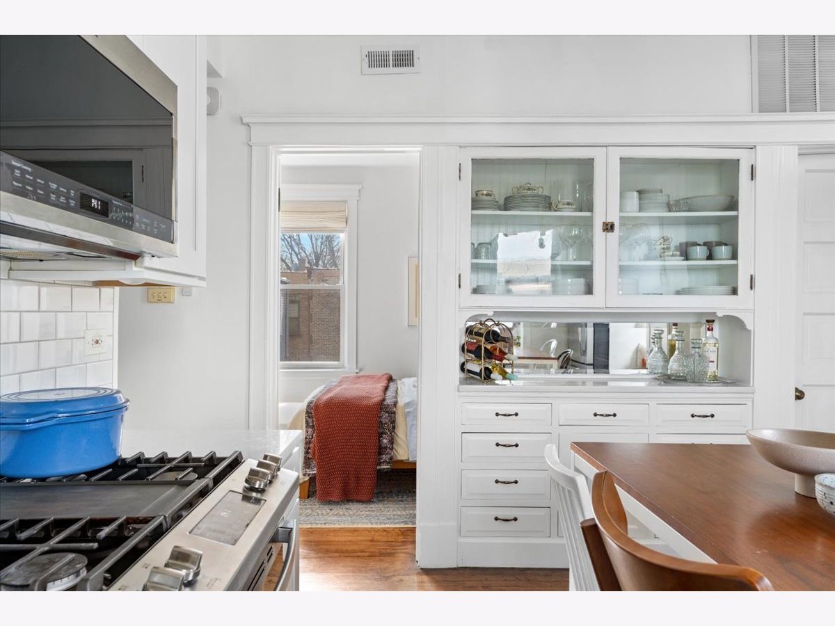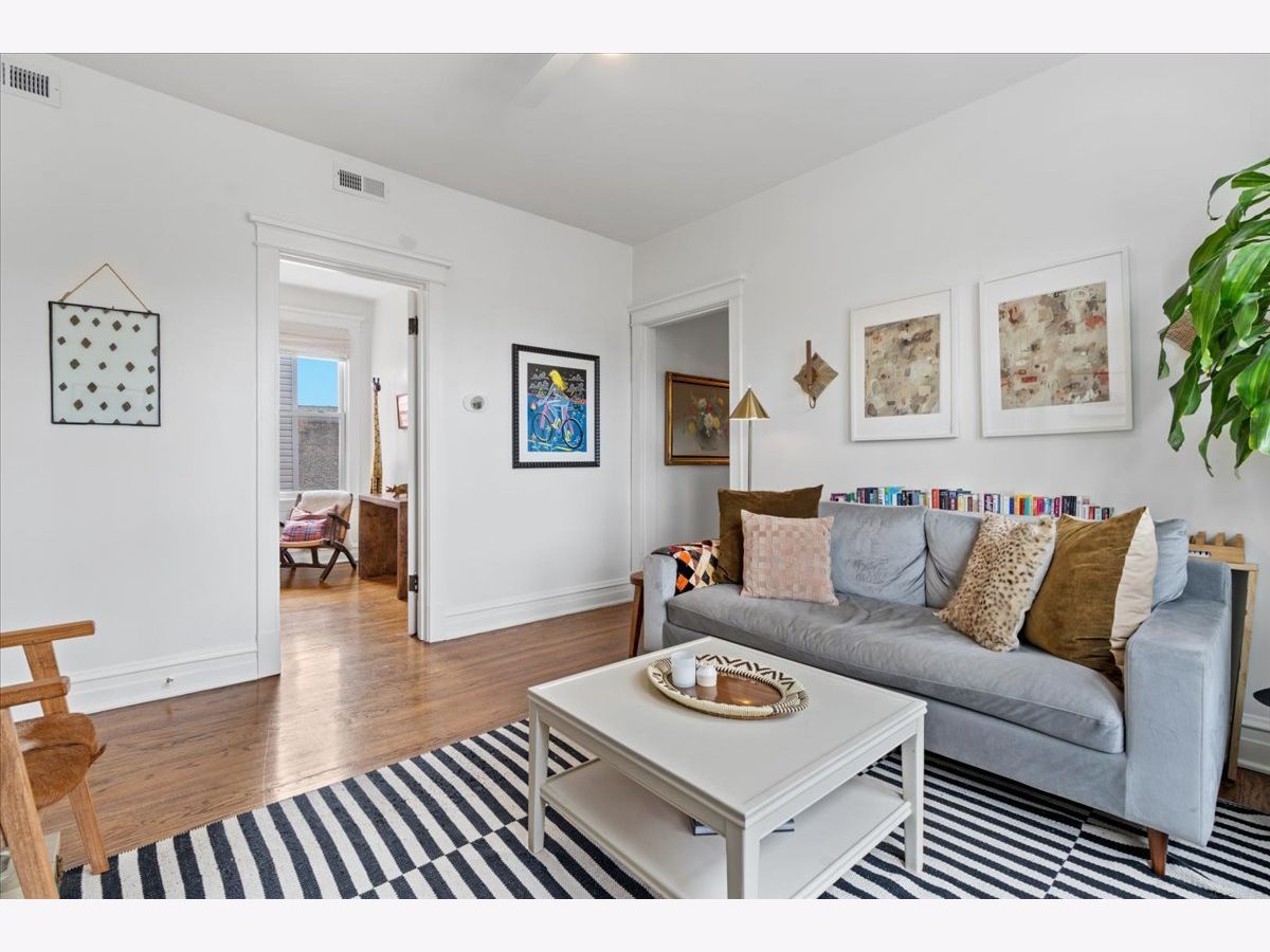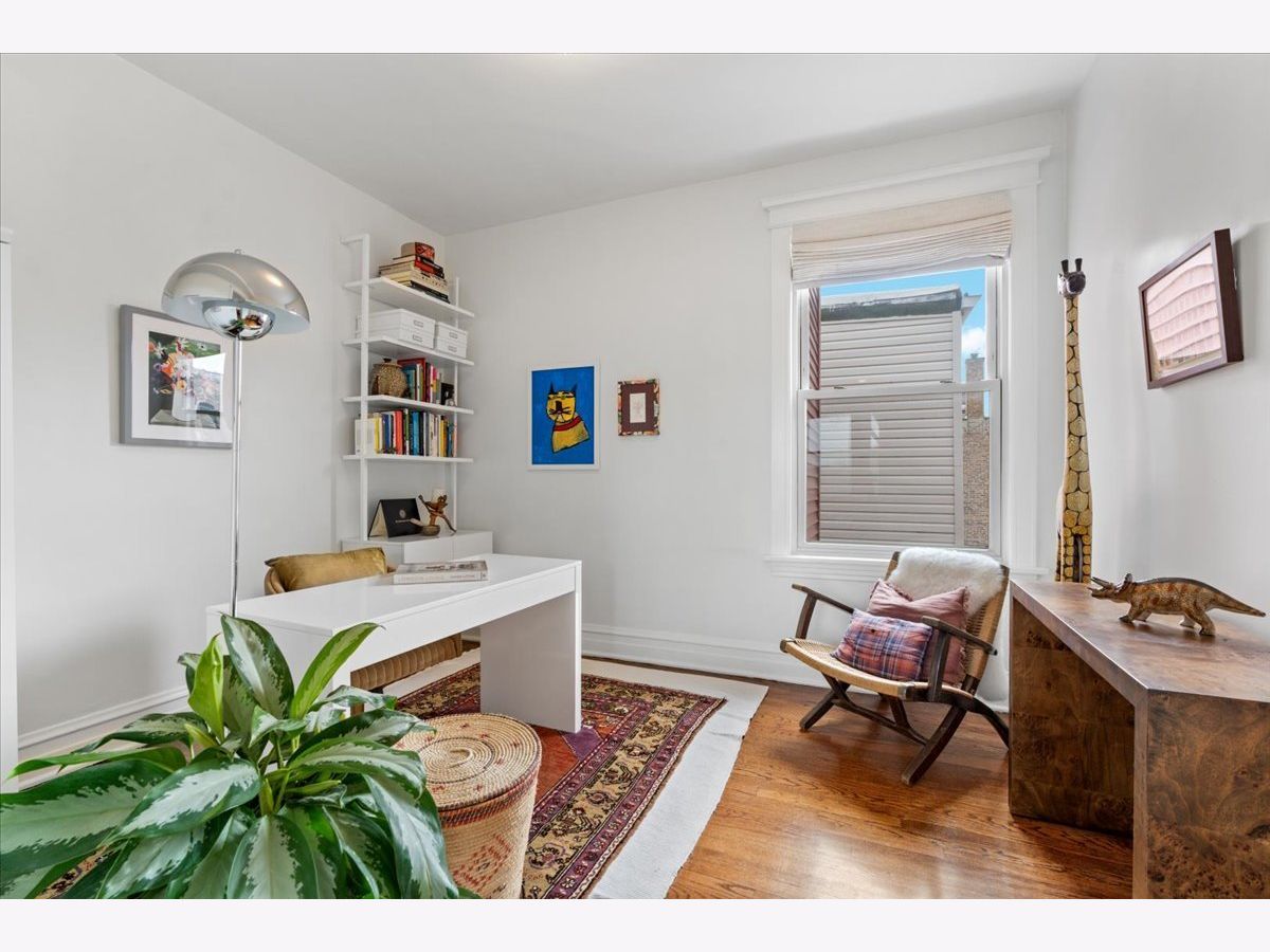 Vintage charm meets modern sophistication in this timeless 2-bedroom, 1-bathroom condo in the heart of Ukrainian Village. Perched on the top floor of a quiet, well-maintained building, this sun-filled home sits on a picturesque, tree-lined street. The spacious corner living room is bathed in natural light and features soaring ceilings and hardwood floors throughout, creating an inviting and airy feel. The beautifully updated kitchen is both stylish and functional, showcasing stainless steel appliances, white shaker cabinetry, quartz countertops, a classic white subway tile backsplash, gorgeous original built in cabinets and a window seat. Additional cabinetry enhances storage, while the large rear deck just off the kitchen is perfect for grilling, entertaining, or relaxing outdoors. The bathroom blends classic design with thoughtful updates, including a white subway tile shower, newly glazed bathtub, updated plumbing and light fixtures, and added shelving. Recent upgrades by the current owner include motorized Roman shades throughout, new light fixtures in every room, updated switches, and a smart thermostat. Storage is abundant with custom Elfa closets in both bedrooms, plus an additional secure storage space on the ground floor. A brand-new in-unit washer and dryer complete the home. Offering the perfect blend of vintage character and modern convenience, all in an unbeatable location just moments from Division Street and Wicker Park-this is one you don't want to miss.