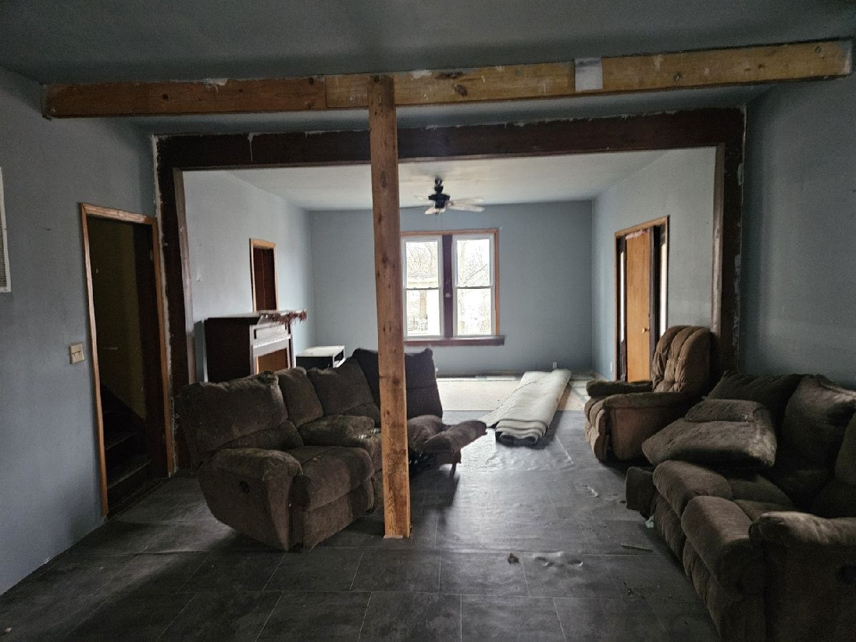 Spacious 5-bedroom, 2-bath, 2,176 sq ft single-family home in Newton, IL, on a 5,227.2 sq ft lot with siding exterior, front porch, double-pane windows, concrete/shared driveway, three-car garage, and workshop, offered as-is only. Interior features a flexible layout with a mix of hardwood, carpet, and some unfinished flooring, plus a wet basement that is half slab and half foundation with no water entering the living space, along with city water and sewer, updated PVC/PEX water lines, two newer breaker boxes, a roughly 6-year-old water heater, a 5-year-old furnace.