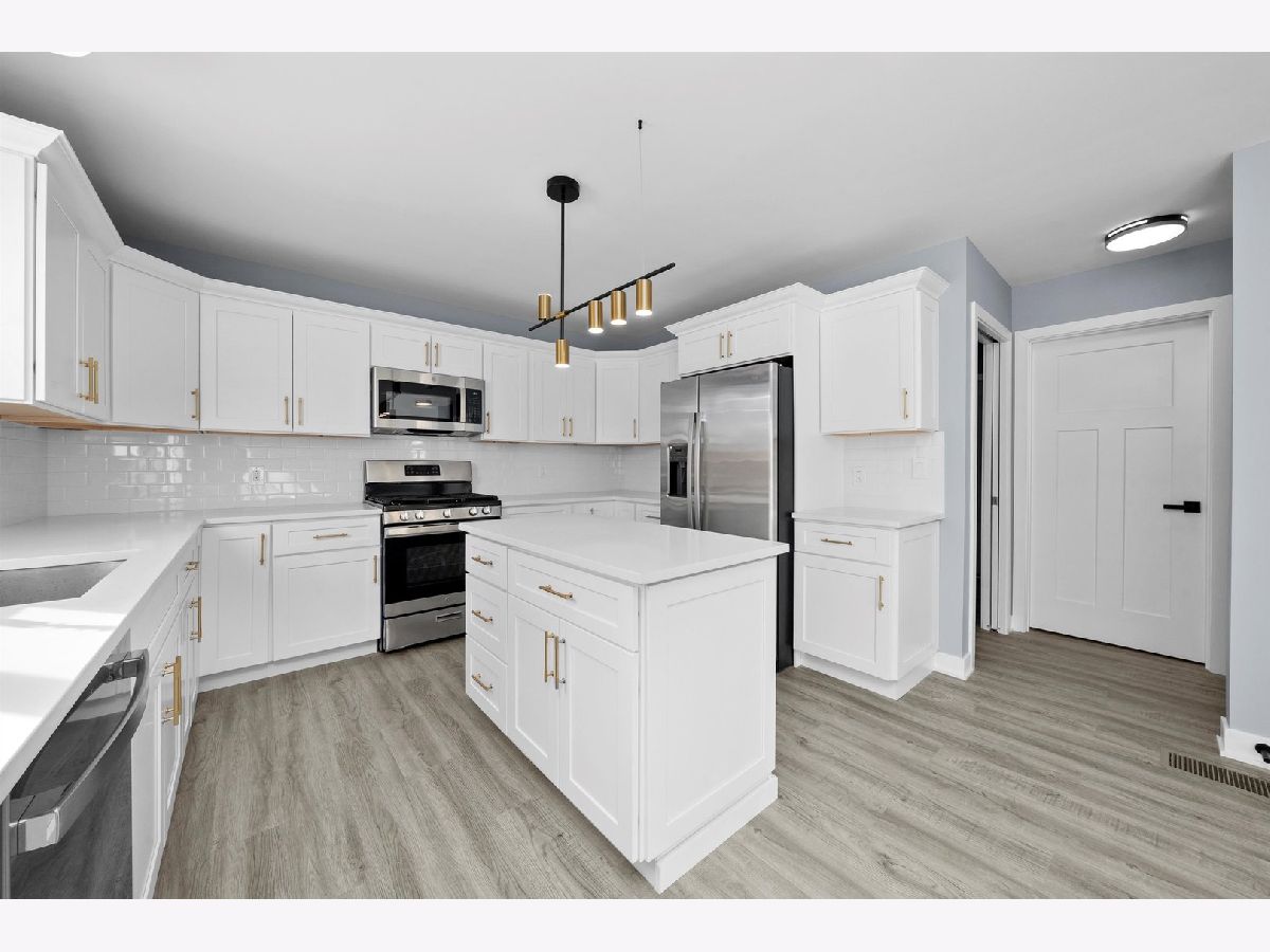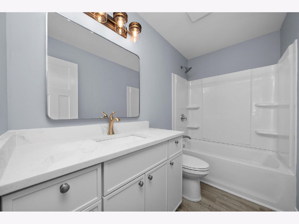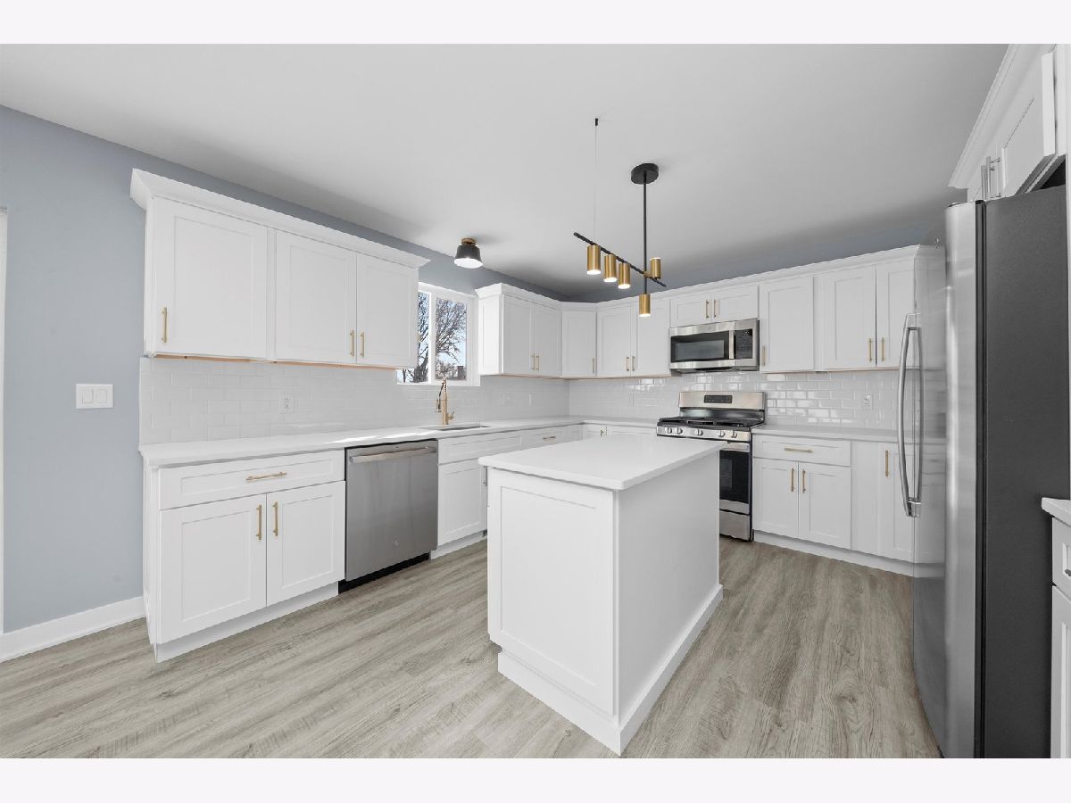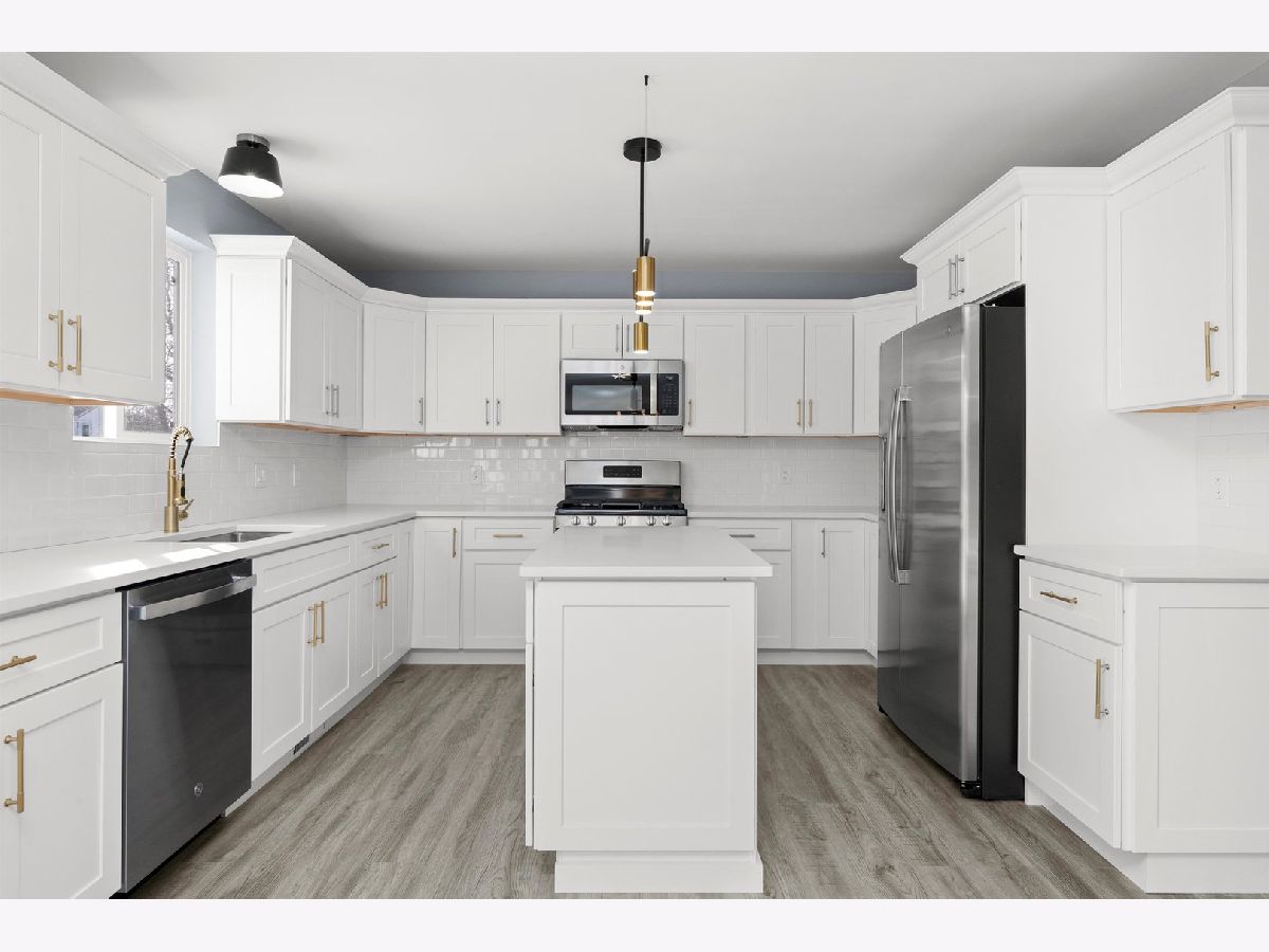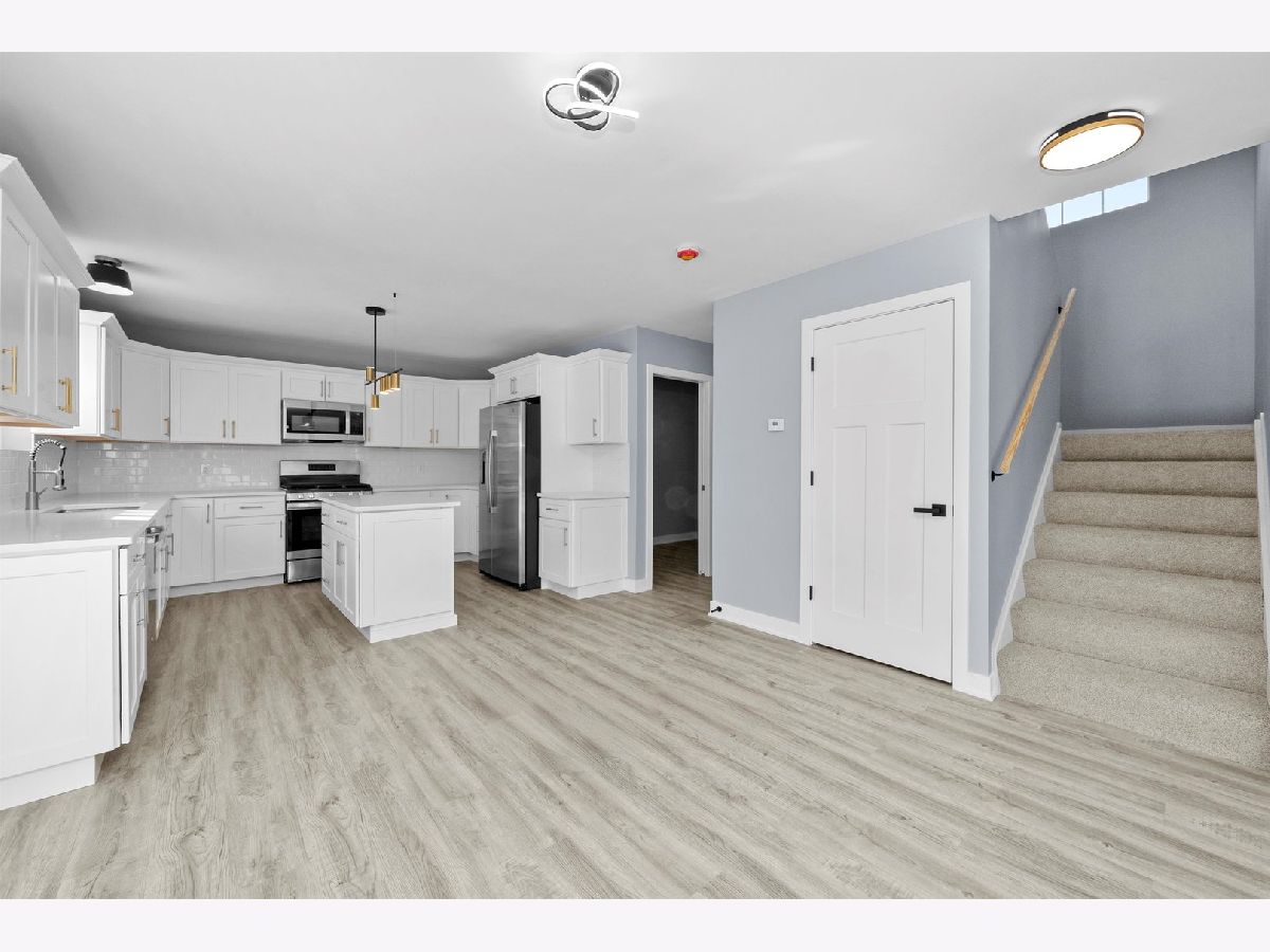 STUNNING NEW CONSTRUCTION 2-story home featuring 3 bedrooms and 2.5 bathrooms, thoughtfully designed with high-end finishes throughout. The main level offers a bright open-concept layout with wood laminate flooring and a beautiful, modern kitchen showcasing popular white cabinetry with custom cabinets, quartz countertops, gold accents, white backsplash, stainless steel appliances and a spacious island perfect for entertaining. You'll appreciate the different yet beautiful light fixtures throughout. The second floor includes all three generously sized bedrooms, highlighted by a primary suite with a private bathroom and walk-in closet. The additional two bedrooms offer great space and flexibility. A full basement provides ample storage or future finishing potential. Additional features include a 2-car attached garage, extra wide concrete driveway and a desirable corner lot location.