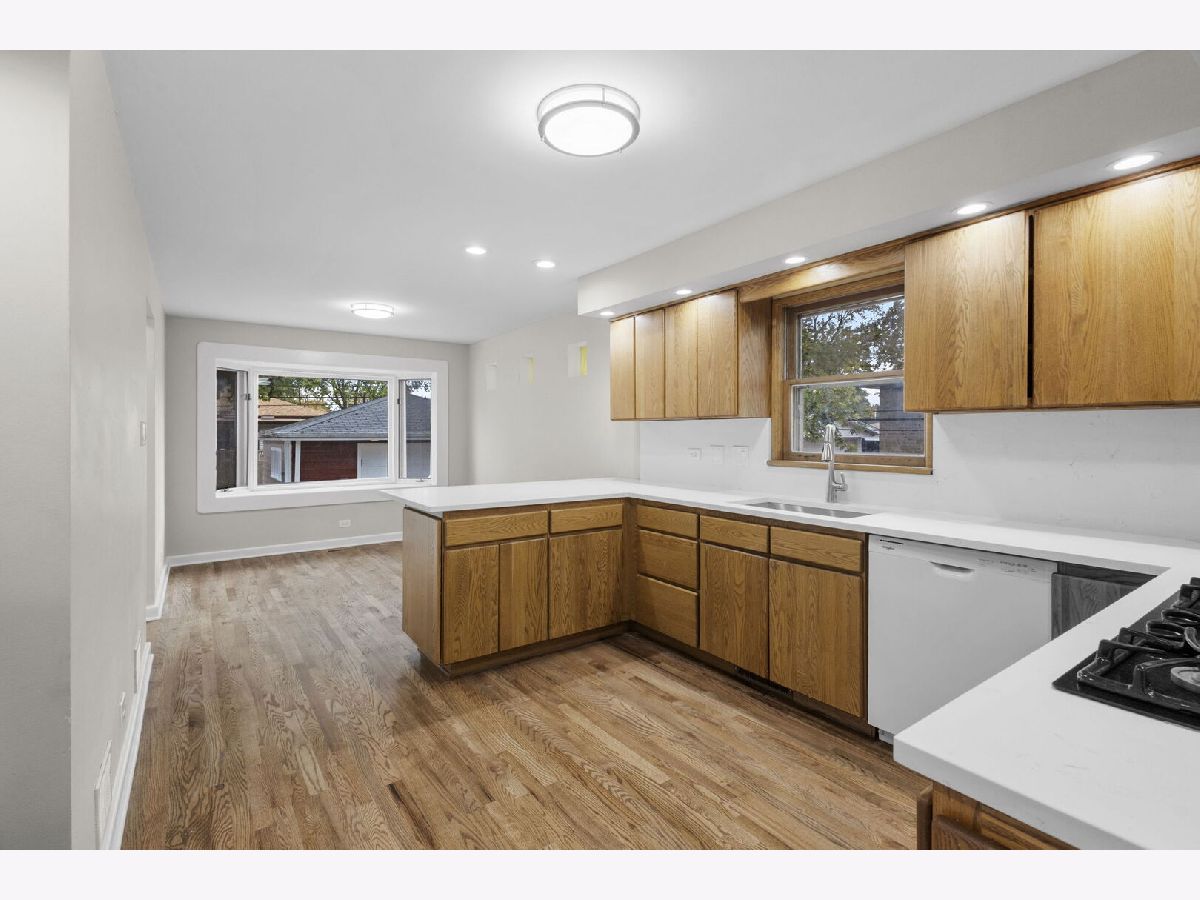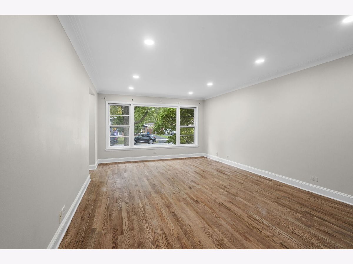 Welcome to this stunning all brick ranch home located in the heart of Oak Lawn. This home offers fantastic curb appeal with a sprawling driveway leading to a spacious 2.5 car detached garage. Step inside and you will immediately appreciate the warm and inviting atmosphere. The home has been freshly painted throughout (October 2025). Bright and sunny spacious living room has brand new hardwood flooring, new can lighting, and beautiful crown molding, making it the perfect spot for relaxing and entertaining. The large updated eat-in kitchen features beautiful wood cabinets, new quartz countertops and backsplash, new light fixtures, new can lighting, new hardwood flooring, plenty of counter space, newer stove and microwave. You will also find a beautiful bay window in the eat-in kitchen. Three nice size bedrooms all featuring newly refinished gleaming hardwood flooring and new light fixtures. The full hallway bathroom has been beautifully remodeled. The half bathroom with a new vanity and toilet is perfect for guests, adding convenience and functionality. The full finished basement expands your living space with an open family room, complete with brand new vinyl flooring. Off the family room is a built-in bar, ideal for hosting gatherings. You'll also find an office or workout room in the basement that features new vinyl flooring. Large utility room perfect for storage and also includes a shower. Outside, enjoy a spacious yard complete with a concrete patio. A detached 2.5 car garage offers additional convenience and storage. This is the perfect opportunity to own a spacious home in a sought after location near shopping, dining, transportation, schools, parks, and more! Schedule your showing today!