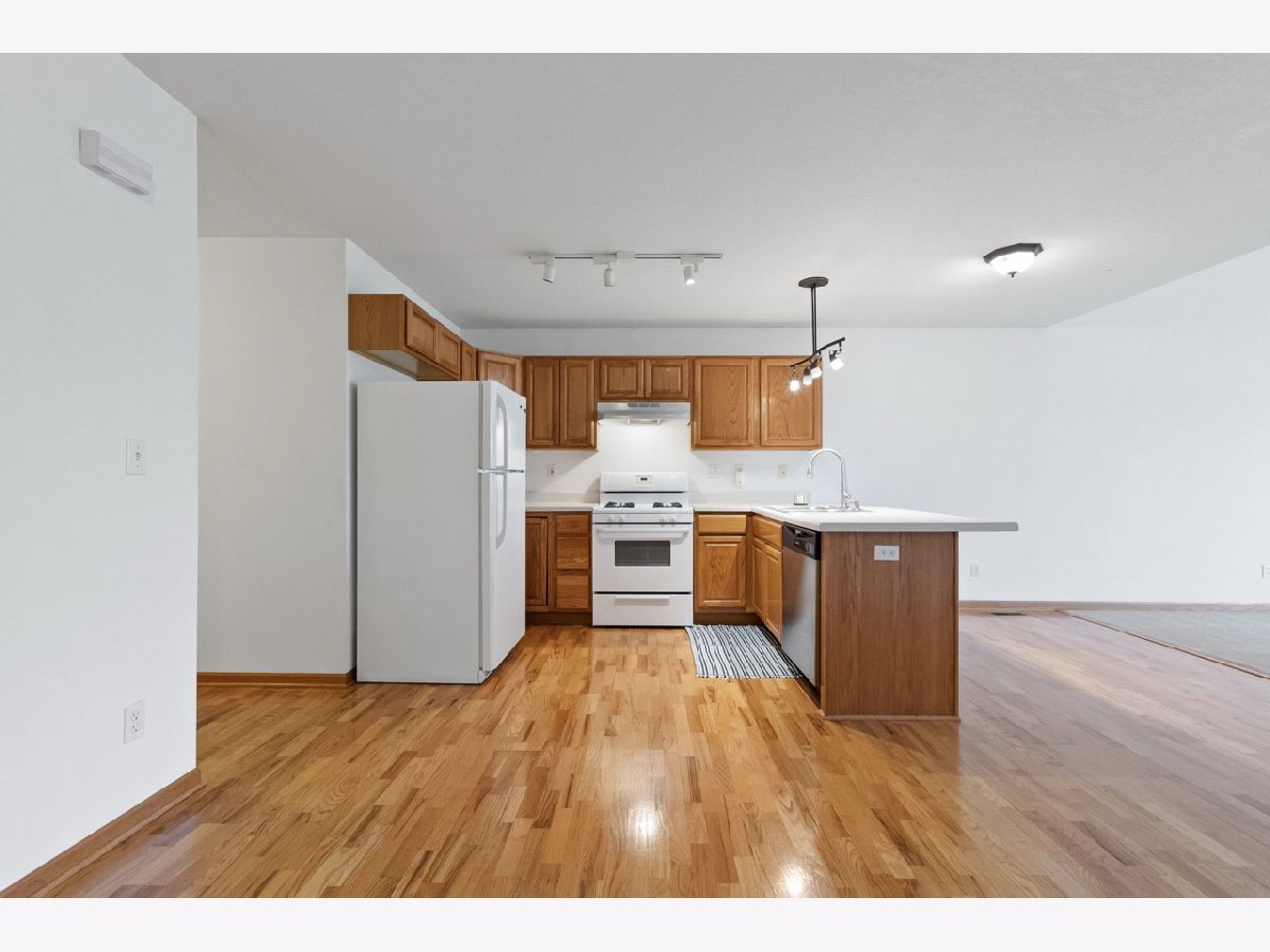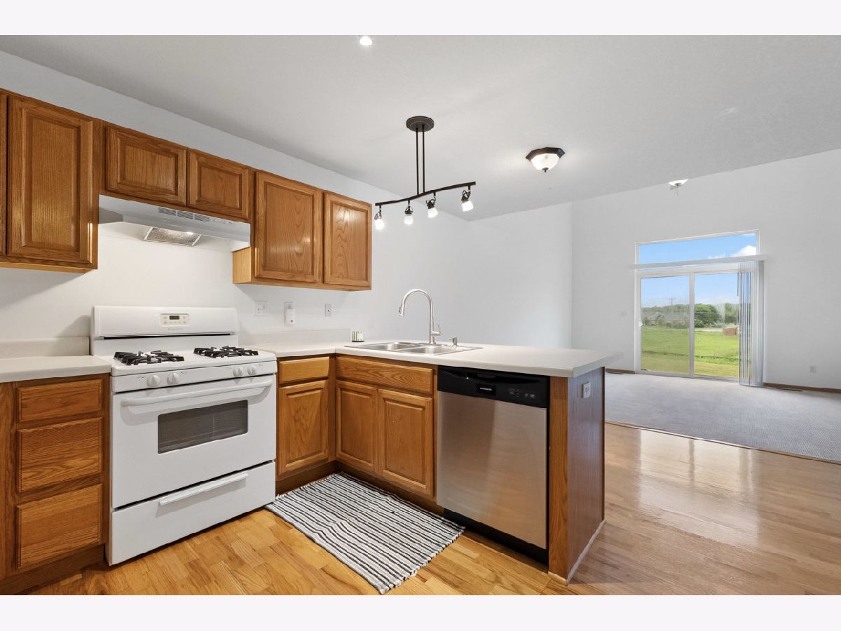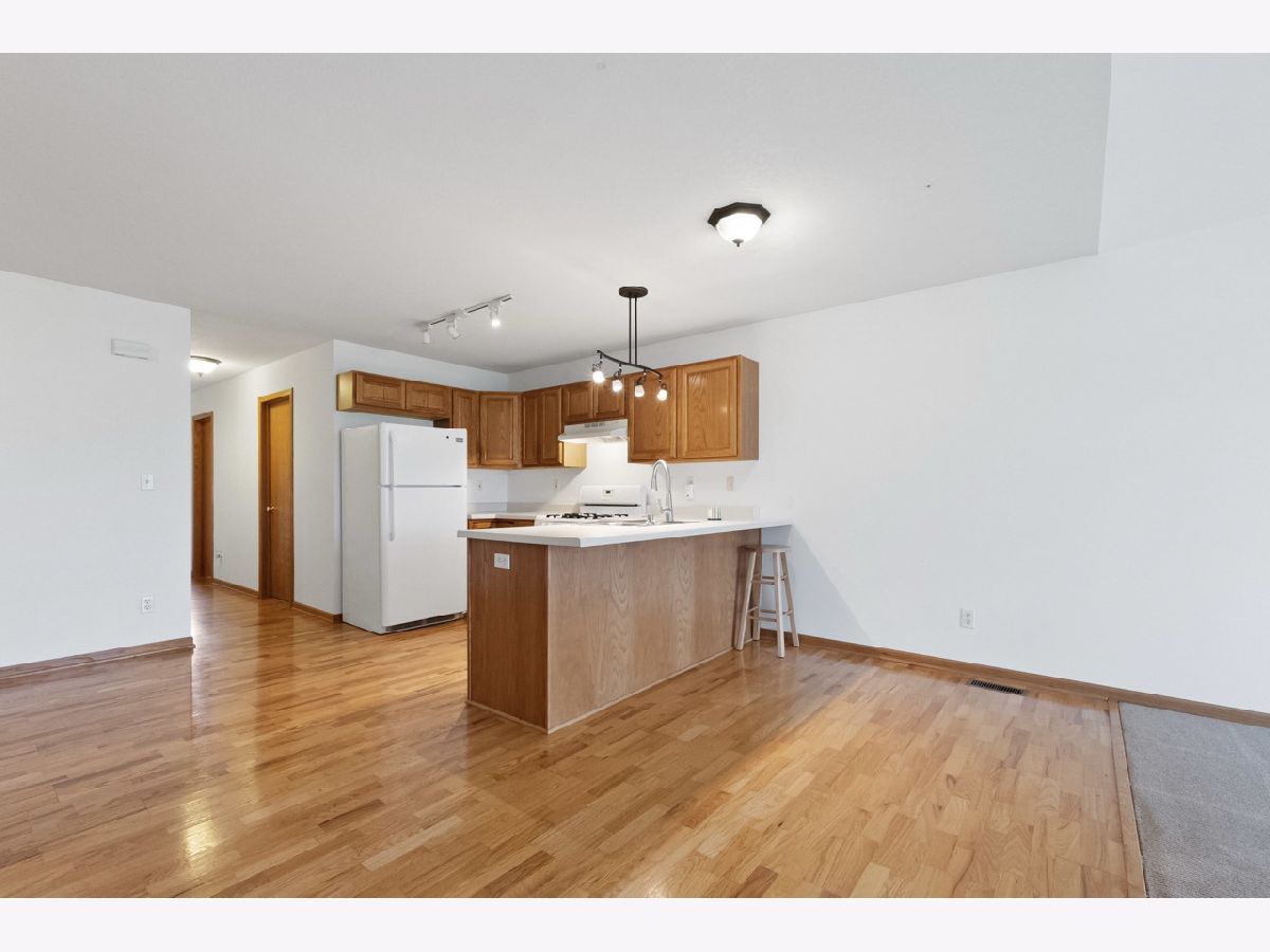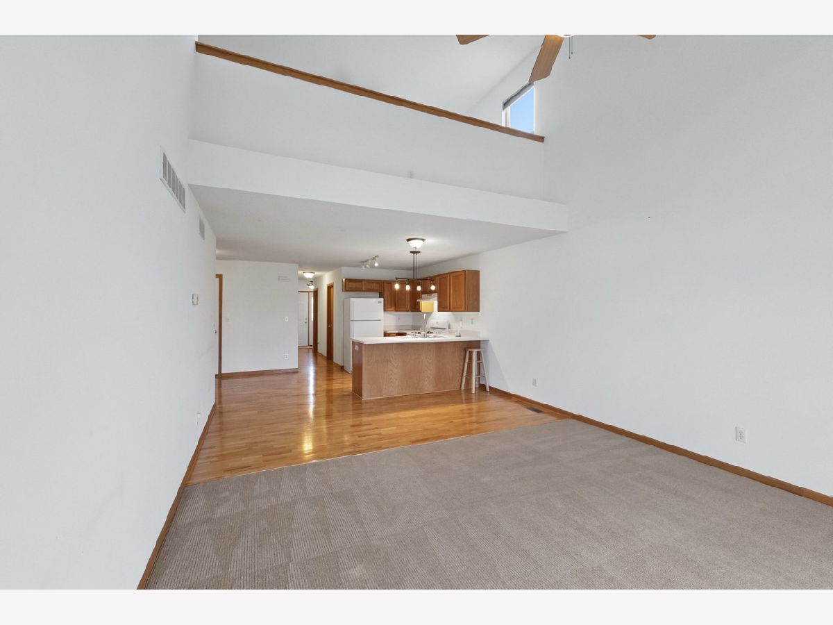 Charming ranch end unit conveniently located near Sycamore Middle School, close to walking paths, and just minutes from downtown Sycamore. Offering both convenient single-floor living and additional space upstairs, this home offers comfortable living that nicely meets the needs of all buyers. Enjoy easy living with no lawn care or snow removal. The first floor offers an open concept with vaulted ceilings, a main bedroom with a walk-in closet and convenient laundry and half bath, and access to a private concrete patio. The fully equipped kitchen includes a breakfast bar and dining area with hardwood floors. Upstairs, there's a spacious loft overlooking the living room, along with a bedroom and full bath. The property also features a two-car garage with opener, deep crawl space for storage, and recent updates include HVAC (3 years old), new dishwasher, washing machine, garbage disposal, and a newer refrigerator. Quick close possible as this home is move in ready!