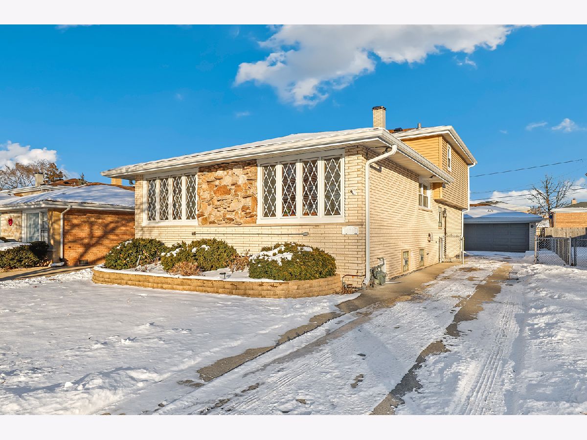 Welcome to this spacious 3-bedroom, 2-bath split-level home with a finished sub-basement, offering abundant living space throughout. The main level features a bright and sunny living room with hardwood floors that flows seamlessly into the dining room. The large kitchen provides ample space for a kitchen table or the option to add an island, added while pantry cabinets in the dining room offer valuable additional storage. The second level includes all spacious three bedrooms and a full bathroom with an extra-long vanity. The lower level boasts a generous family room with direct access to the backyard, along with a second full bathroom featuring a walk-in shower. The finished sub-basement offers tons of extra space for additional living areas, recreation, or storage, plus a convenient laundry area with a utility sink. Enjoy outdoor living in the large backyard with patio and pergola that provides easy access to the detached 2.5-car garage. Recent updates include newer kitchen and bedroom windows (2022), newer wooden blinds in the living & dining rooms, newer tear-off roof on both the house and garage (2021), and a newer water heater (2020). Blocks to Wolfe Wildlife Park with playground and walking trails. Convenient location for everyday errands with Mariano's three blocks away along with multiple other shopping and dining options like Cooper's Hawk, Home Goods and T.J. Maxx close by. Easy access to Pace buses with 294 and Chicago Ridge Metra Station are ten minutes away. This is the perfect place to start your next chapter! Property is being sold as-is.