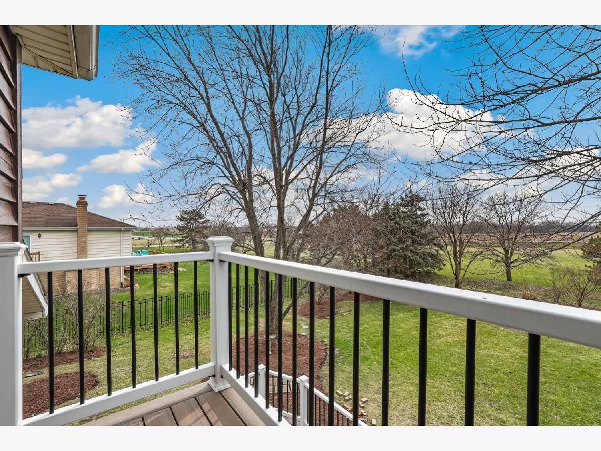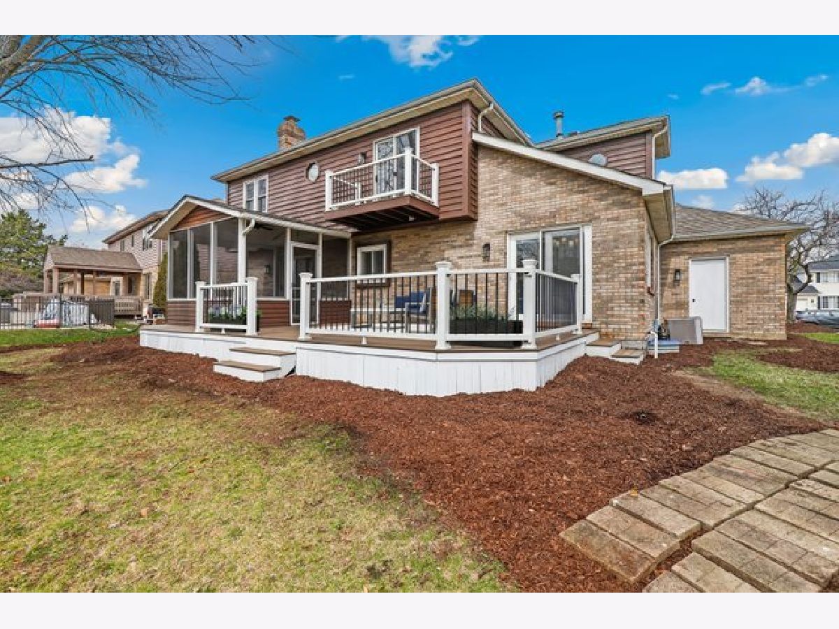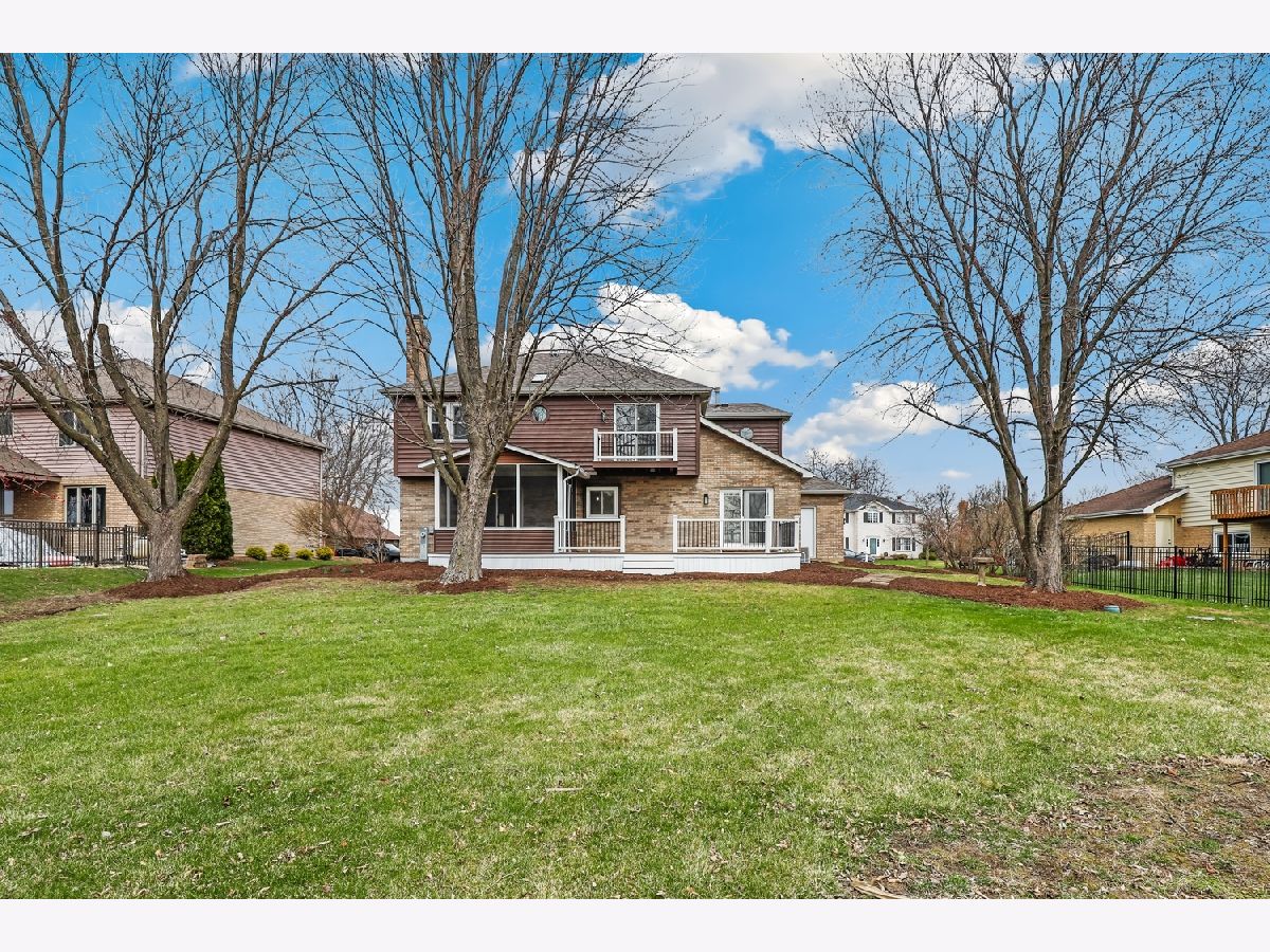 Welcome to this beautifully renovated two story home in Heritage Knolls! From the moment you step inside, you are greeted by a dramatic two story foyer featuring wide plank wood laminate flooring and a newly updated staircase. The formal living room offers a large bay window that fills the space with natural light, while the formal dining room showcases a matching bay window and stylish chandelier, perfect for entertaining. The kitchen is designed for both function and style with new stainless steel appliances, quartz countertops, marble backsplash, shaker cabinetry, and a spacious center island. The adjacent breakfast area features vaulted ceilings and skylights, creating a bright and airy setting for everyday meals. The family room is warm and inviting with a floor to ceiling brick fireplace and direct access to the screened-in deck. A convenient half bath and laundry room complete the main level. Upstairs, the primary suite provides a relaxing retreat with a large walk in closet, updated spa-inspired ensuite bath, and a private balcony. Three additional generously-sized bedrooms and a fully updated hall bath provide comfortable space for family and guests. The unfinished basement offers excellent storage and endless potential for future living space. Step outside to a newly rebuilt, expansive deck that sets the stage for outdoor living, complemented by a screened porch and a private, professionally landscaped yard framed by mature trees. Other recent improvements include a new roof 2025, water heater and softener 2026, providing peace of mind for years to come. Ideally located near local favorites like Downtown Frankfort Historic District, Old Plank Road Trail, restaurants, shops, parks, Metra stations and award winning Frankfort 157C and Lincoln Way East 210 schools! Just move in and start making memories!