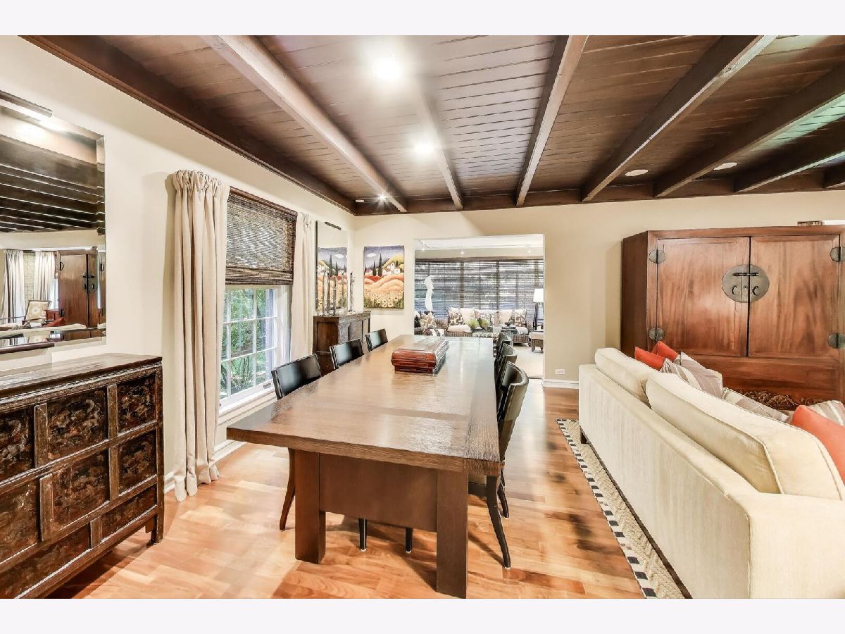 California-Casual Living in Glencoe. This 5-bedroom, 3-bath ranch style home combines modern updates with warm, inviting spaces. The custom nuHaus kitchen features Subzero, Miele, and Bosch appliances with a large eat-in area, perfect for family meals. A spacious living room with a wood beamed ceiling and a fireplace flows into the dining room (seats 12) and a bright sunroom surrounded by windows-ideal for relaxing or entertaining. The main level offers three bedrooms including a serene primary suite with updated bath, plus two more bedrooms and a stylish hall bath. Upstairs, two additional bedrooms and hall bath provide flexible space for kids, a home office, or creative studio. This home has a brand-new roof, heated floors on the main floor, two separate HVAC systems and ample storage throughout. This home is as practical as it is beautiful. A two-car attached garage makes life easy. Location is so convenient. 10 min walk to downtown Glencoe, close to Glencoe schools, a block to the Takiff center, 5 blocks to Metra train, walk to Ravinia, Chicago Botanic Gardens, shopping, the Edens expressway and more-you'll love the lifestyle this home makes possible. No basement but some attic storage.