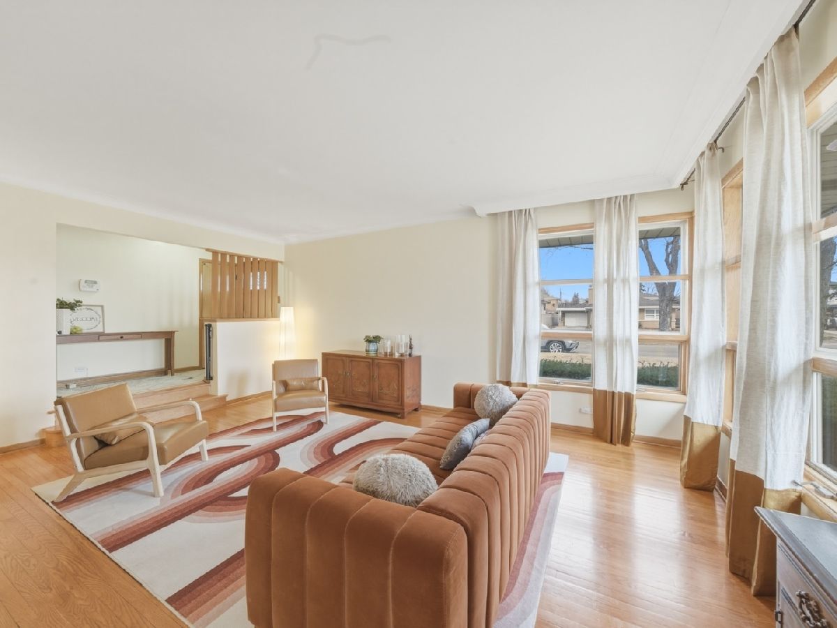 Welcome to 10800 S Tripp. This solid, stately tri-level home offers ample living space, 4 spacious bedrooms and 3 full baths located on a private corner-lot near parks, shopping and schools. Step inside and be welcomed by an abundance of light in the sunken living room adjacent to the open concept kitchen and dining space. The dining room features a tie to the mid-century era with a gorgeous gold and glass, globe light fixture. Step into the sleek kitchen which offers new appliances, floating shelves on a wall of hexagon tile and quartz counter tops. The homeowners took pride in updating the space but keeping the mid-century esthetic in mind. One bedroom and a full bath round out the main level making it convenient for multi-generational families or a guest bedroom. Just 4 steps up leads you to the second floor which has an additional 2 bedrooms and one large bathroom. The primary bedroom is on the third level and is expansive with 4 closets and room for an additional sitting area. The basement is the best! Cozy up next to the wood burning fireplace, belly up the mid-century bar or watch a game with plenty of room for seating. Convenience doesn't stop there - there's a full bath on this level as well as the entrance to the attached garage - taking the party outside! The time is now to see this home! Roof/Gutter (2025), HWH (2022) New Fence (2023) Washer/Dryer (2023), Appliances (2023)