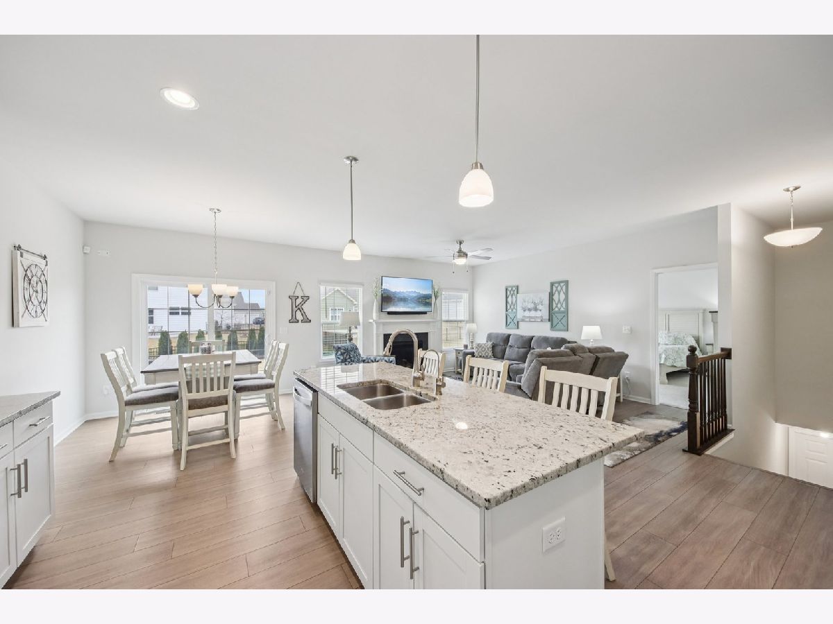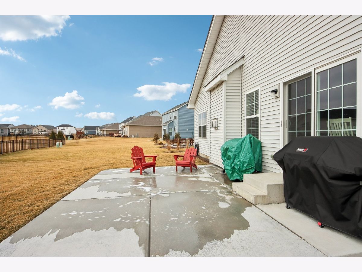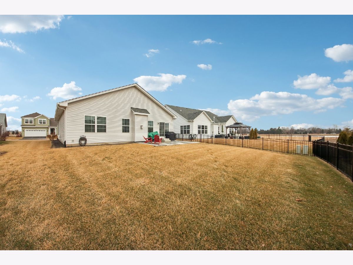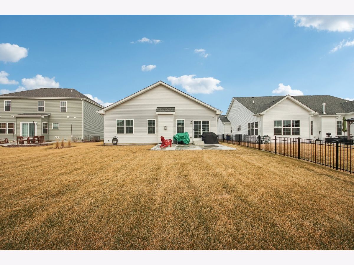 Welcome home! Skip the wait and extra expense of new construction and move right into this 2022-built ranch in desirable Elburn Station. Buying this home today can save you tens of thousands compared to building the same Hickory model, with appliances, window treatments, and patio already complete. This 3-bedroom, 2-bath home offers 1,613 square feet of modern, single-level living with a functional open layout. The kitchen features granite countertops, white cabinetry, a center island with breakfast bar seating, pantry storage, and a full appliance package. The kitchen flows into the dining area and living room, where a gas fireplace creates a comfortable focal point and gathering space. The primary suite includes a walk-in closet and private bath with a double vanity and separate shower. Two additional bedrooms provide flexibility for guests, a home office, or additional living needs. Main-level laundry adds everyday convenience. The full unfinished basement offers tons of expansion potential and includes rough-in plumbing for a future bathroom, making it ready for a recreation room, guest suite, gym, or additional living space. Outside provides a usable outdoor space, complete with a spacious patio ideal for relaxing or entertaining. Additional highlights include an attached two-car garage and a location within highly regarded Kaneland District 302 schools. Convenient access to parks, neighborhood amenities, and commuter routes adds to the home's overall appeal. This is a rare opportunity to own a nearly new home with completed outdoor improvements and room to grow, all in an established and welcoming community.