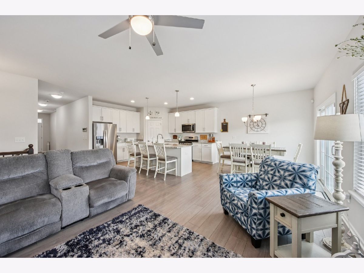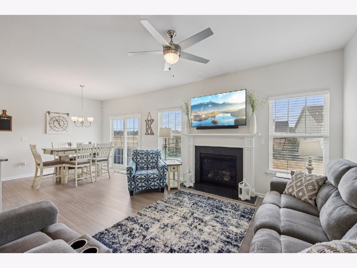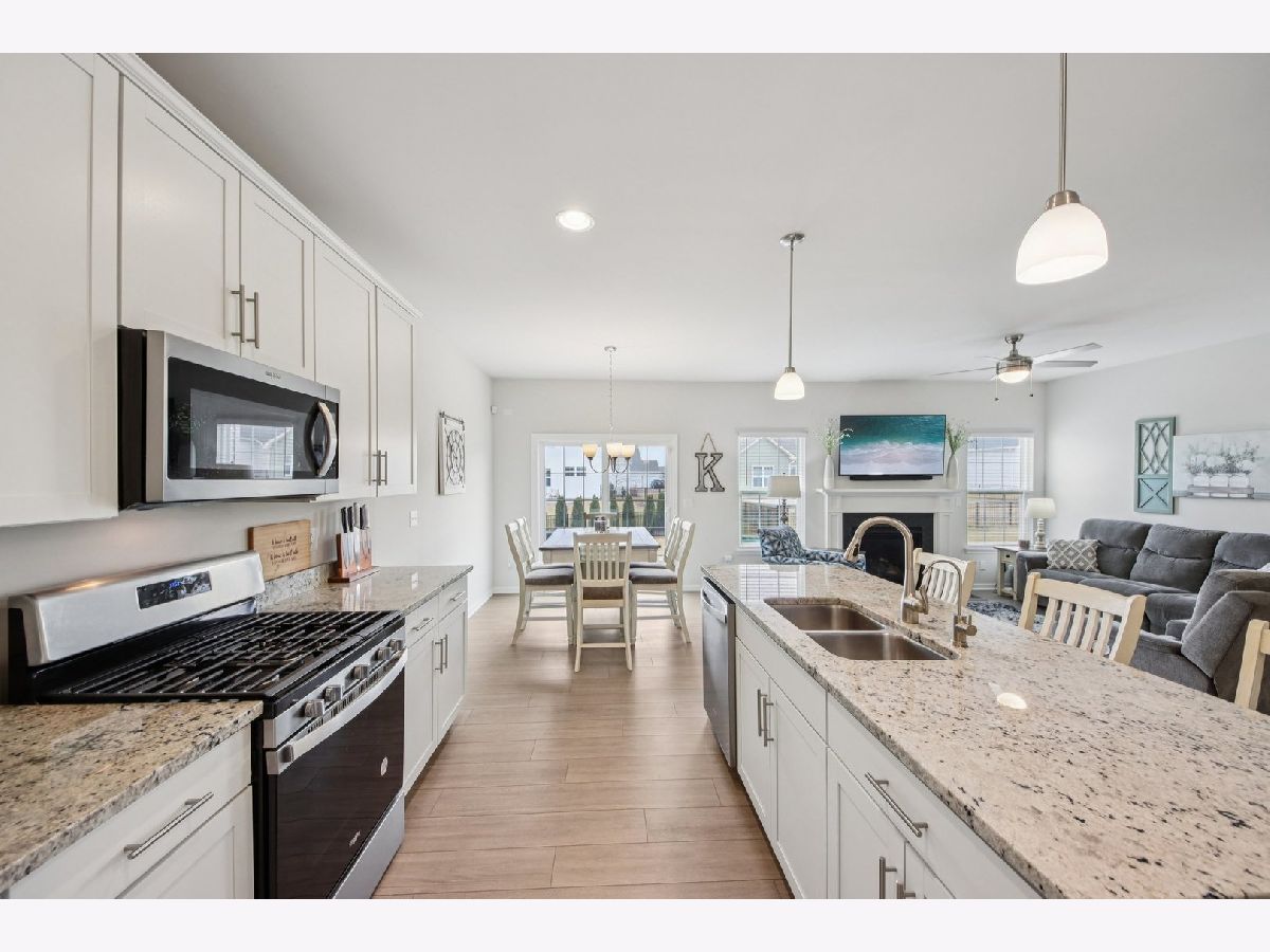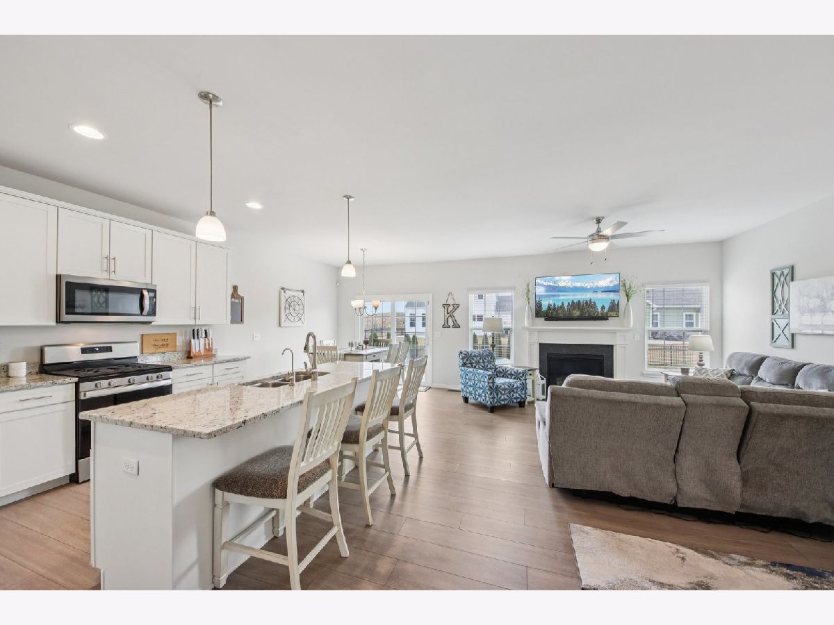 Welcome home! Skip the wait and extra expense of new construction and move right into this 2022-built ranch in desirable Elburn Station. Buying this home today can save you tens of thousands compared to building the same Hickory model, with appliances, window treatments, and patio already complete. This 3-bedroom, 2-bath home offers 1,613 square feet of modern, single-level living with a functional open layout. The kitchen features granite countertops, white cabinetry, a center island with breakfast bar seating, pantry storage, and a full appliance package. The kitchen flows into the dining area and living room, where a gas fireplace creates a comfortable focal point and gathering space. The primary suite includes a walk-in closet and private bath with a double vanity and separate shower. Two additional bedrooms provide flexibility for guests, a home office, or additional living needs. Main-level laundry adds everyday convenience. The full unfinished basement offers tons of expansion potential and includes rough-in plumbing for a future bathroom, making it ready for a recreation room, guest suite, gym, or additional living space. Outside provides a usable outdoor space, complete with a spacious patio ideal for relaxing or entertaining. Additional highlights include an attached two-car garage and a location within highly regarded Kaneland District 302 schools. Convenient access to parks, neighborhood amenities, and commuter routes adds to the home's overall appeal. This is a rare opportunity to own a nearly new home with completed outdoor improvements and room to grow, all in an established and welcoming community.