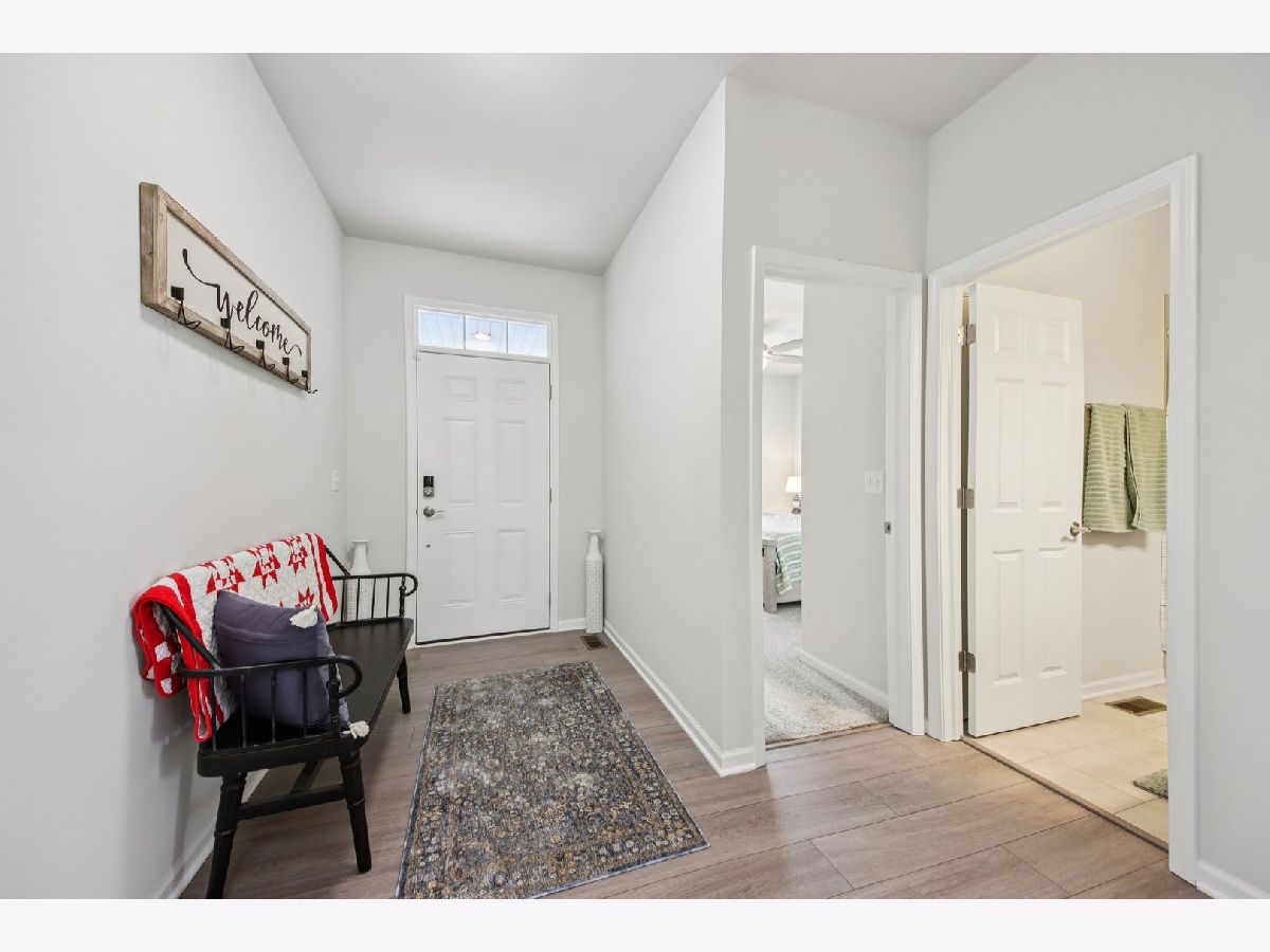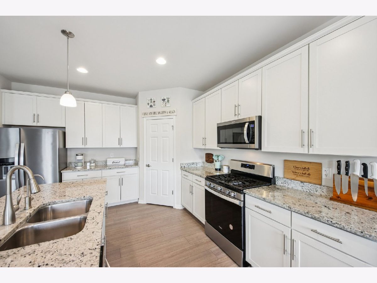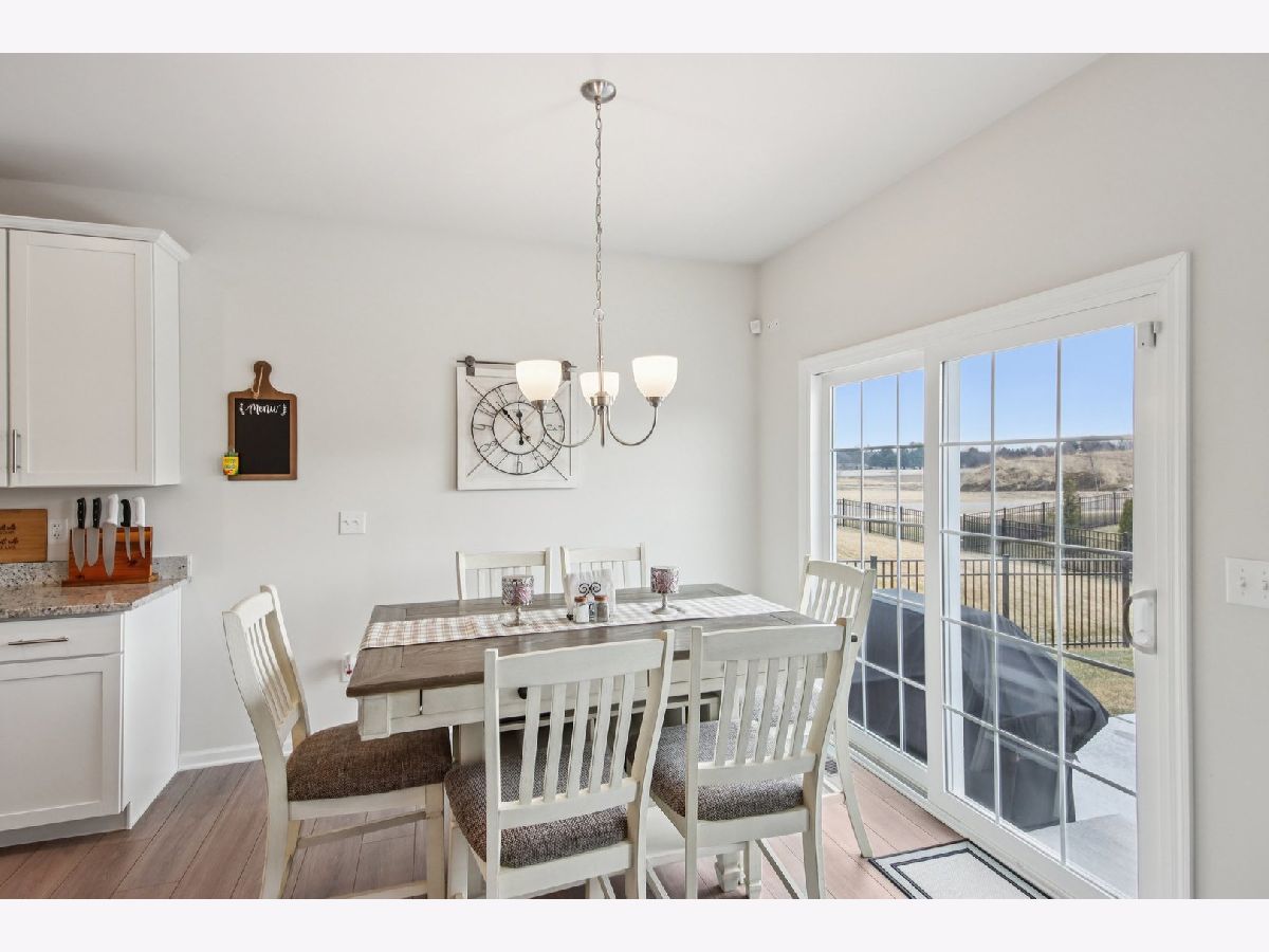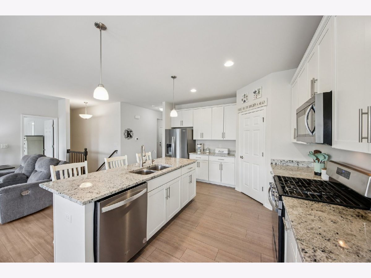 Welcome home! Skip the wait and extra expense of new construction and move right into this 2022-built ranch in desirable Elburn Station. Buying this home today can save you tens of thousands compared to building the same Hickory model, with appliances, window treatments, and patio already complete. This 3-bedroom, 2-bath home offers 1,613 square feet of modern, single-level living with a functional open layout. The kitchen features granite countertops, white cabinetry, a center island with breakfast bar seating, pantry storage, and a full appliance package. The kitchen flows into the dining area and living room, where a gas fireplace creates a comfortable focal point and gathering space. The primary suite includes a walk-in closet and private bath with a double vanity and separate shower. Two additional bedrooms provide flexibility for guests, a home office, or additional living needs. Main-level laundry adds everyday convenience. The full unfinished basement offers tons of expansion potential and includes rough-in plumbing for a future bathroom, making it ready for a recreation room, guest suite, gym, or additional living space. Outside provides a usable outdoor space, complete with a spacious patio ideal for relaxing or entertaining. Additional highlights include an attached two-car garage and a location within highly regarded Kaneland District 302 schools. Convenient access to parks, neighborhood amenities, and commuter routes adds to the home's overall appeal. This is a rare opportunity to own a nearly new home with completed outdoor improvements and room to grow, all in an established and welcoming community.
