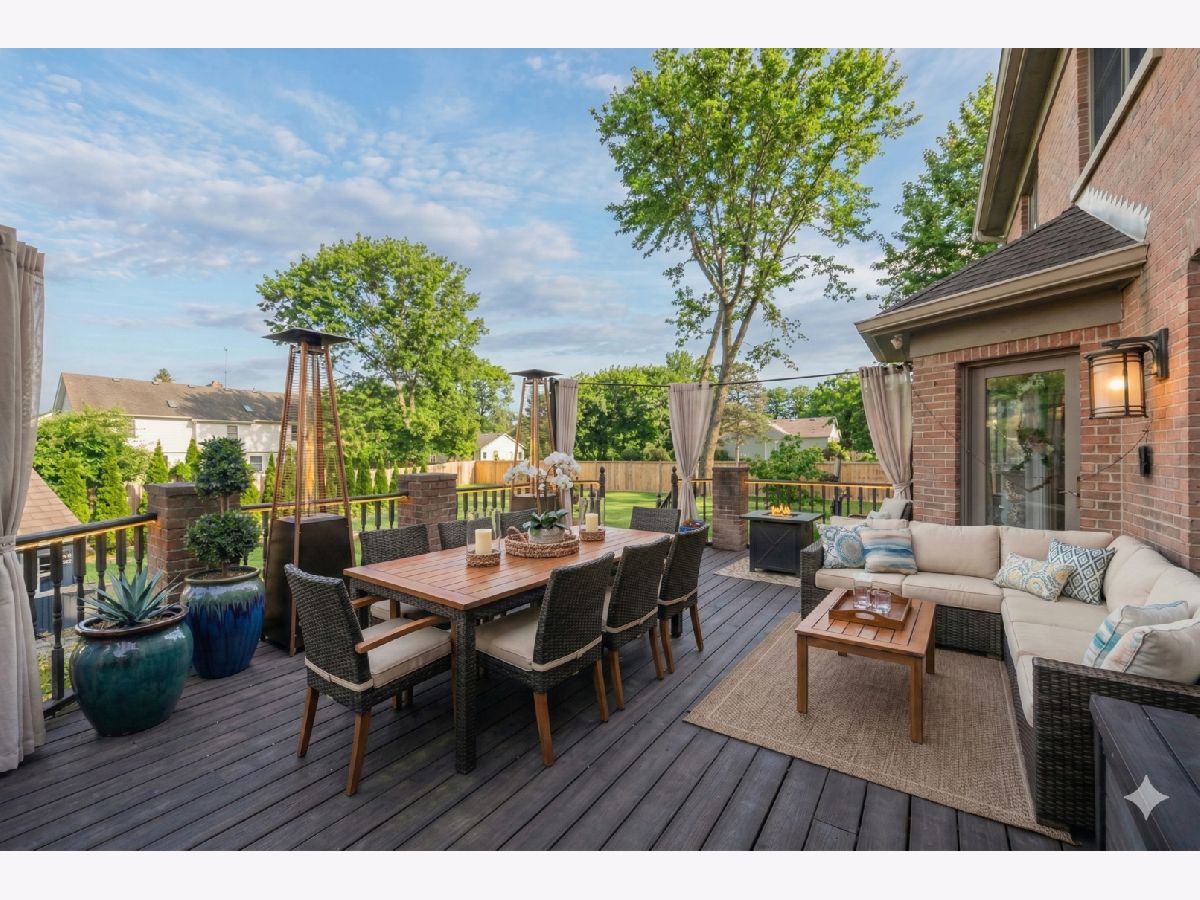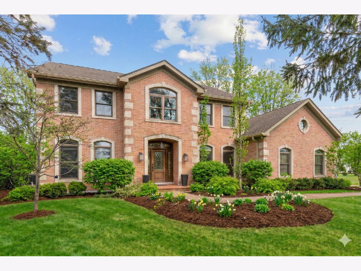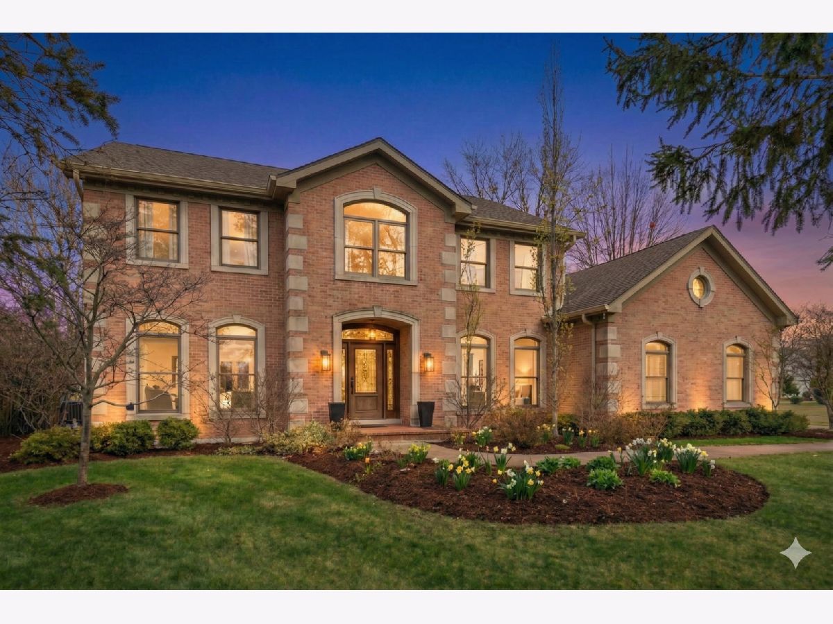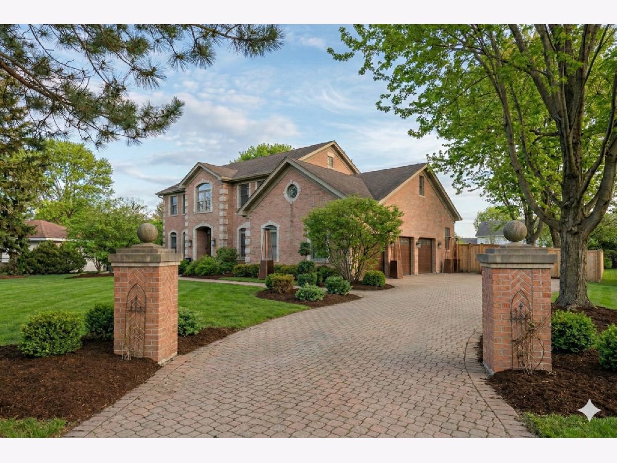 This custom-built brick home, accented with timeless limestone details, is a true standout. Nestled on an expansive, professionally landscaped nearly half-acre lot, this home combines elegance, comfort, and functionality. The fully fenced backyard, complete with a brand-new privacy fence, utility shed, and an oversized entertainment deck with an outdoor fireplace, is perfect for gatherings or quiet evenings dining al-fresco. A spacious 3-car garage, paver driveway, and a prime corner lot adjacent to the neighborhood walking path add to its appeal. Step inside, and you'll be greeted by a home that seamlessly blends classic charm with modern updates. The spacious and bright foyer set the tone for the rest of the home. The spacious formal living room is to your left as you enter, with the dining room to the right just off of the kitchen and features sophisticated new wainscoting trim, while the newly updated chef's kitchen steals the show. With a large eat-at island, a sunny breakfast area, and an open flow into the family room-anchored by a striking floor-to-ceiling stone fireplace-this space is an entertainer's dream. (A photo rendering is shown for redesign inspiration of the FR fireplace) The first floor also boasts a convenient laundry room, a mudroom with built-in lockers, and a stylish half bath. Upstairs, the primary suite bathroom has been beautifully updated to create a luxurious retreat. The primary also features a large sitting area that can double as an extra office space. The fully finished basement extends the living space, offering a large recreation area, a serving bar with wine coolers, an additional bedroom, a play/toy room, and plenty of storage. Situated near Northcroft Park, shopping, dining, and the Metra, this home offers a lifestyle of convenience and connection. Don't miss the chance to make this special property yours! ***Some images have been AI-enhanced and/or virtually staged for marketing purposes. Actual features, finishes, and layout may vary. Buyer to verify all information and property condition in person.***