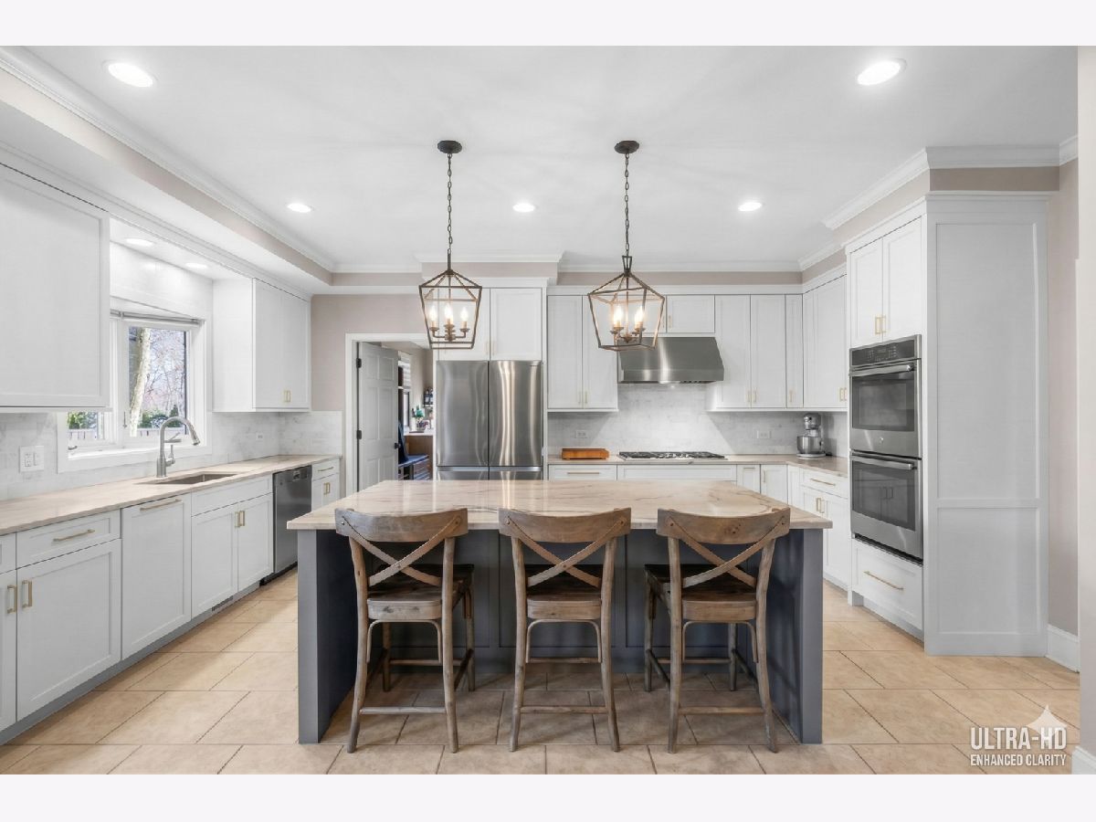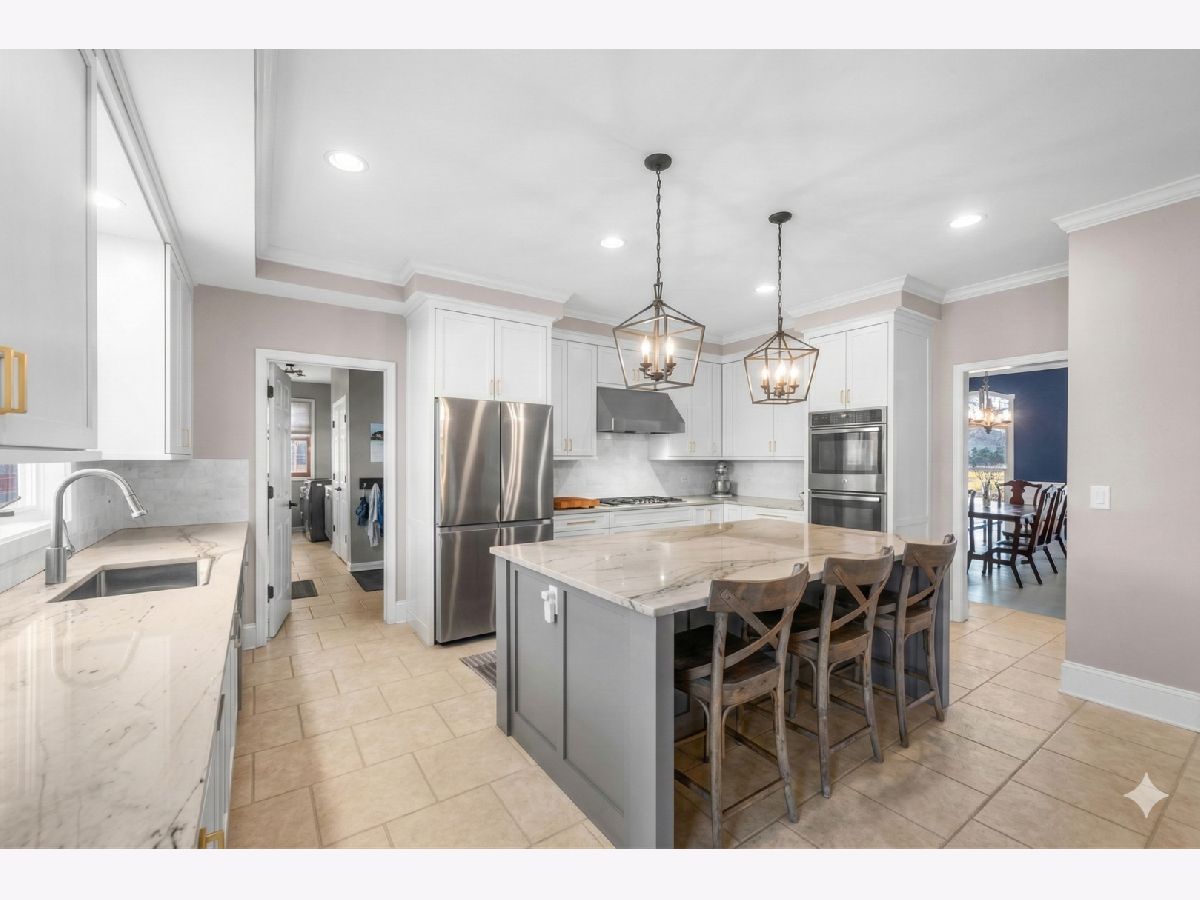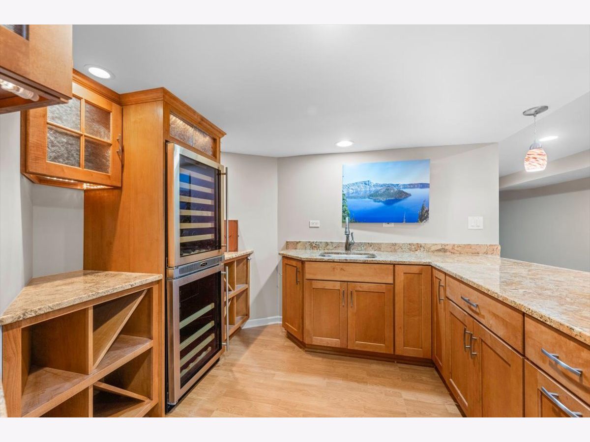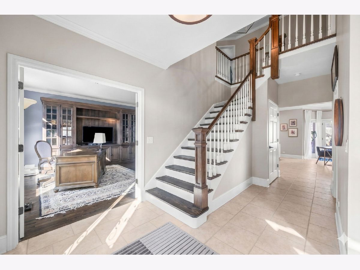 This custom-built brick home, accented with timeless limestone details, is a true standout. Nestled on an expansive, professionally landscaped nearly half-acre lot, this home combines elegance, comfort, and functionality. The fully fenced backyard, complete with a brand-new privacy fence, utility shed, and an oversized entertainment deck with an outdoor fireplace, is perfect for gatherings or quiet evenings dining al-fresco. A spacious 3-car garage, paver driveway, and a prime corner lot adjacent to the neighborhood walking path add to its appeal. Step inside, and you'll be greeted by a home that seamlessly blends classic charm with modern updates. The spacious and bright foyer set the tone for the rest of the home. The spacious formal living room is to your left as you enter, with the dining room to the right just off of the kitchen and features sophisticated new wainscoting trim, while the newly updated chef's kitchen steals the show. With a large eat-at island, a sunny breakfast area, and an open flow into the family room-anchored by a striking floor-to-ceiling stone fireplace-this space is an entertainer's dream. (A photo rendering is shown for redesign inspiration of the FR fireplace) The first floor also boasts a convenient laundry room, a mudroom with built-in lockers, and a stylish half bath. Upstairs, the primary suite bathroom has been beautifully updated to create a luxurious retreat. The primary also features a large sitting area that can double as an extra office space. The fully finished basement extends the living space, offering a large recreation area, a serving bar with wine coolers, an additional bedroom, a play/toy room, and plenty of storage. Situated near Northcroft Park, shopping, dining, and the Metra, this home offers a lifestyle of convenience and connection. Don't miss the chance to make this special property yours! ***Some images have been AI-enhanced and/or virtually staged for marketing purposes. Actual features, finishes, and layout may vary. Buyer to verify all information and property condition in person.***
