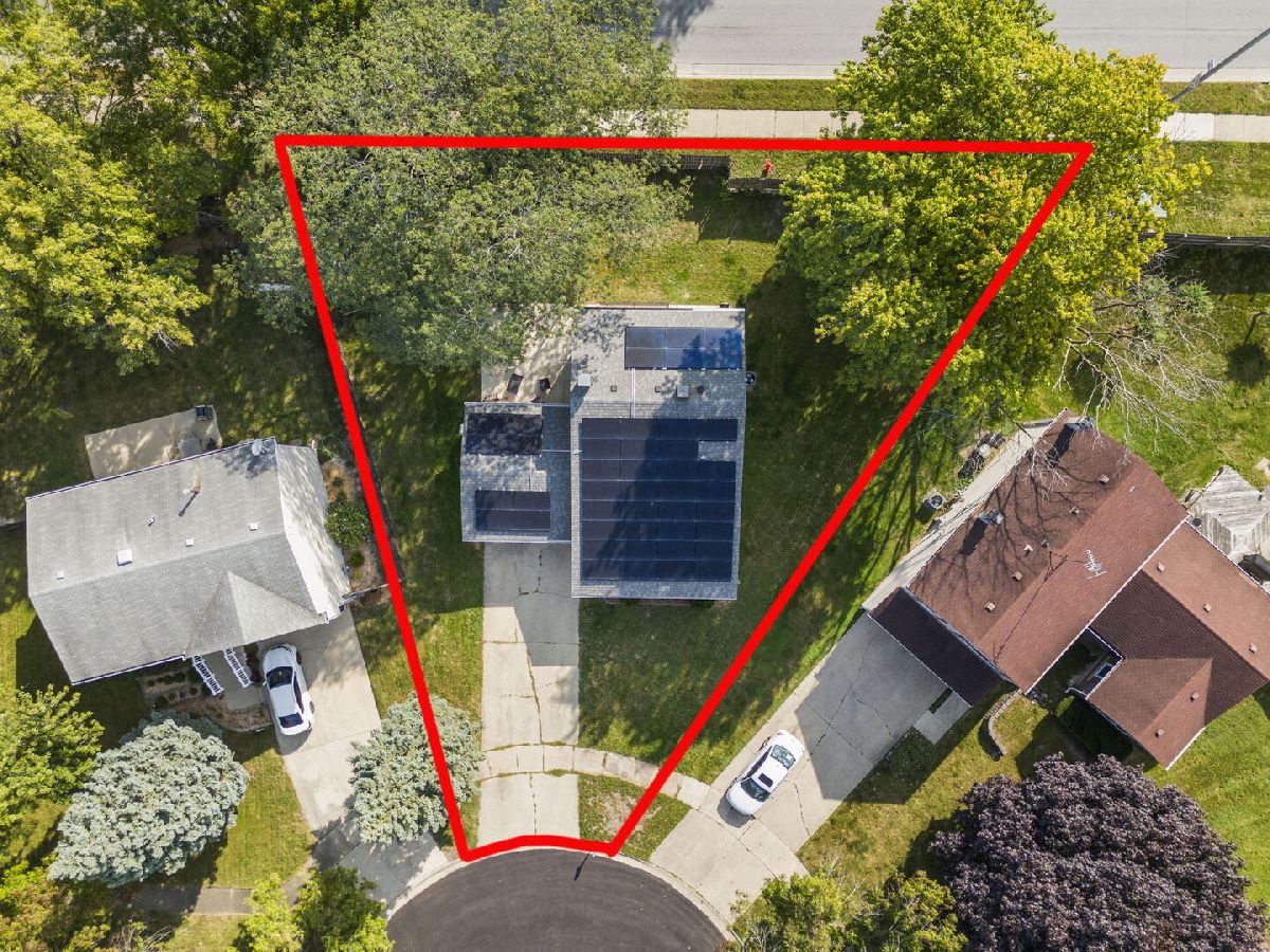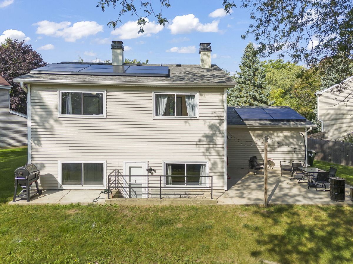 Move right in to this spacious 4 bed, 2 full bath home nestled on a peaceful cul-de-sac with so many updates. New roof and gutters (2020), new furnace and A/C (2023) including an AprilAire humidifier, new water heater (2016), new Samsung washer and dryer (2021), new refrigerator (2022) and new windows in living room (2019). Step inside the foyer and enjoy an open, light-filled floor plan designed for both everyday living and entertaining. The updated kitchen features granite countertops, stainless steel appliances and oak cabinetry and flows seamlessly into the dining area with vaulted ceilings. The spacious living room also boasts vaulted ceilings, creating an airy and inviting atmosphere. The lower level expands your living options with a primary bedroom offering a true retreat with a large walk-in closet and a fireplace. A full bath and a large laundry room with storage cabinets complete the lower level. The second floor includes three additional bedrooms and a second full bathroom providing ample space. Looking for a home of the future? Save money with solar! Plug in your electric vehicle for a quick charge on the EV charger and never lose power again with the solar battery backup system! The new solar panel system (2022) covers virtually the entire electric bill. The average monthly ComEd bill is $20. The driveway has parking for 4 cars. The large partially fenced yard has a large patio for entertaining and a very roomy shed WITH power... great for a workshop and storage. Located walking distance to Starbucks, a multitude of shopping, restaurants and Arrowhead Pond, this home combines convenience with comfort. Welcome Home!
