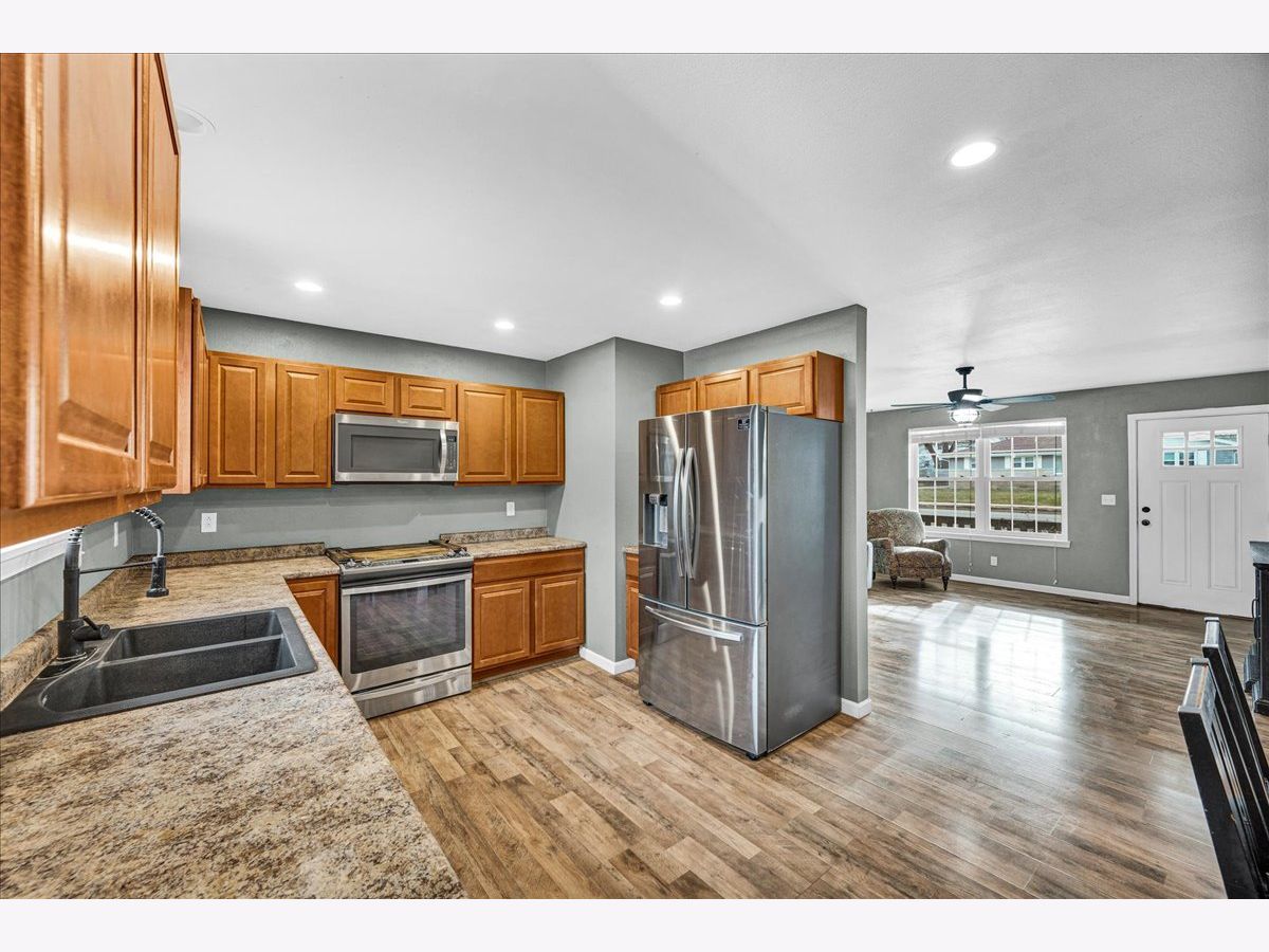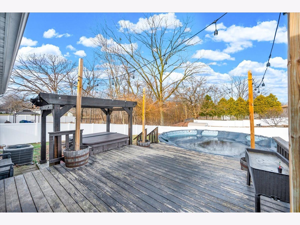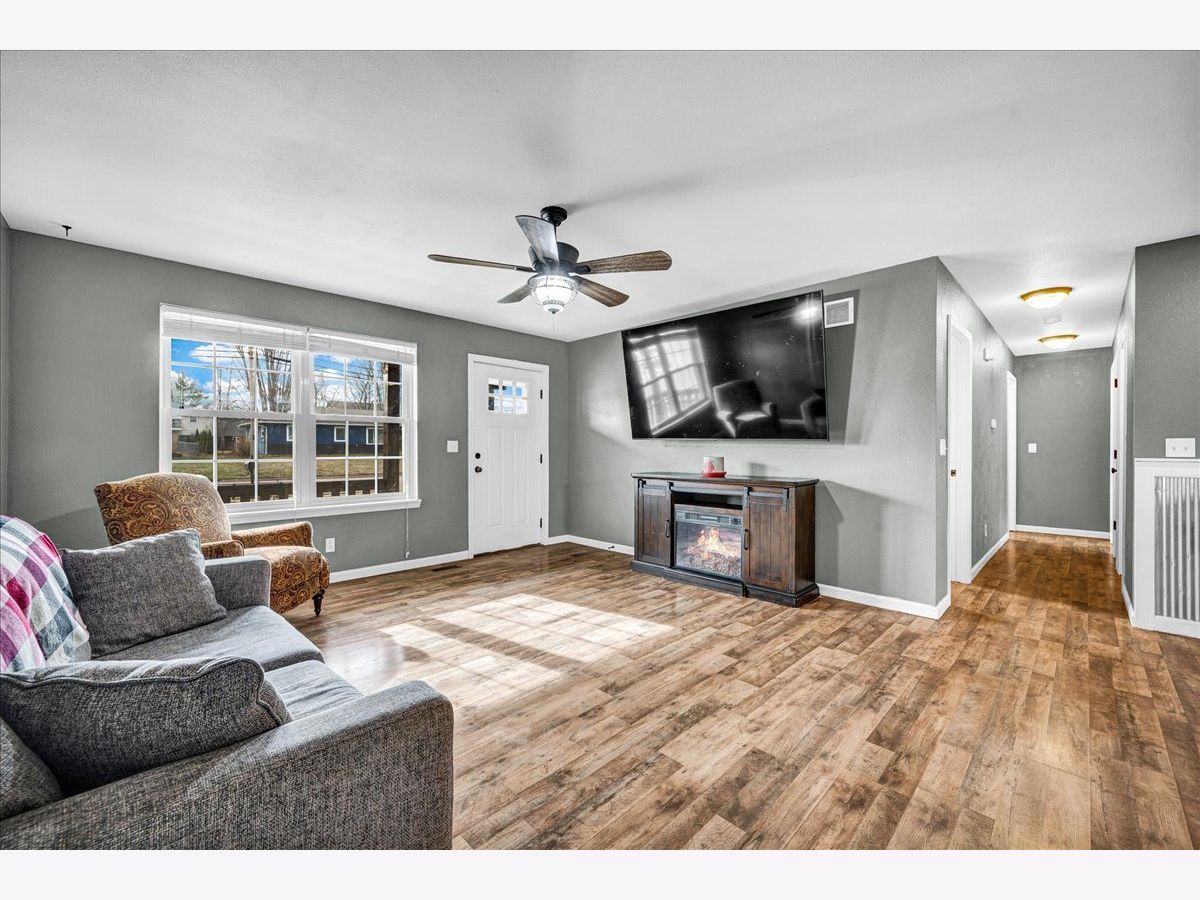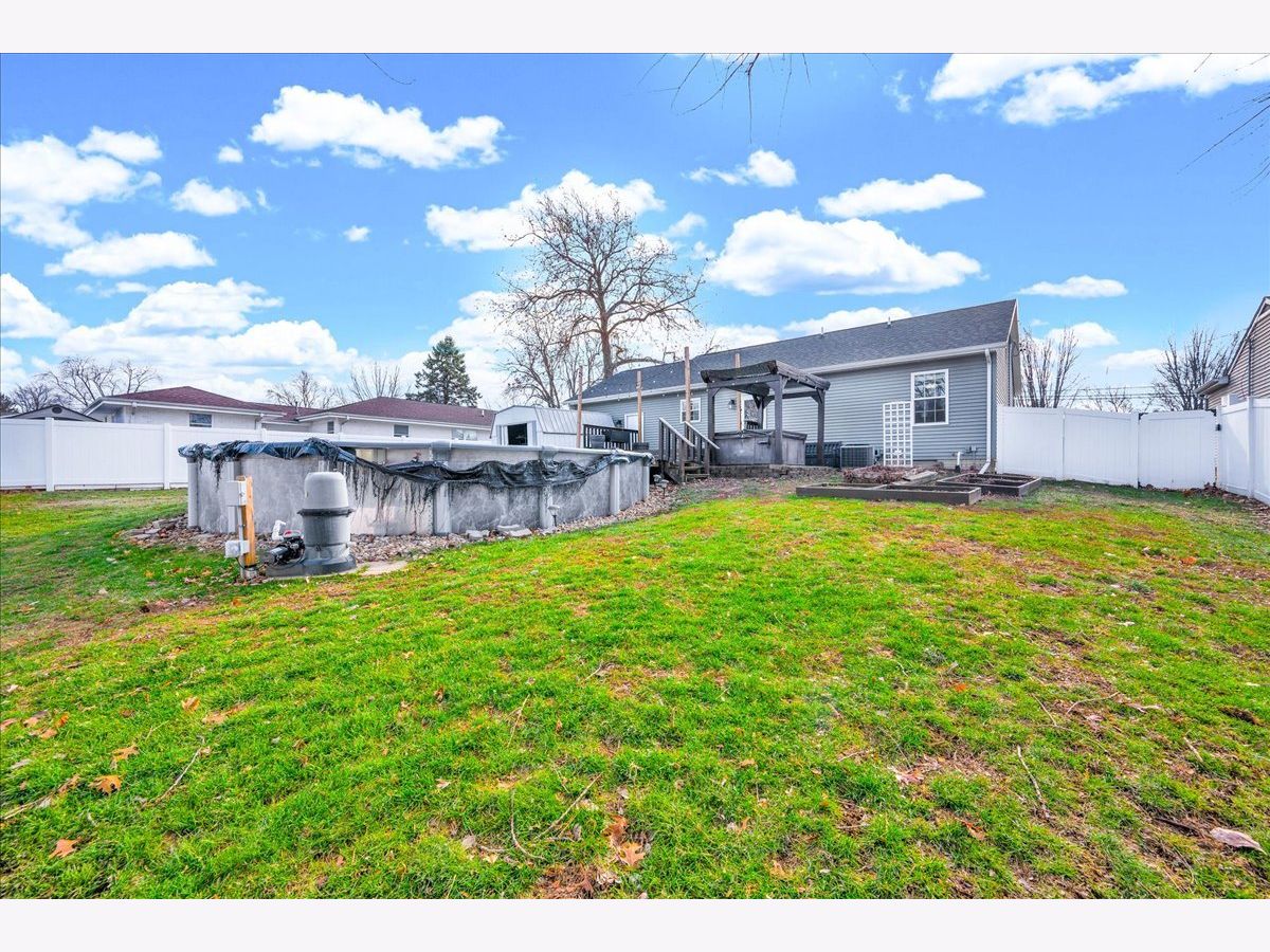 Step inside this beautifully maintained and thoughtfully improved home, offering flexible living space and true pride of ownership. The main level features three bedrooms and a full bathroom with updated flooring completed in 2018. The kitchen was updated in 2022 with a new sink and faucet, an added outlet for the garbage disposal and stainless steel kitchen appliances including the microwave, all of which remain with the home. Window blinds and ceiling fans throughout the home will stay and the mostly finished basement adds valuable living space and includes a custom theater room completed in 2018 featuring an InFocus projector, Bose Lifestyle surround sound system, built-in audio cabinet, and four reclining theater chairs, all of which will stay. A sliding door entry was added in 2018, along with a full basement bathroom and an additional room with an egress window, offering flexible use. Remaining building materials and tile intended to complete the basement will remain with the property. Additional mechanical and functional features include a sump pump with discharge system, sump pump equipment, a gas ventless wall heater, Bluetooth bathroom vent fan with touchscreen and the existing water heater. Outdoor upgrades include an above-ground pool installed in 2021 with timer and disconnect breaker, along with pool accessories including ladder, filter and select chemicals that will remain. The deck was built in 2019 and are complemented by a pergola and hot tub. The backyard also features a metal shed that will stay, raised garden beds with an established strawberry bed, and rose bushes in the front yard. A six-foot vinyl privacy fence with both double and single gates enhances privacy and functionality. The driveway was widened by three feet in 2020. The garage offers a built-in workbench, built-in shelving, loft storage, gas heater, garage door opener with transmitters and includes a snow blower that will remain with the property, along with a 65-inch television with mounting brackets and hardware. This well cared for home blends functional living space, entertainment features and outdoor amenities, making it ideal for enjoying evenings on the welcoming front porch and summer BBQs on the back deck!
