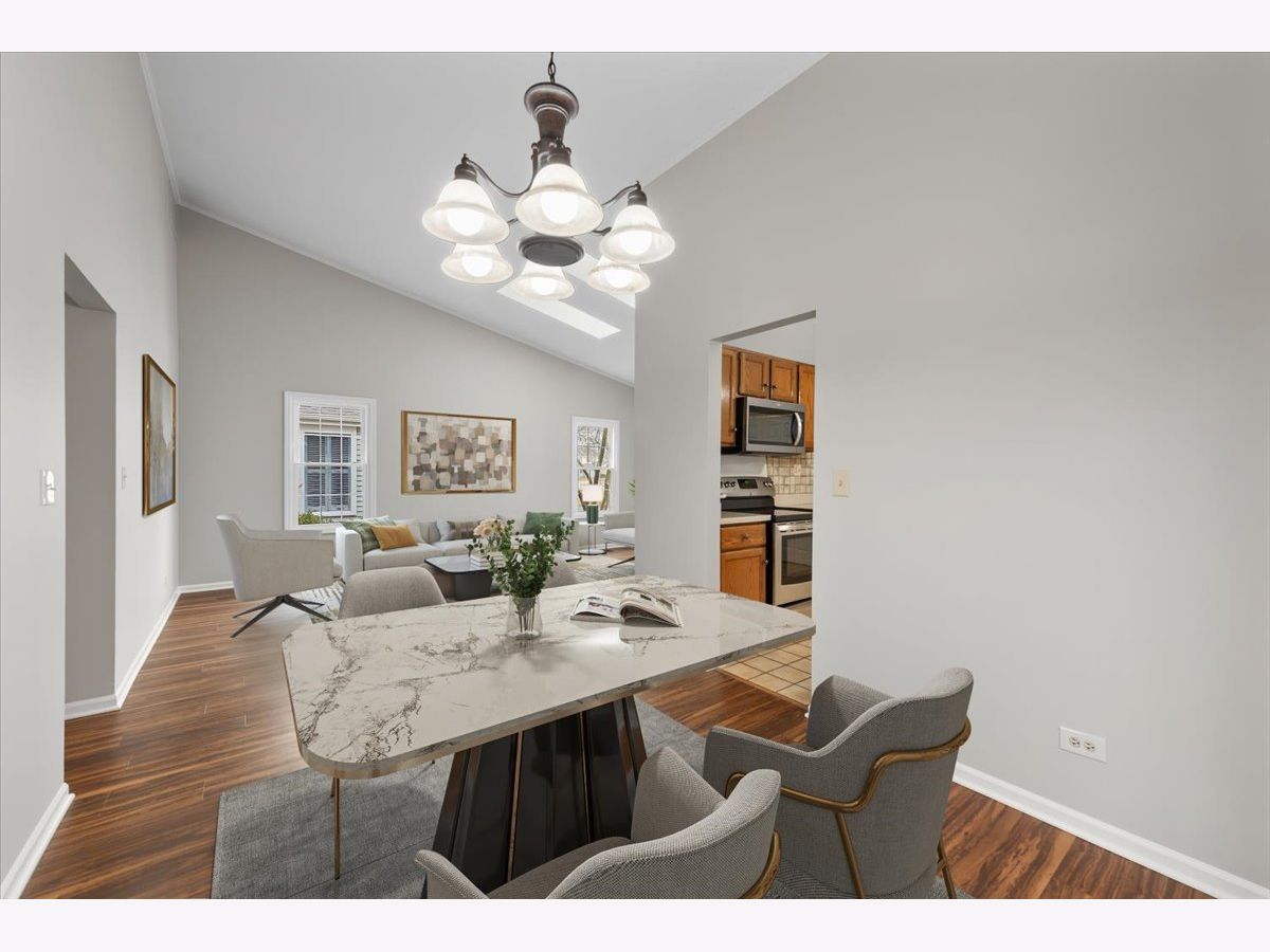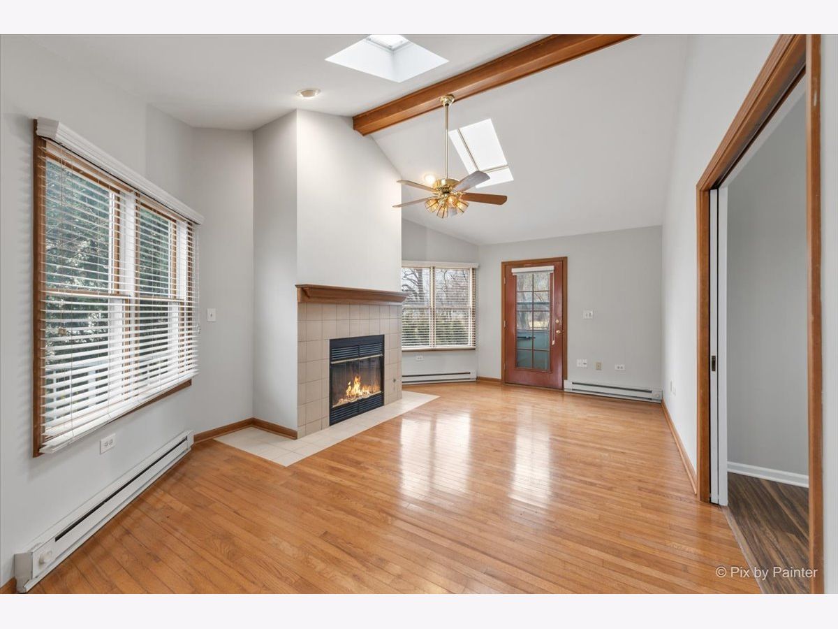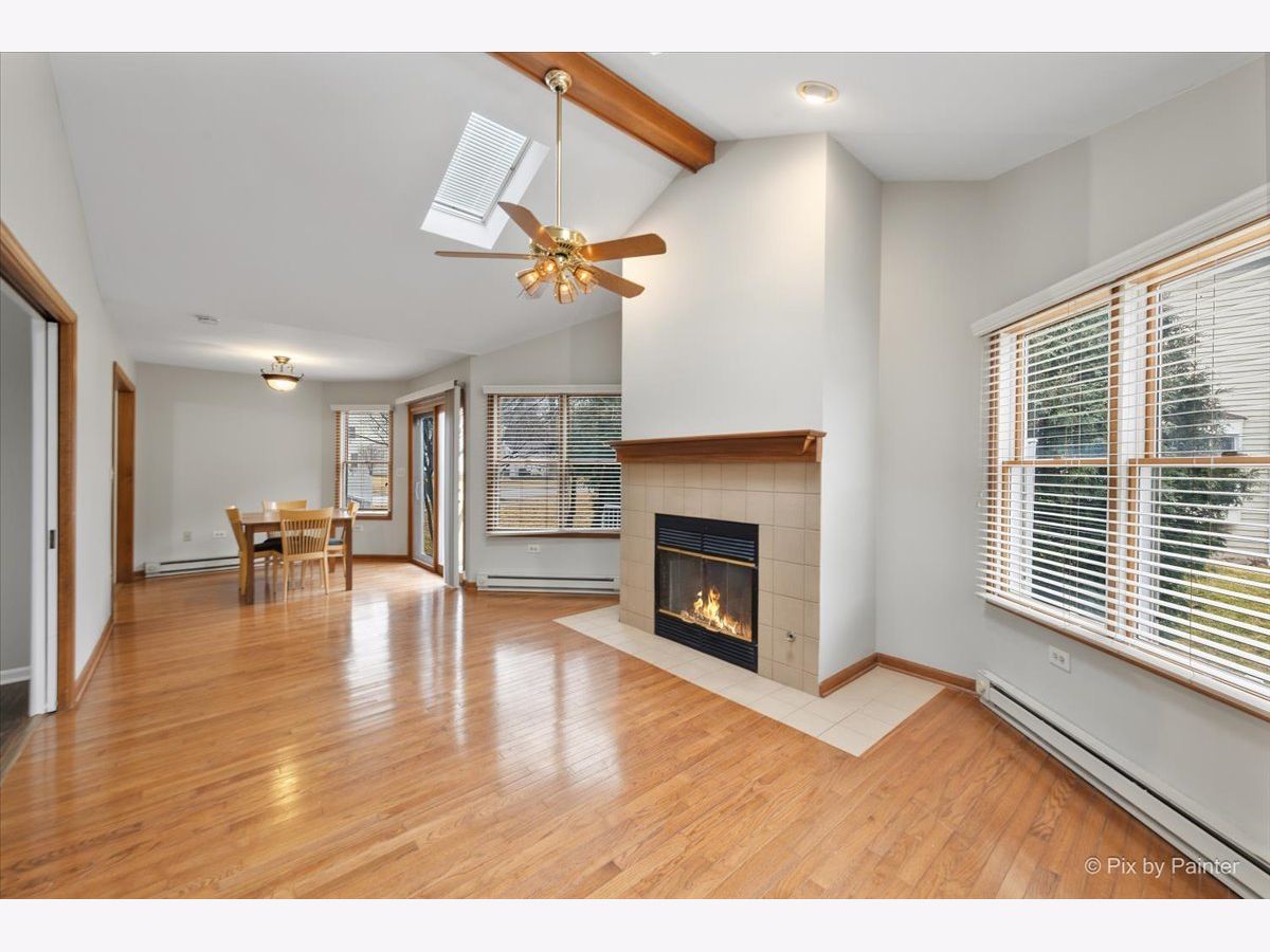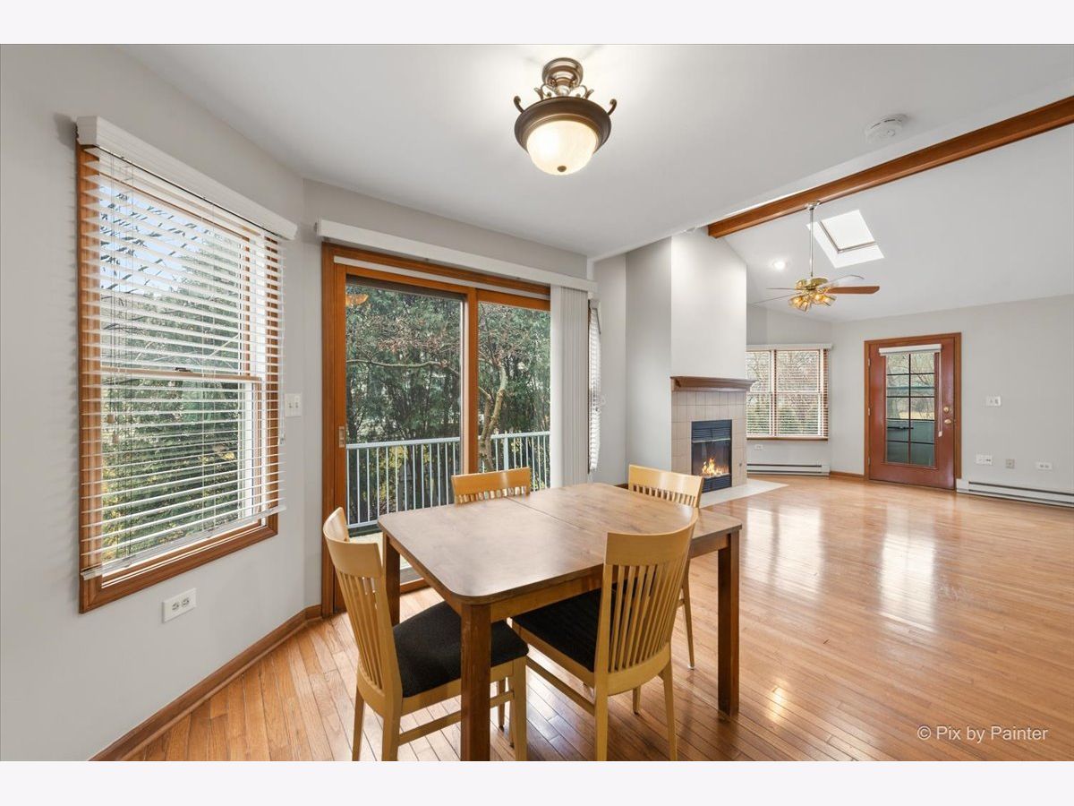 This ranch townhome is the one you've been waiting for! Minutes away from downtown Naperville, train, Centennial Beach, the Naperville riverwalk, excellent shops and the best restaurants. Almost 1500 sq. ft of living space including a large living room off of the entrance. Next, step back to a nice size eat-in kitchen with a convenient laundry closet and all appliances are included. Just outside of the kitchen is a cozy dining room area with a separate entrance to a small deck. There is a vaulted family room with a brick fireplace with gas logs, skylights. lots of windows with natural light and an entrance to the back patio. There are 2 generous sized bedrooms with a primary bathroom and a walk-in closet. The 2-car garage currently has a large pantry/storage room in 1 of the spaces and can easily be converted back for the next owner. The yard is very private and full of mature trees and landscaping. This home has been very well maintained and is in great condition! Hurry!