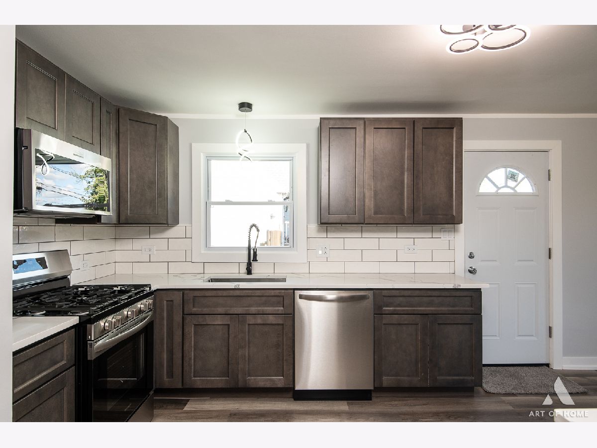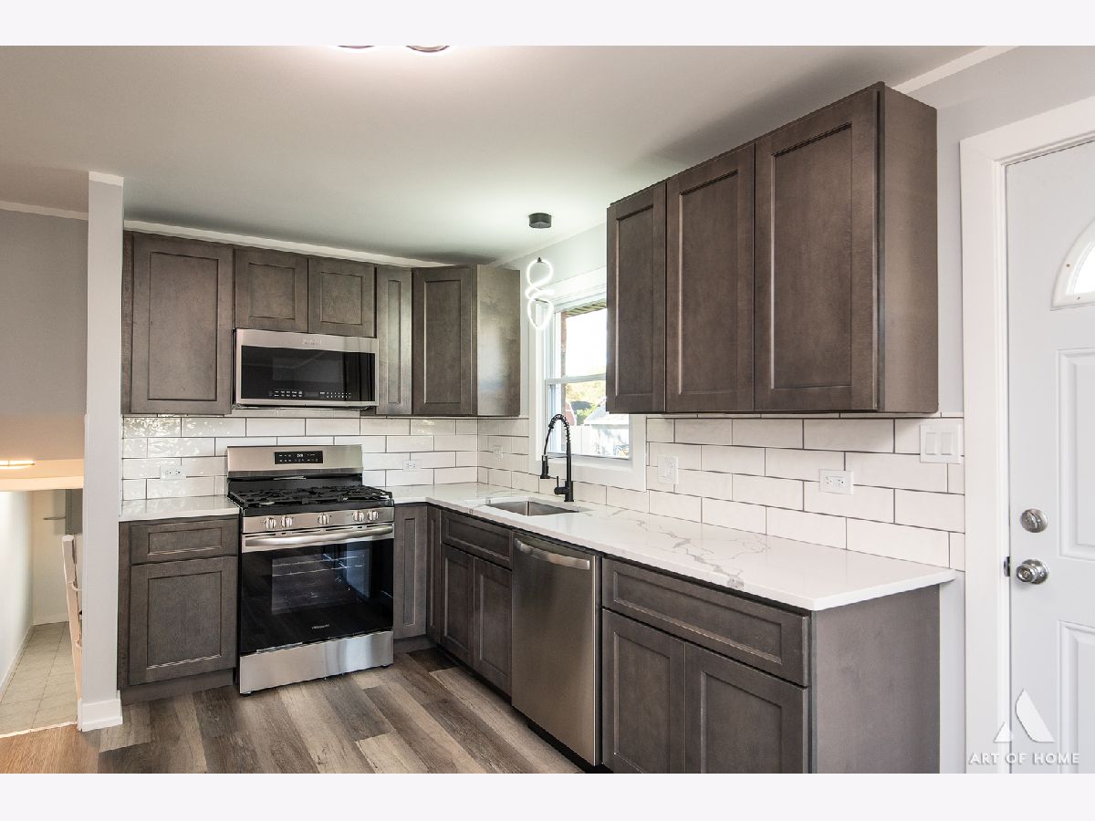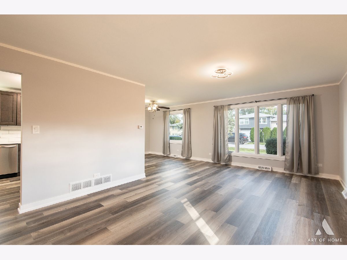 Welcome to this amazing, fully renovated, split level home with 1,700 sq ft of living space with 3 bedrooms, 2.5 bathrooms, and a 2 car detached garage with an oversized driveway located in the hearth of Worth. Main level presents a large living room, cozy dining room, and a great kitchen with gray shaker cabinets, quartz countertops, ceramic backsplash, and stainless steel appliances. Upper level offers private master suite with a gorgeous full bathroom and a spacious closet, 2 good sized bedrooms, and another beautiful full bathroom. Lower level features an enormous family room, half bath, and a laundry room. It has elegant light fixtures and wood laminate floors throughout. Large backyard offers a stained wooden deck that is perfect for entertaining guests. It also has a new plumbing, new electrical system, new A/C, new water heater, new windows, new siding, new fascia, newer furnace, and newer roof. All renovations completed with permits and Village of Worth requirements. Conveniently located near I-294, Metra station, schools, parks, shops, restaurants, and entertainment. Schedule your showing today before it's gone!