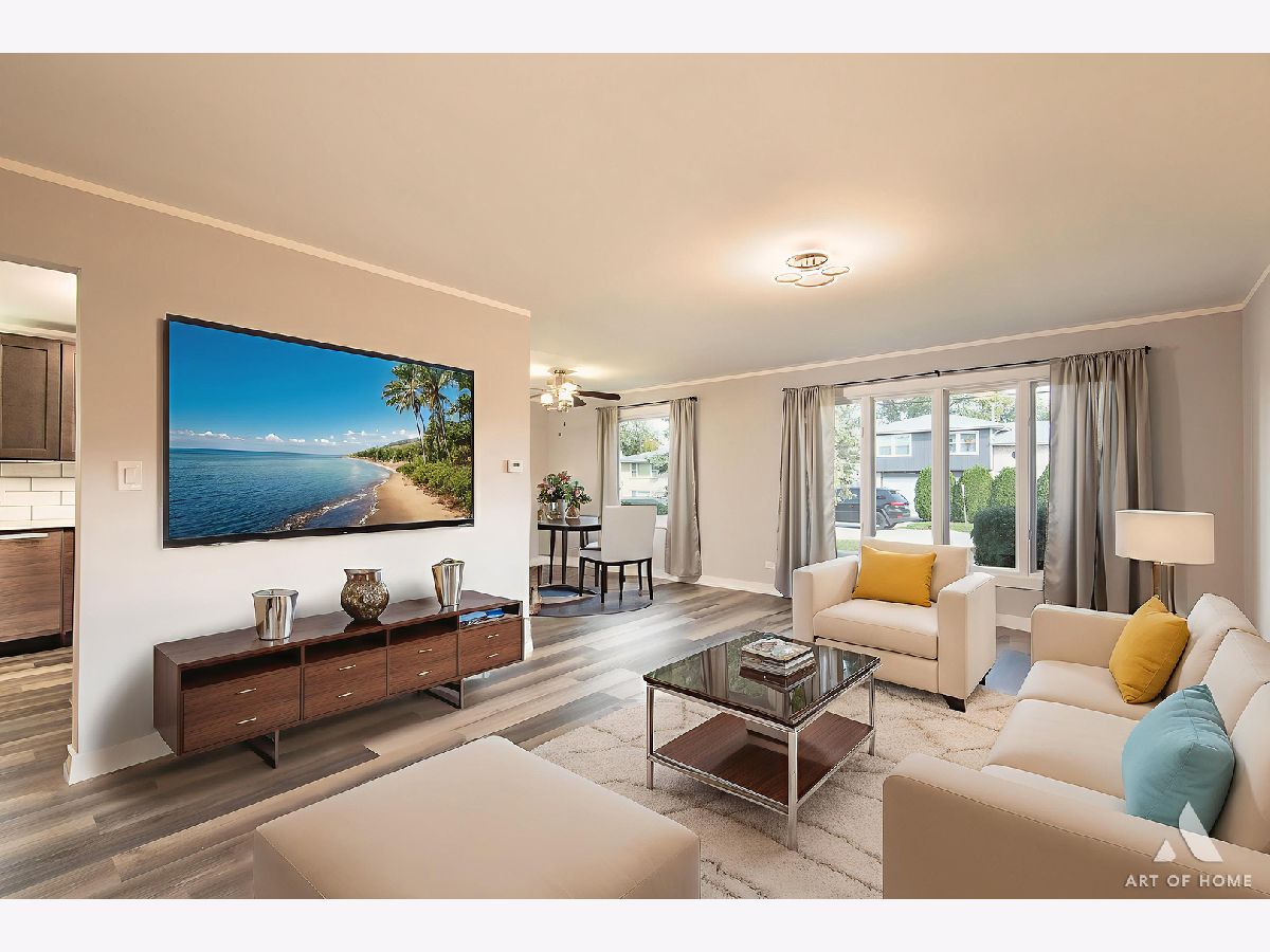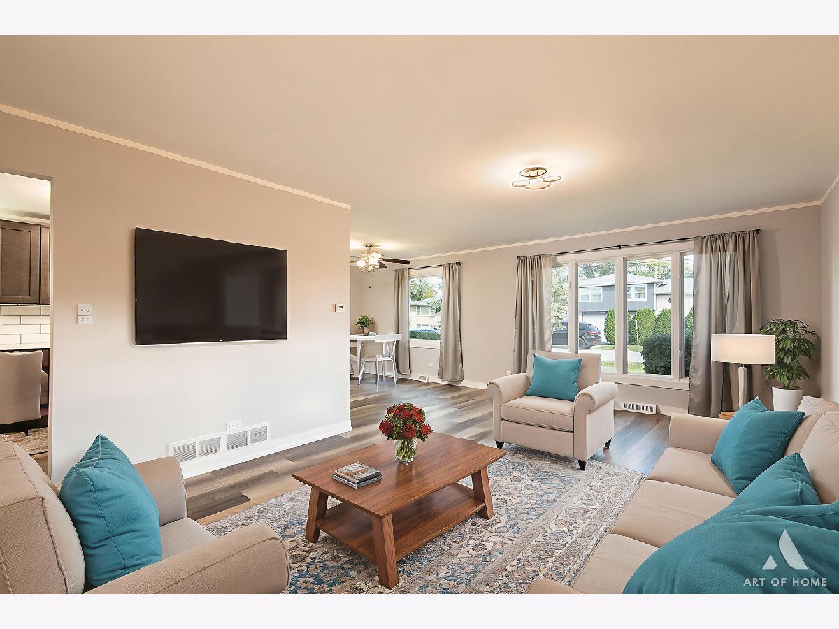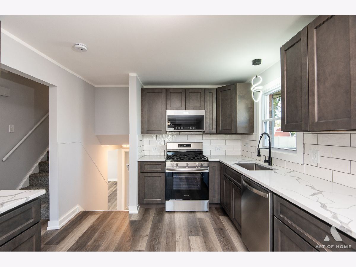 Welcome to this amazing, fully renovated, split level home with 1,700 sq ft of living space with 3 bedrooms, 2.5 bathrooms, and a 2 car detached garage with an oversized driveway located in the hearth of Worth. Main level presents a large living room, cozy dining room, and a great kitchen with gray shaker cabinets, quartz countertops, ceramic backsplash, and stainless steel appliances. Upper level offers private master suite with a gorgeous full bathroom and a spacious closet, 2 good sized bedrooms, and another beautiful full bathroom. Lower level features an enormous family room, half bath, and a laundry room. It has elegant light fixtures and wood laminate floors throughout. Large backyard offers a stained wooden deck that is perfect for entertaining guests. It also has a new plumbing, new electrical system, new A/C, new water heater, new windows, new siding, new fascia, newer furnace, and newer roof. All renovations completed with permits and Village of Worth requirements. Conveniently located near I-294, Metra station, schools, parks, shops, restaurants, and entertainment. Schedule your showing today before it's gone!