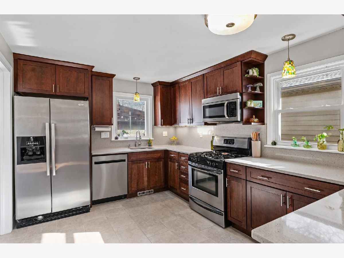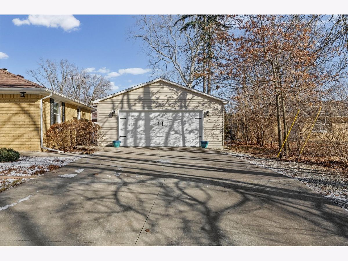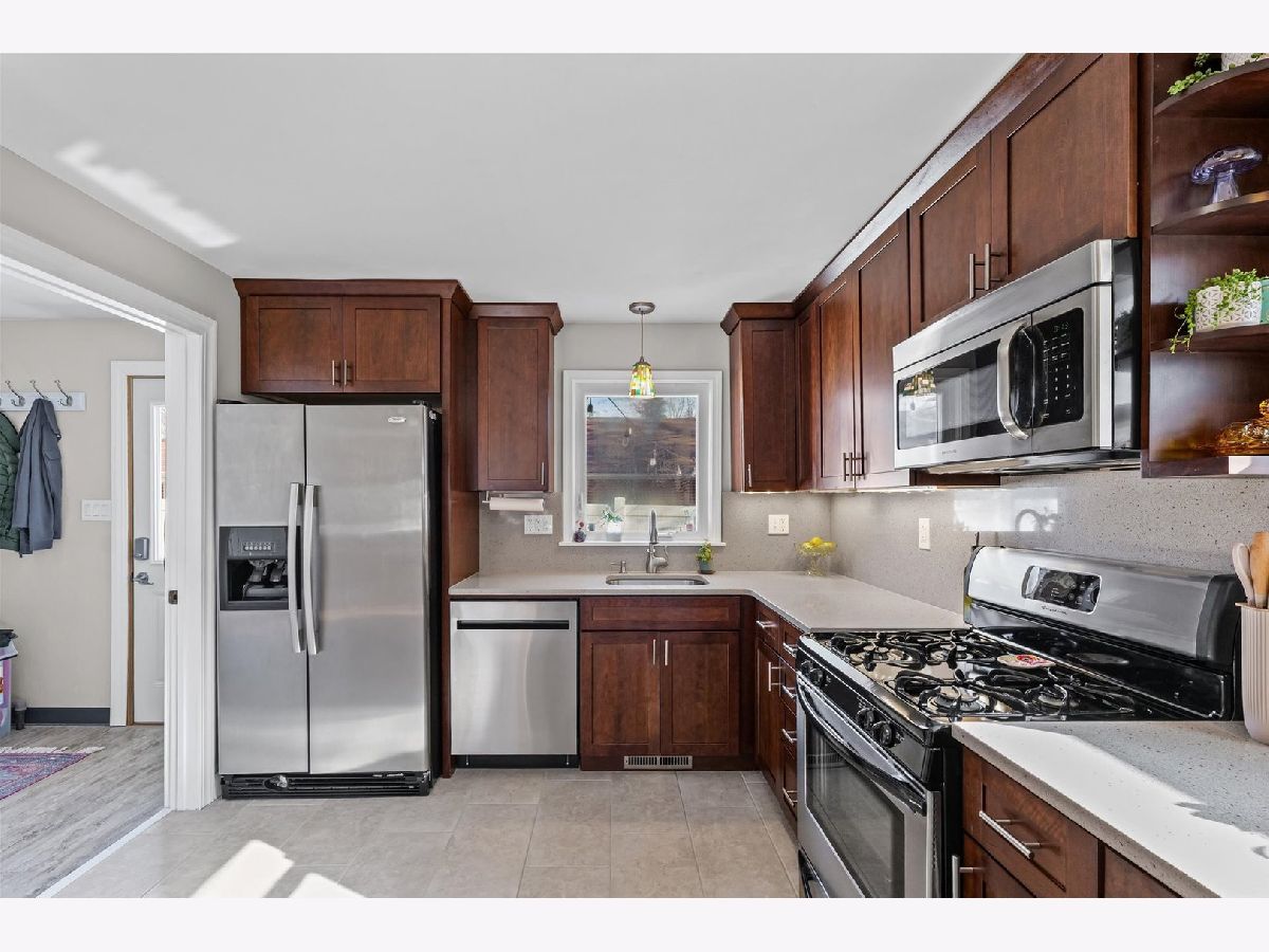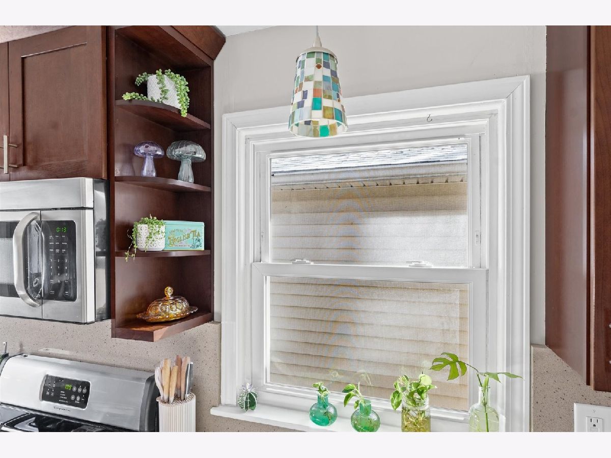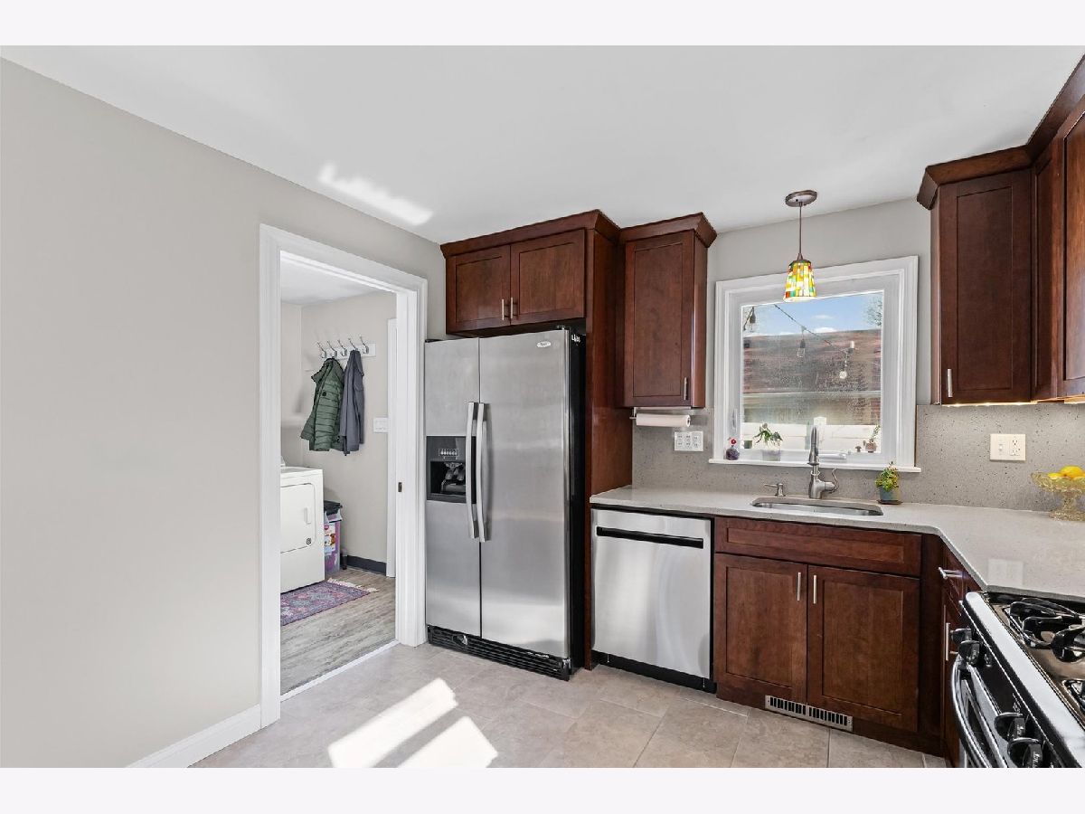 Tucked away on a quiet cul-de-sac, this 3-bedroom, 1-bath all-brick ranch blends charm with thoughtful updates throughout. Hardwood floors span the living room, dining area, and all bedrooms, creating a warm and cohesive feel. Large windows bring in excellent natural light. while custom Hunter Douglas blinds in the living room and front bedroom add a refined finishing touch. The inviting kitchen features quartz countertops, ceiling-height cabinetry, and stainless steel appliances, with flexibility to add an island if desired. Just off the kitchen, a dedicated laundry and mechanical room adds convenience without sacrificing storage. The furnace and water heater were installed in 2018 and air conditioning replaced in 2021, providing peace of mind for the next owner. Outside, the fully fenced, low-maintenance yard includes a spacious patio and sidewalk added in 2021, perfect for outdoor enjoyment with minimal upkeep. A large detached two-car garage offers extra storage and everyday convenience. From the mature trees and charming curb appeal to the warm, move-in-ready interior, this home has been thoughtfully maintained and is ready to welcome its next owners.