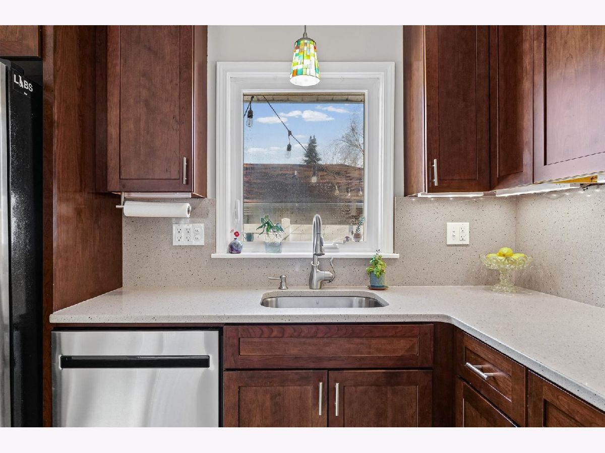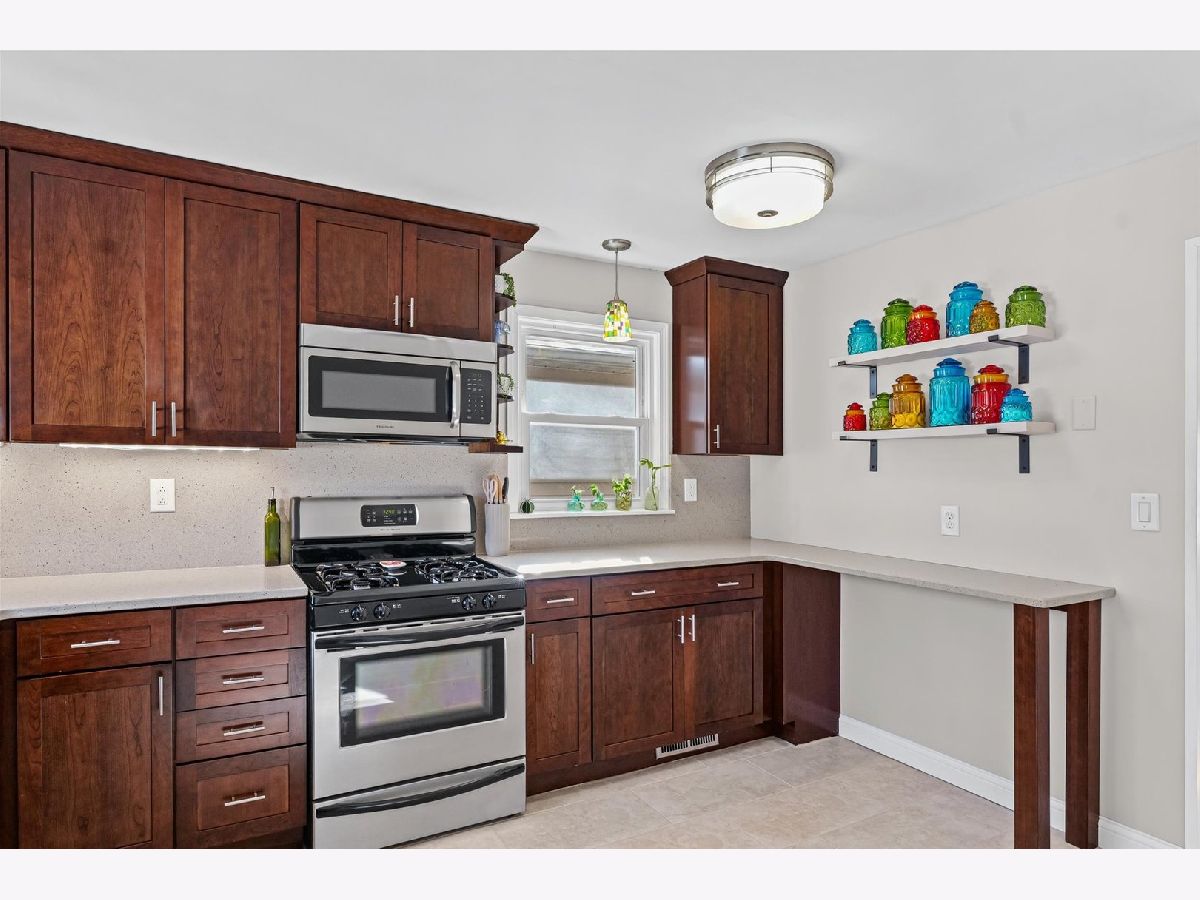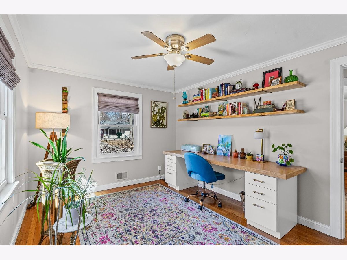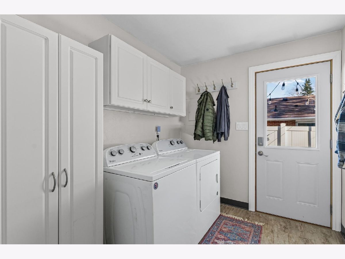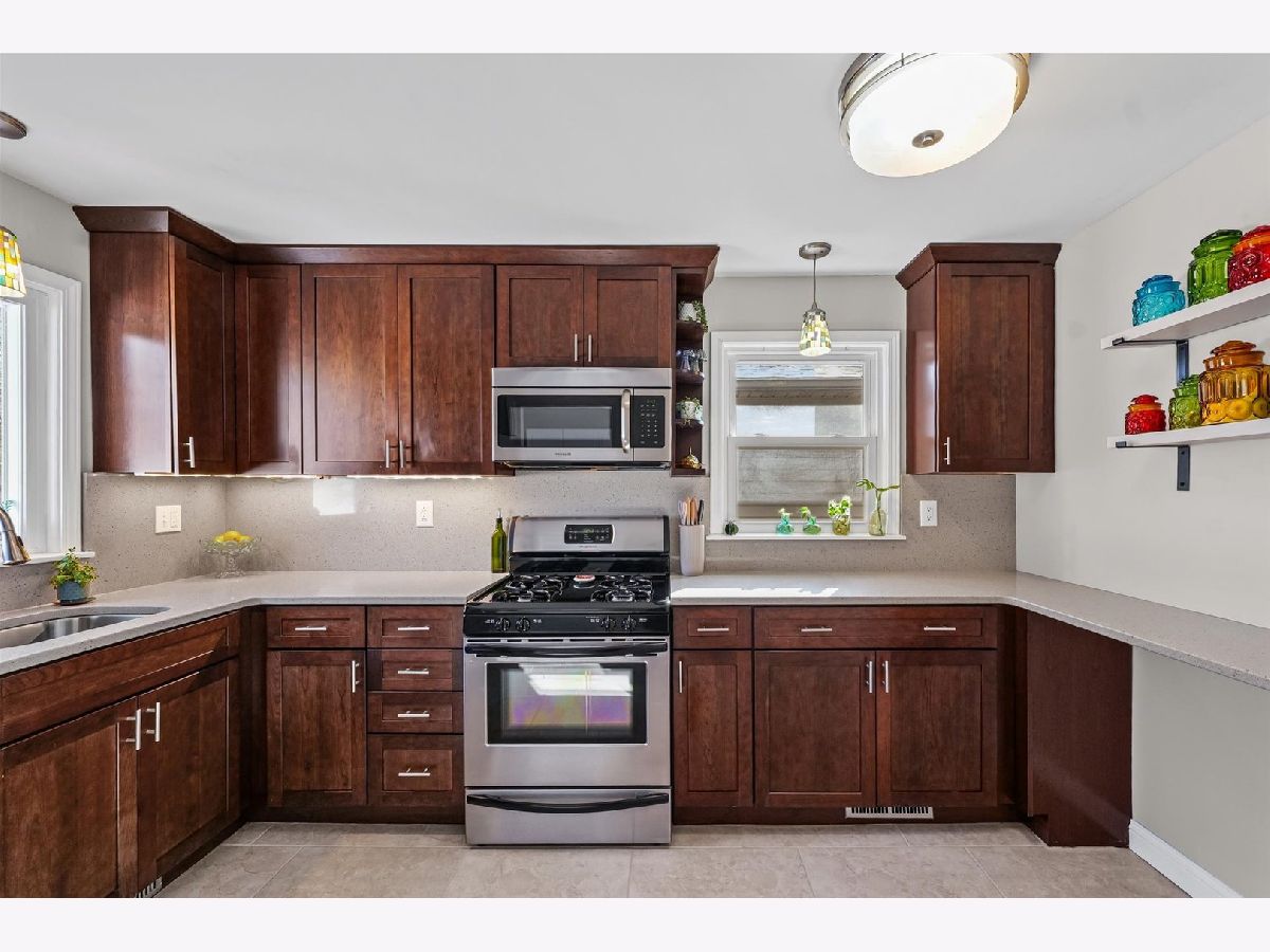 Tucked away on a quiet cul-de-sac, this 3-bedroom, 1-bath all-brick ranch blends charm with thoughtful updates throughout. Hardwood floors span the living room, dining area, and all bedrooms, creating a warm and cohesive feel. Large windows bring in excellent natural light. while custom Hunter Douglas blinds in the living room and front bedroom add a refined finishing touch. The inviting kitchen features quartz countertops, ceiling-height cabinetry, and stainless steel appliances, with flexibility to add an island if desired. Just off the kitchen, a dedicated laundry and mechanical room adds convenience without sacrificing storage. The furnace and water heater were installed in 2018 and air conditioning replaced in 2021, providing peace of mind for the next owner. Outside, the fully fenced, low-maintenance yard includes a spacious patio and sidewalk added in 2021, perfect for outdoor enjoyment with minimal upkeep. A large detached two-car garage offers extra storage and everyday convenience. From the mature trees and charming curb appeal to the warm, move-in-ready interior, this home has been thoughtfully maintained and is ready to welcome its next owners.