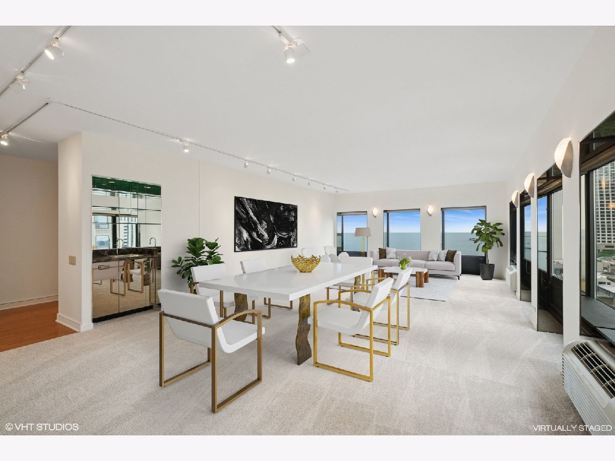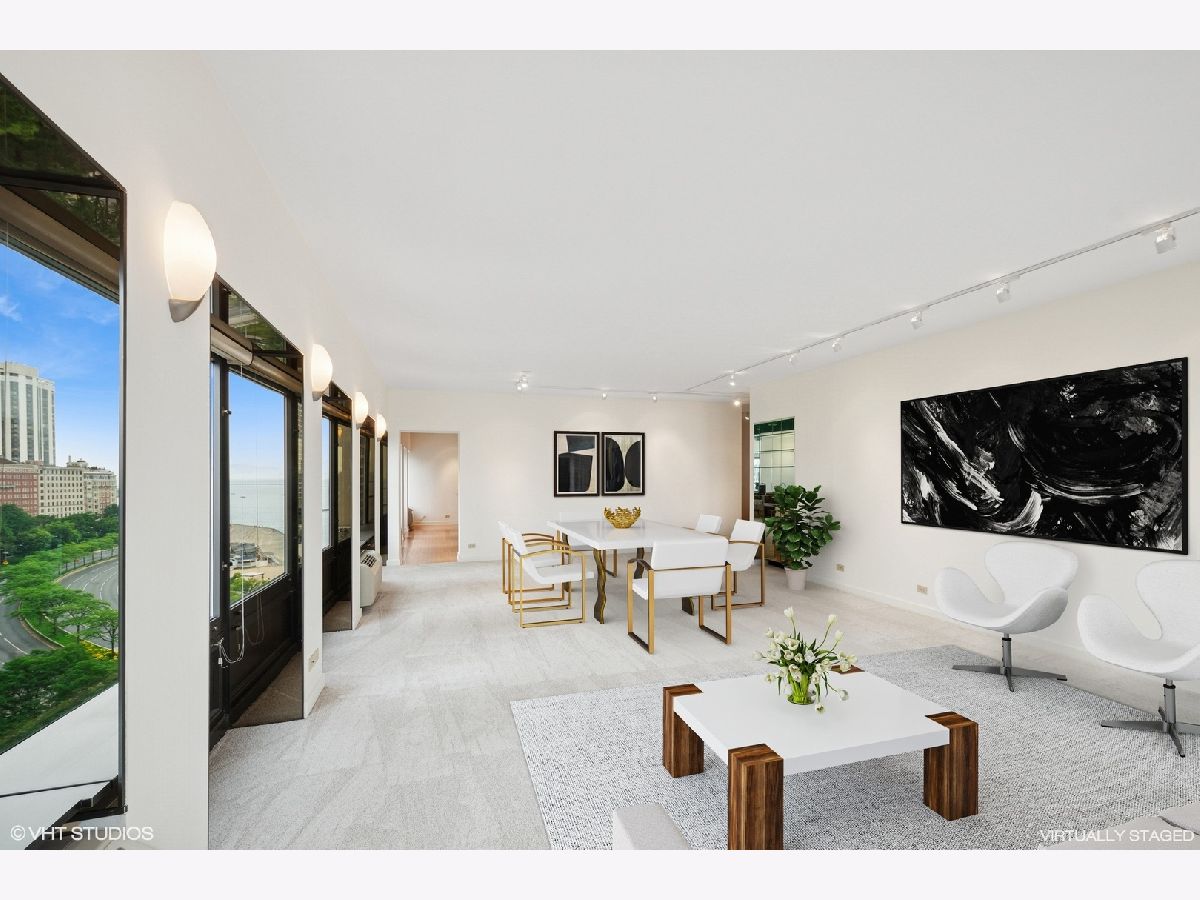 Having it all is possible...spacious rooms, breathtaking east and south views, abundant storage and premium location all in one package! Phenomenal corner unit with 17 windows that overlook the beach and lake plus park and city views to the south. Freshly painted throughout and new carpet installed in areas that do not feature hardwood floors. The gallery styled foyer is perfect for displaying treasured art pieces and leads to the generously sized living/dining room with wet bar. The kitchen was renovated to maximize space including opening up the 3rd bedroom to create a den space off of the kitchen. The primary bedroom has endless closet space with a wall of closets plus a walk in! The primary bath was reconfigured to feature a large shower with built-in seat and an abundant amount of storage space! The hall bath was redone in neutral tones and again storage was taken into consideration so that every nook is usable! The convenient in-unit laundry room was created from what was originally the 1/2 bath and can be converted back if one desires. Closet space is more than plentiful with 38 linear feet and all done with organizers! This is an amazing unit in a well run full service building with door person, on site manager and engineer plus fitness room, party room, sundeck and garage parking that is also available for guests. The location is excellent for day to day living with shopping, dining and world renowned health care at your doorstep, and of course the stunning lake and park!