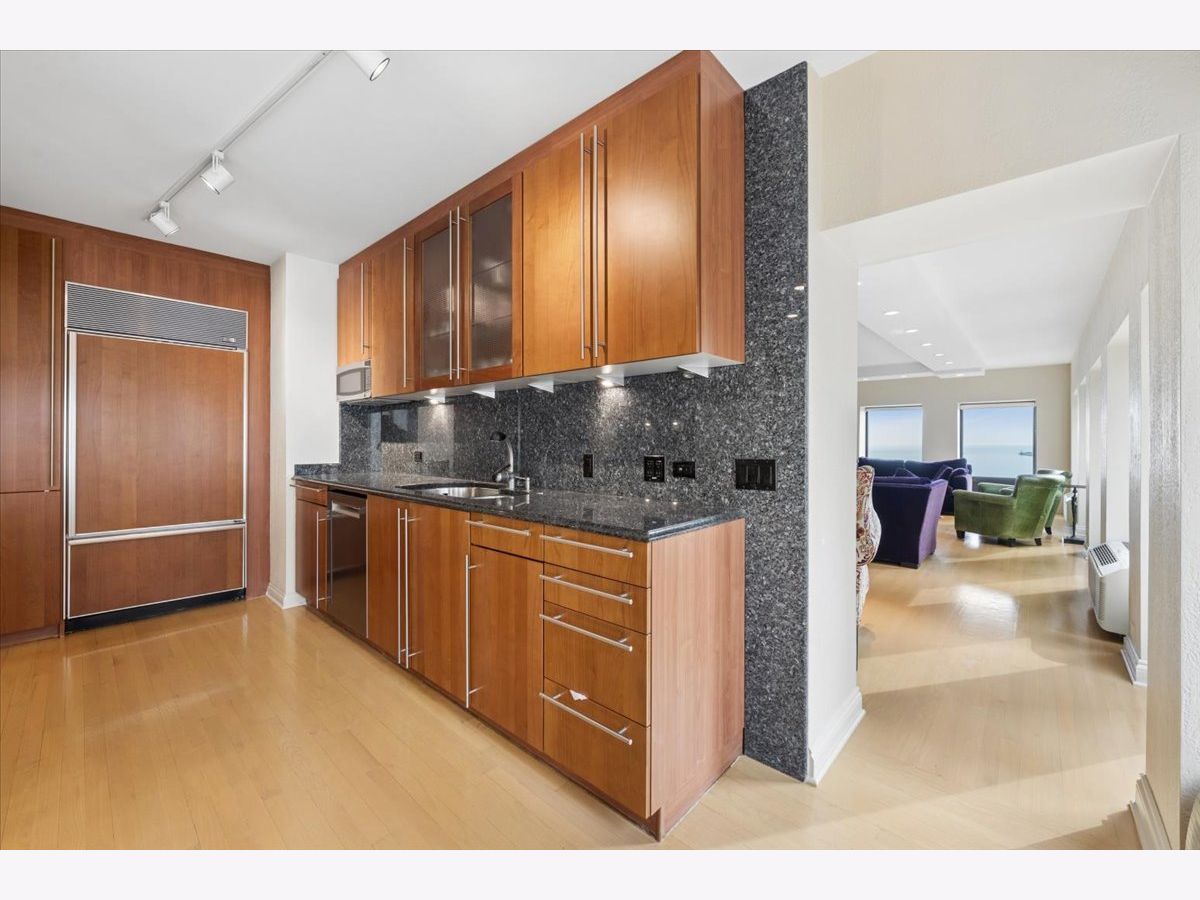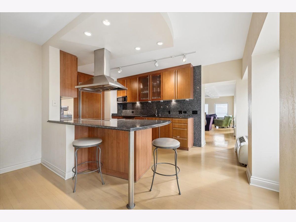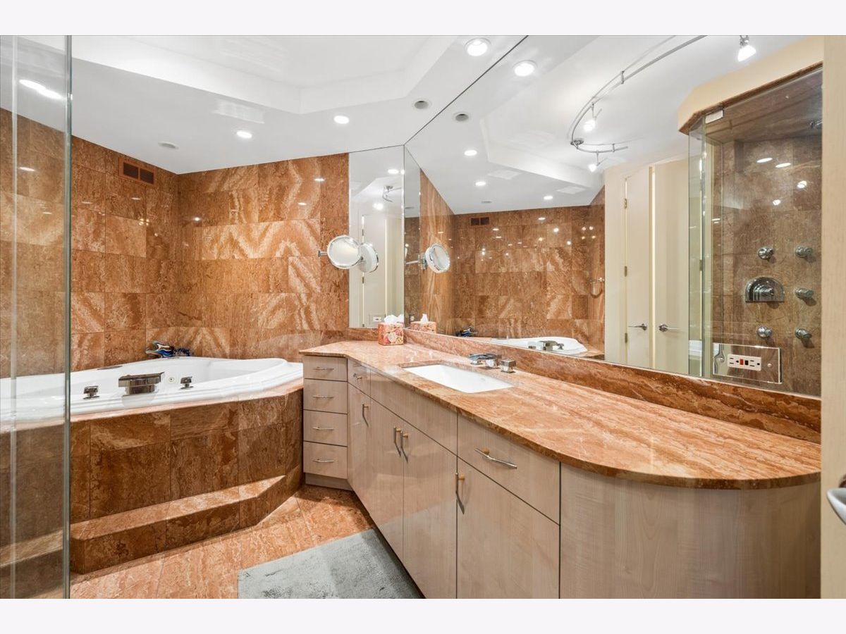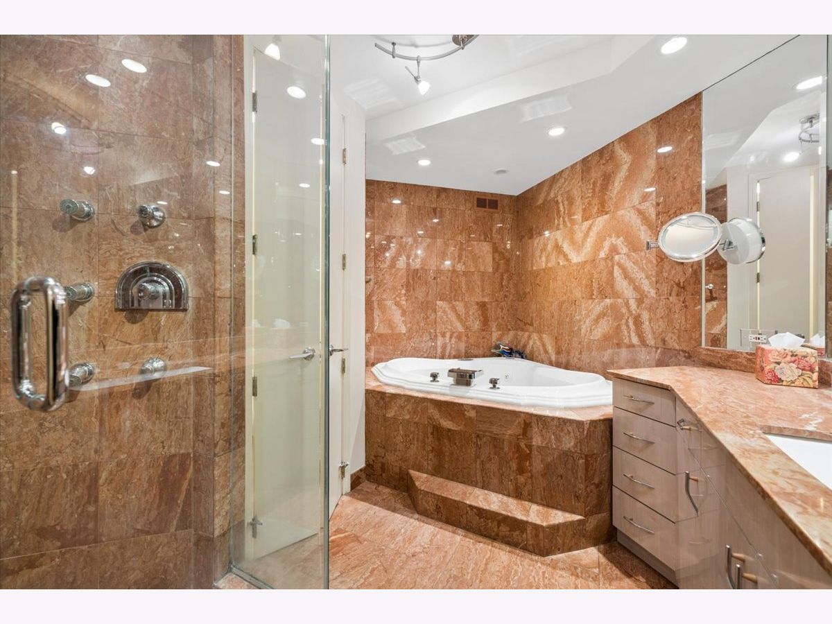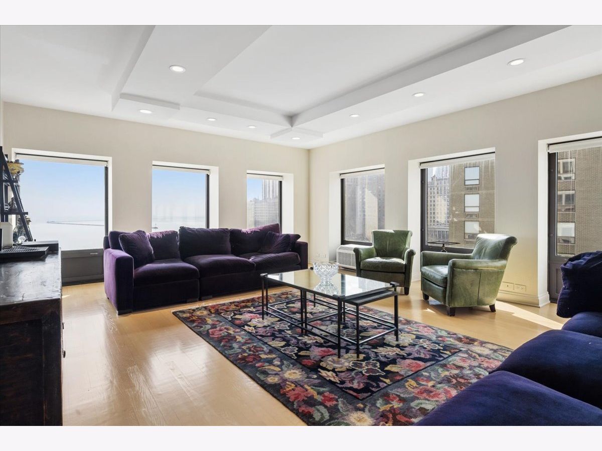 This 2 bedroom, 2.1 bathroom residence in one of Gold Coast's most iconic Lake Shore Drive high rises, boasts a full lakefront view, expansive windows, and SE exposure for a sunny, spacious residence. The large living room has hardwood floors, a roomy layout, and added modern recessed lighting. The kitchen is stylish and updated, and connects seamlessly to the designated dining room. Continue down the hall to the second bedroom, full bathroom, or half bathroom featuring a hidden laundry room. The primary bedroom sits at the back of the apartment, for added privacy and space. Enjoy the large closet, city views, and massive bathroom with a soaker tub, toilet closet, and standing shower. All bathrooms feature heated floors. The building has a gym, shared patio, and 24 hour doorman. Valet parking is available in the building for $250 a month per car.