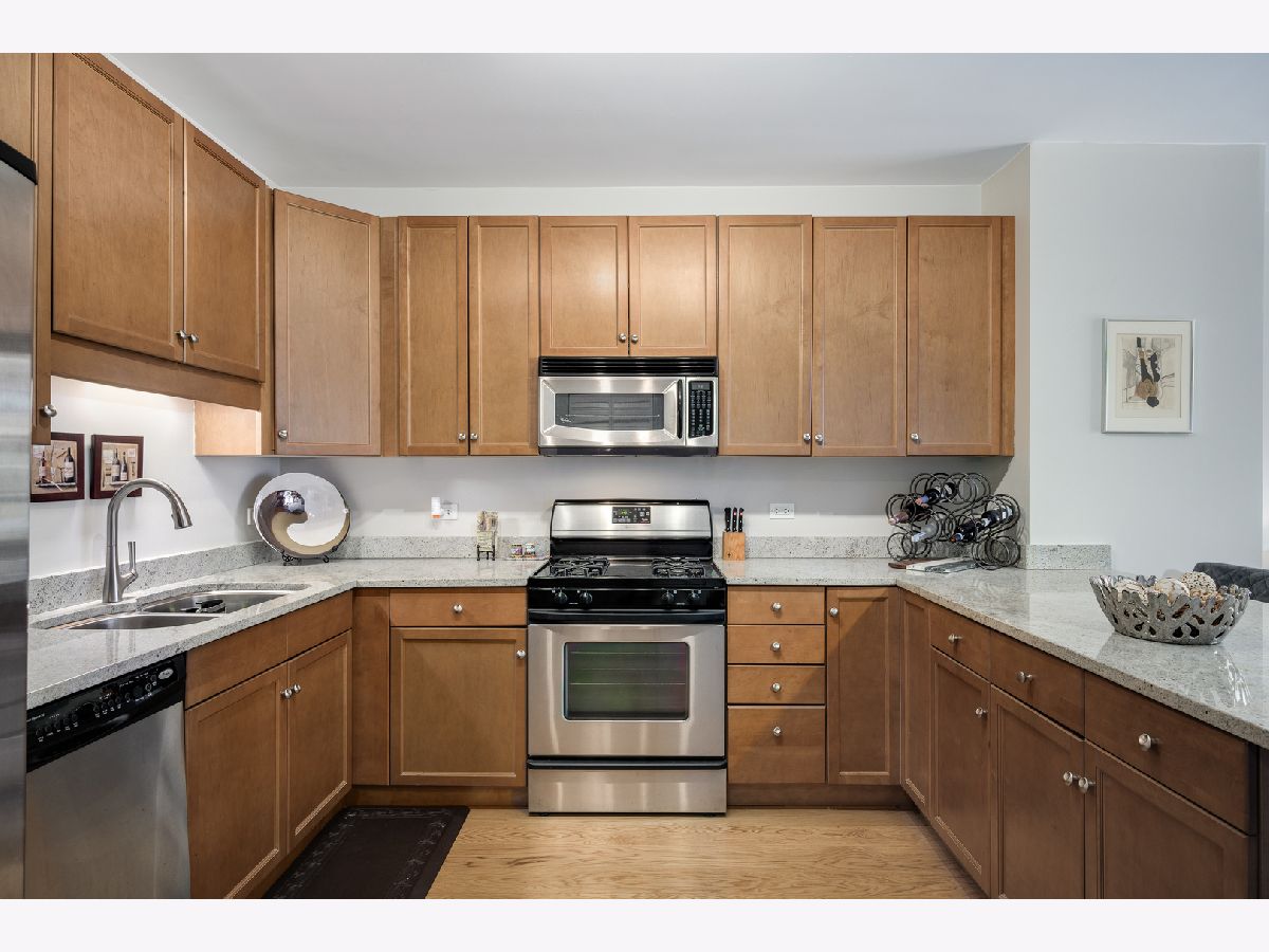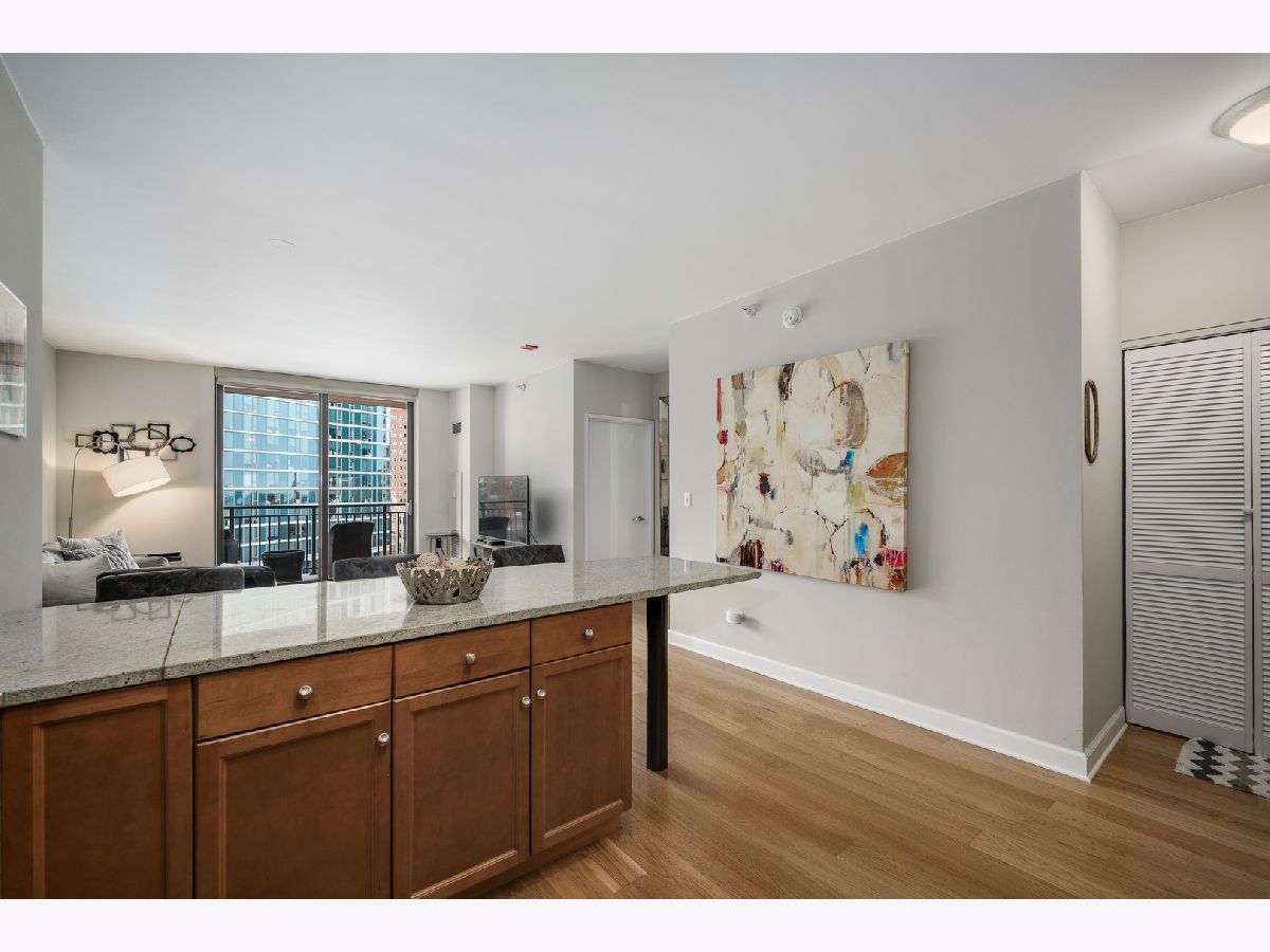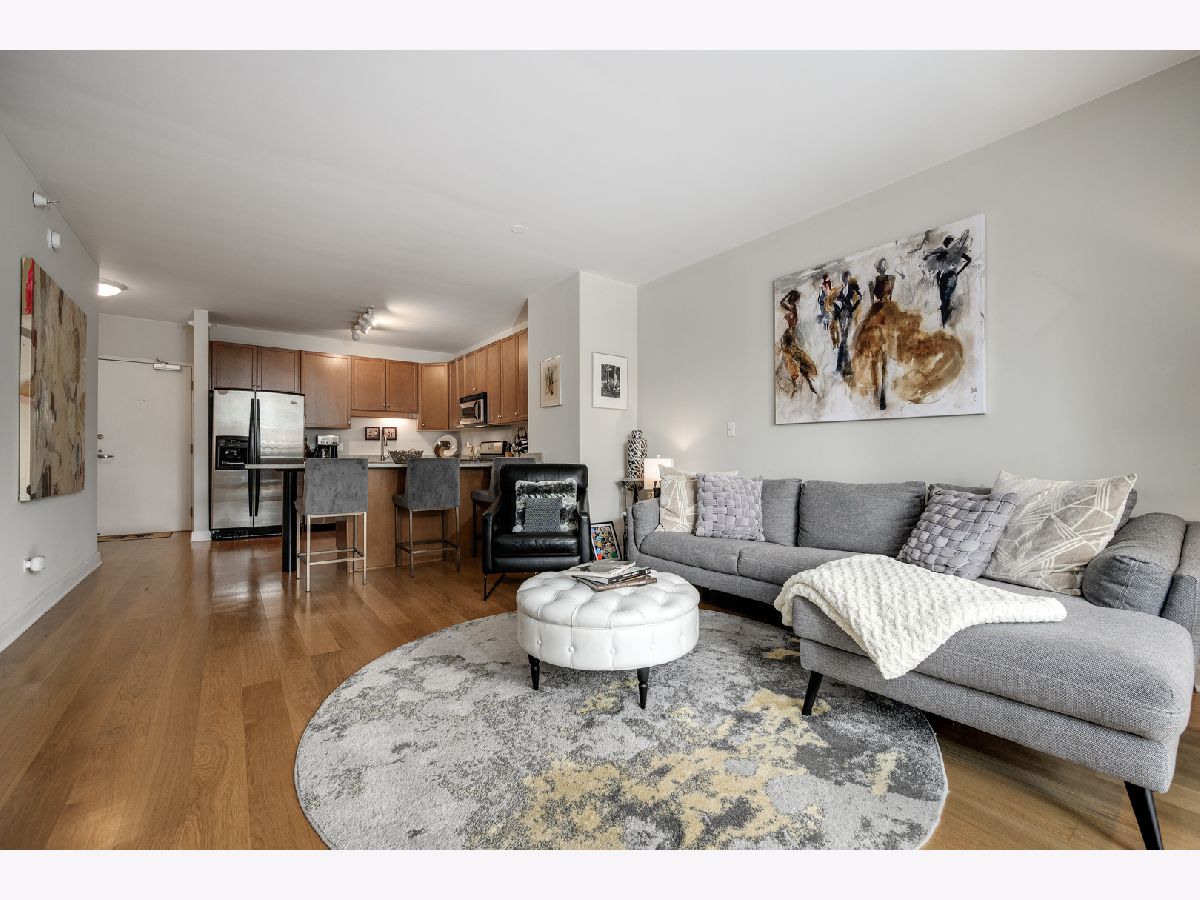 Welcome home to this well maintained spacious 1 bed with outdoor space and parking! Ideal South Loop location near transportation, shopping, restaurants and the lake. Unit features granite countertops, 42 inch cabinets, natural oak wood floors, SS appliances, floor to ceiling windows, walk in-closet with the Elfa system, in unit W/D and a large, motorized blinds in the bedroom and private balcony. The building offers 24 hour door staff, pool and sundeck with heat, AC, cable and internet included in association dues.