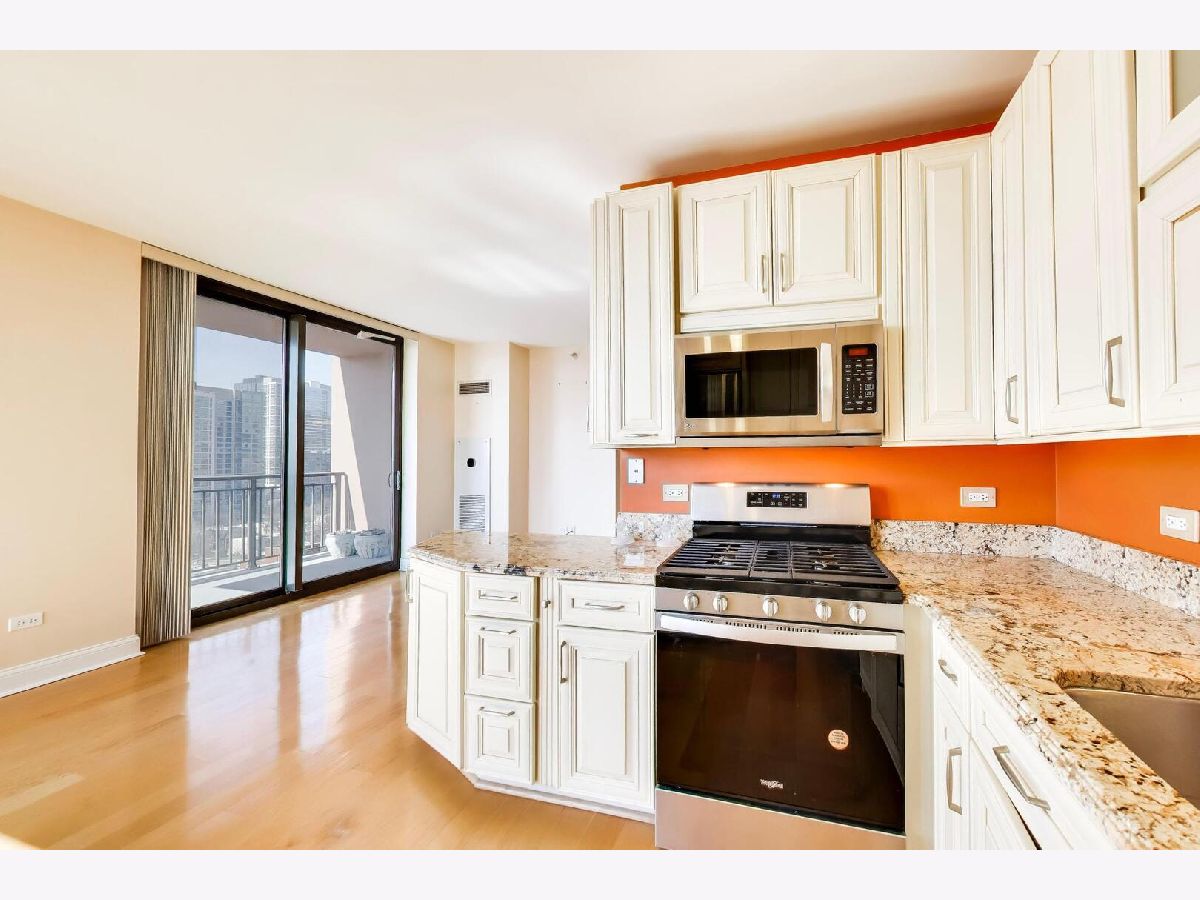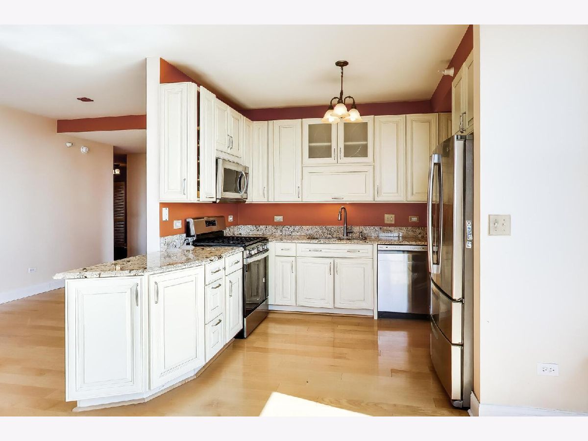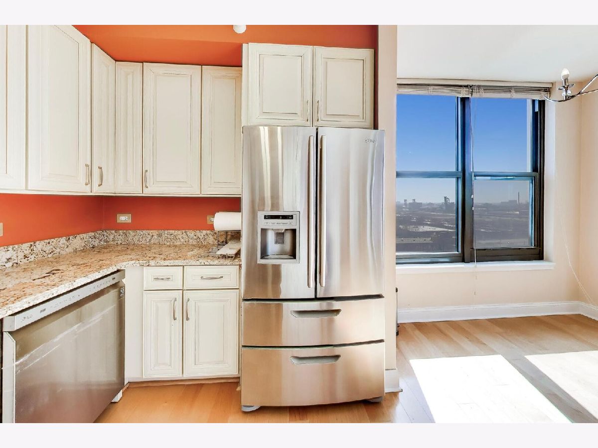 Just reduced! Well maintained 2 bedroom 2 bathroom condo in the South Loop priced to sell! This corner unit features South, West and City views, newer laminate floors in the living area, a living room and dining room and a spacious balcony off the living room. The kitchen has a breakfast bar, cream cabinets, granite countertops and stainless steel appliances. There is also an in-unit washer and dryer, a jacuzzi tub in the second bathroom and a primary bedroom with a full bathroom. A 1-car garage parking space is included in the price! This is a full amenity building with a 24 hr doorman, outdoor pool, hospitality guest suite and dog run. Fitness Formula Club (FFC) is on site (separate cost for membership). Within short walking distance to Trader Joe's, Jewel, restaurants, dog park, Green & Red lines, CTA, Grant Park, the Lakefront, museums, Roosevelt Collection Shops and much more! Check out the 3D tour.