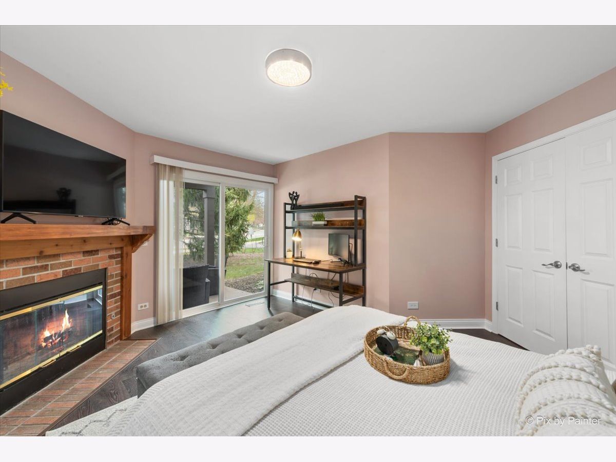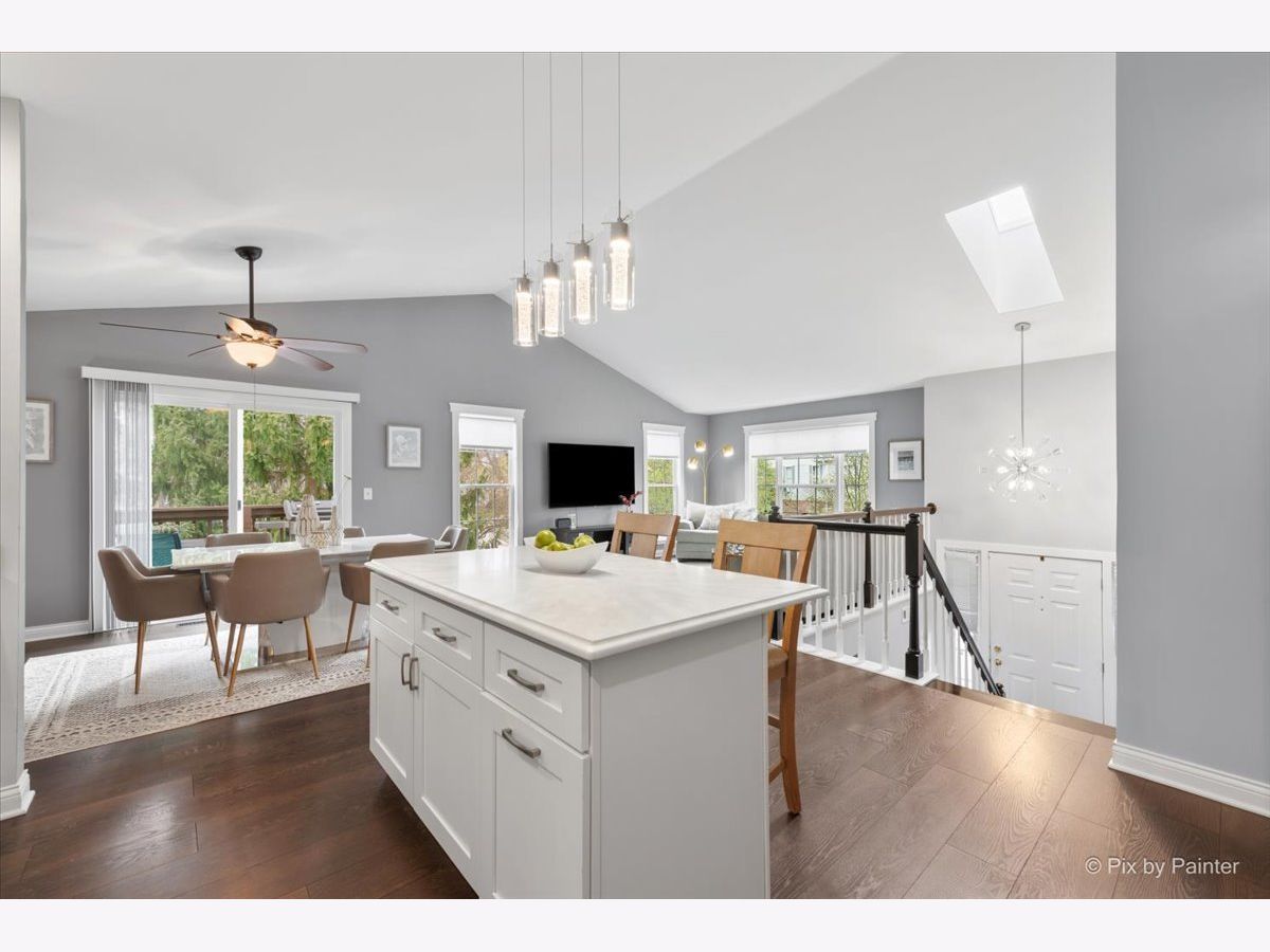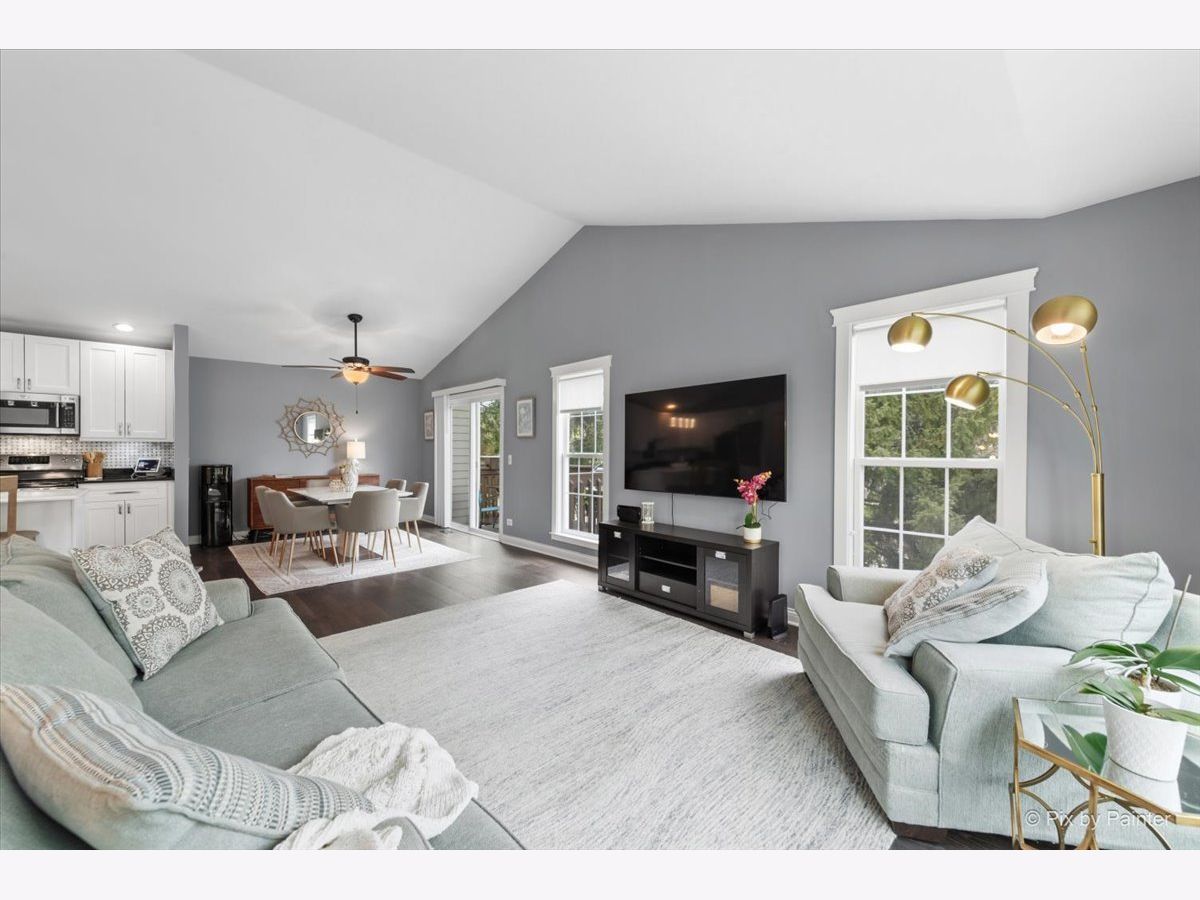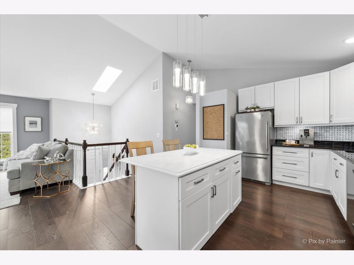 Looking for a completely remodeled home? Your search ends here. This beautifully updated end-unit offers a perfect blend of style, comfort, and modern convenience. The stunning kitchen features quartz countertops, white shaker cabinetry, stainless steel appliances, a spacious island with breakfast bar, a striking backsplash, and a pantry for added storage. The kitchen opens seamlessly to the living and dining areas, highlighted by vaulted ceilings and a wall of windows that fill the space with natural light. A sliding glass door off the dining area leads to a private balcony-perfect for relaxing or entertaining. The primary bedroom boasts access to a luxurious shared bath complete with a freestanding soaking tub, an updated walk-in shower, dual vanities, and elegant tile flooring. A large walk-in closet with custom organizers adds both function and style. The walkout basement expands your living space with an additional bedroom, full bath, den, and laundry room. The den features a cozy brick fireplace and sliding glass doors leading to a patio. The laundry room is well-appointed with front-load washer and dryer, cabinetry, and a convenient folding area. The lower-level bathroom has also been fully updated. Throughout the home, you'll find gorgeous luxury vinyl plank flooring, crisp white trim, six-panel doors, and stylish modern light fixtures. Ideally located near shopping, dining, and everyday conveniences, the community also offers scenic green space and a peaceful pond.