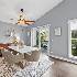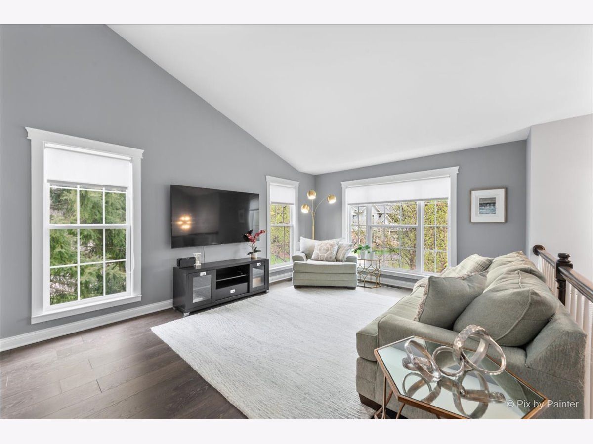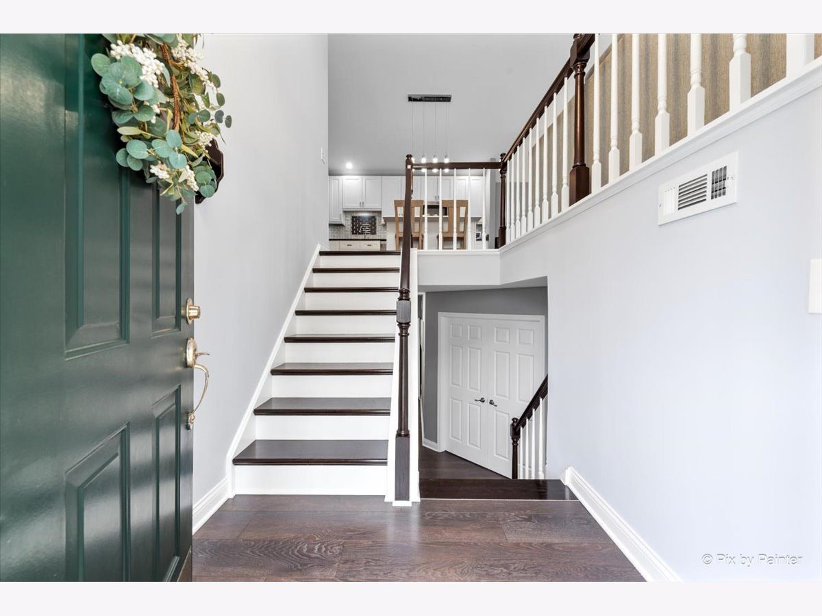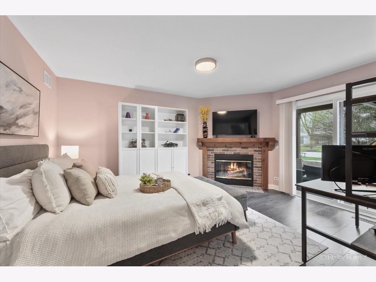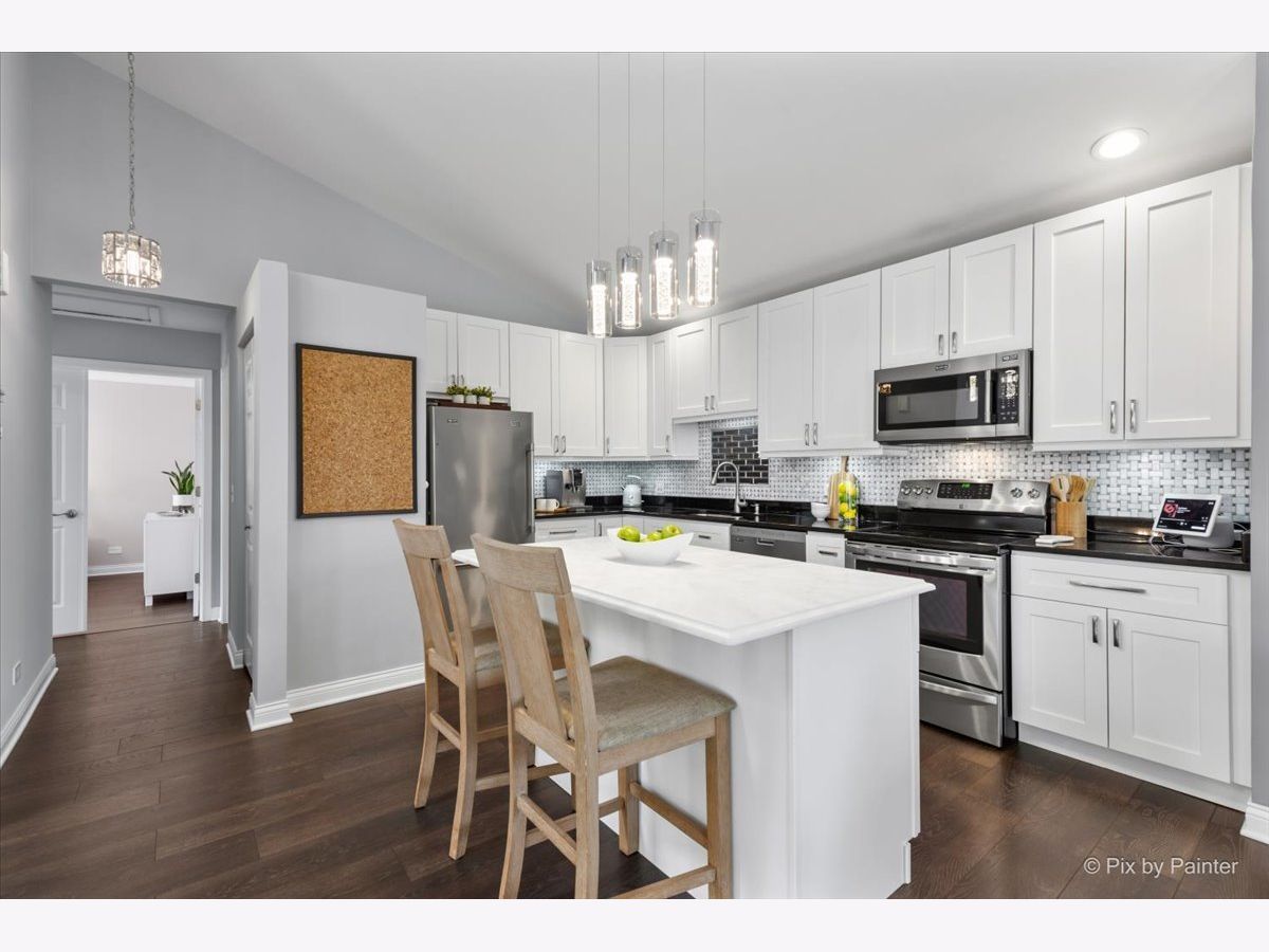 Looking for a completely remodeled home? Your search ends here. This beautifully updated end-unit offers a perfect blend of style, comfort, and modern convenience. The stunning kitchen features quartz countertops, white shaker cabinetry, stainless steel appliances, a spacious island with breakfast bar, a striking backsplash, and a pantry for added storage. The kitchen opens seamlessly to the living and dining areas, highlighted by vaulted ceilings and a wall of windows that fill the space with natural light. A sliding glass door off the dining area leads to a private balcony-perfect for relaxing or entertaining. The primary bedroom boasts access to a luxurious shared bath complete with a freestanding soaking tub, an updated walk-in shower, dual vanities, and elegant tile flooring. A large walk-in closet with custom organizers adds both function and style. The walkout basement expands your living space with an additional bedroom, full bath, den, and laundry room. The den features a cozy brick fireplace and sliding glass doors leading to a patio. The laundry room is well-appointed with front-load washer and dryer, cabinetry, and a convenient folding area. The lower-level bathroom has also been fully updated. Throughout the home, you'll find gorgeous luxury vinyl plank flooring, crisp white trim, six-panel doors, and stylish modern light fixtures. Ideally located near shopping, dining, and everyday conveniences, the community also offers scenic green space and a peaceful pond.