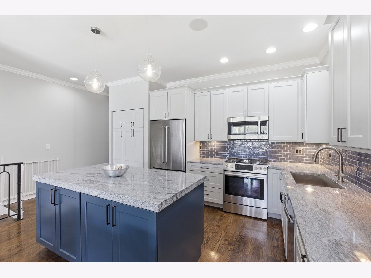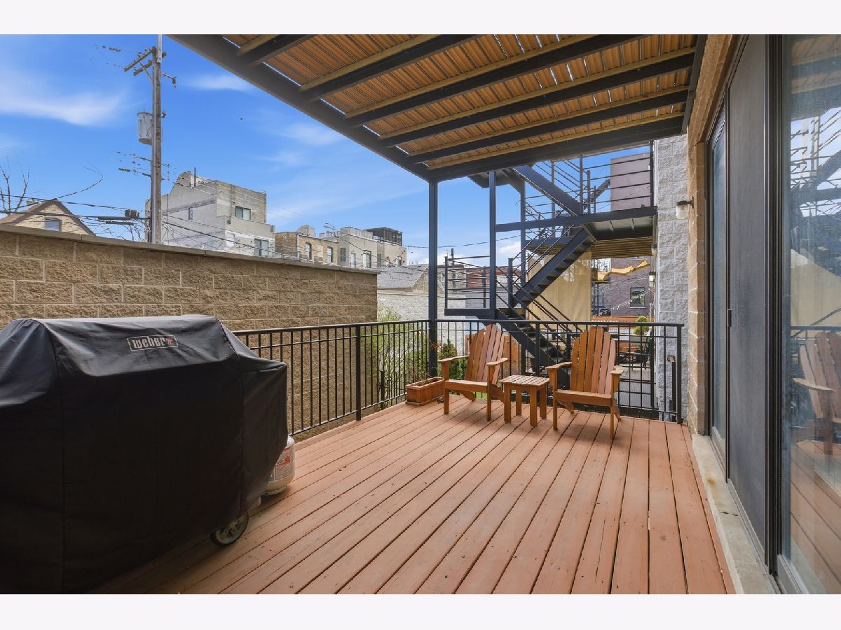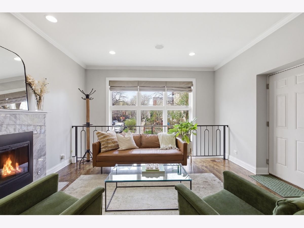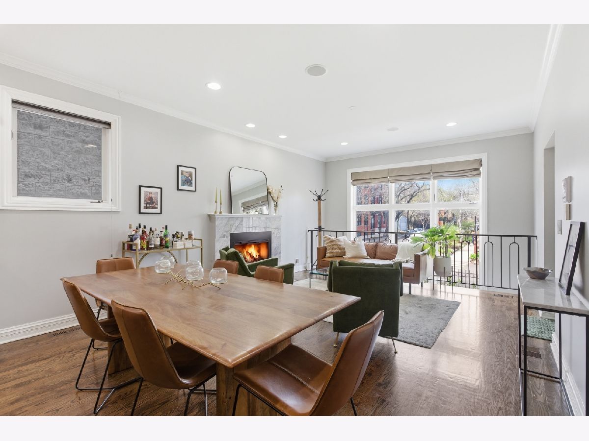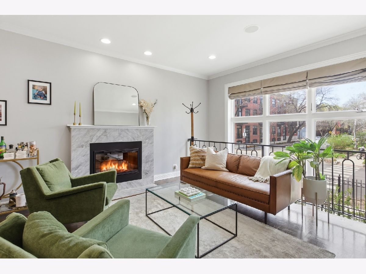 Stunning 3 bedroom, 3 bathroom duplex down condo located on a quiet tree-lined street in the bustling East Ukrainian Village neighborhood. This home features an open split-level layout with tall ceilings, tons of natural light, and beautiful refinished hardwood floors throughout. Two oversized living spaces showcase two wood burning fireplaces. The modern and updated kitchen features crisp white cabinets, high end stainless steel appliances, granite countertops with subway-tile backsplash, a custom pantry, and a large island that leaves plenty of room for entertaining. The generously sized primary bedroom on the main level features a custom walk-in-closet and an en-suite bath with a double vanity, separate shower with body sprays, a jetted tub, and a rear-facing private balcony, perfect for lounging with your morning cup of coffee. The second bedroom on the upper level offers generous space, and the third bedroom on the lower level features French doors that open into the family room. The lower level features a private patio space, perfect for grilling or huddling around a fire pit. The entire home and two outdoor spaces are hardwired for surround sound. Ample storage and in-unit side-by-side washer/dryer in the full laundry room with a sink are located in the lower level. Garage parking and storage closet are included. Don't miss this gem just a block from cafes, restaurants, bakeries, shopping, and everything Ukrainian Village has to offer! Across the street from the community garden, and 4 streets from the CTA Blue Line Division station.