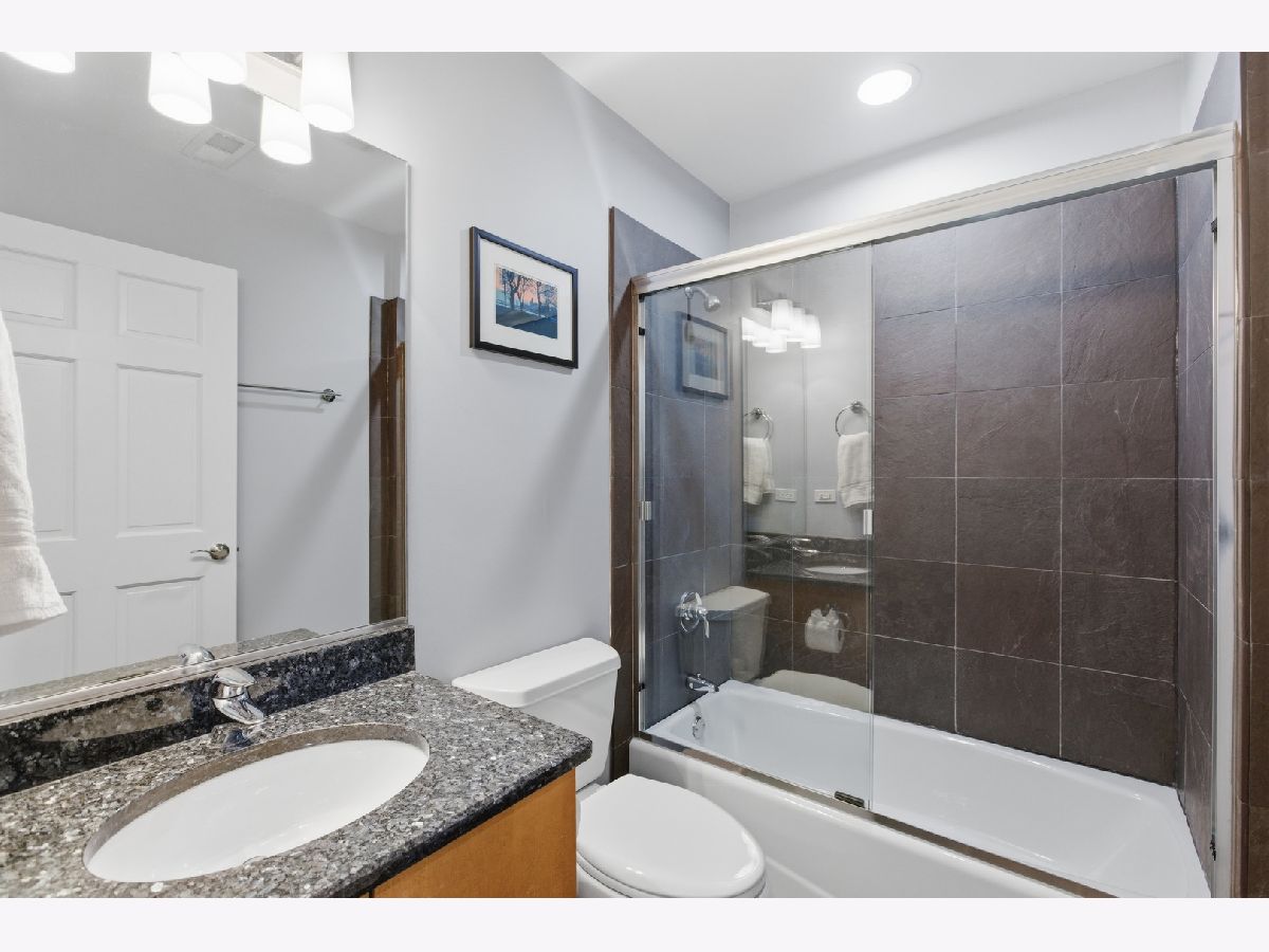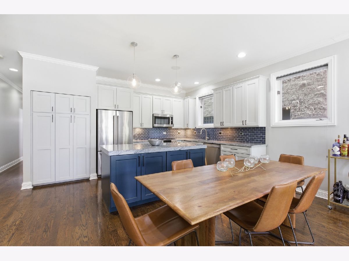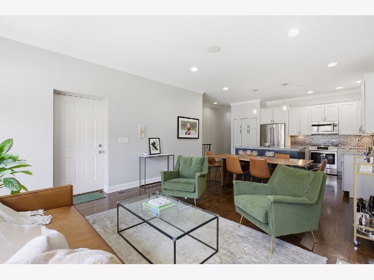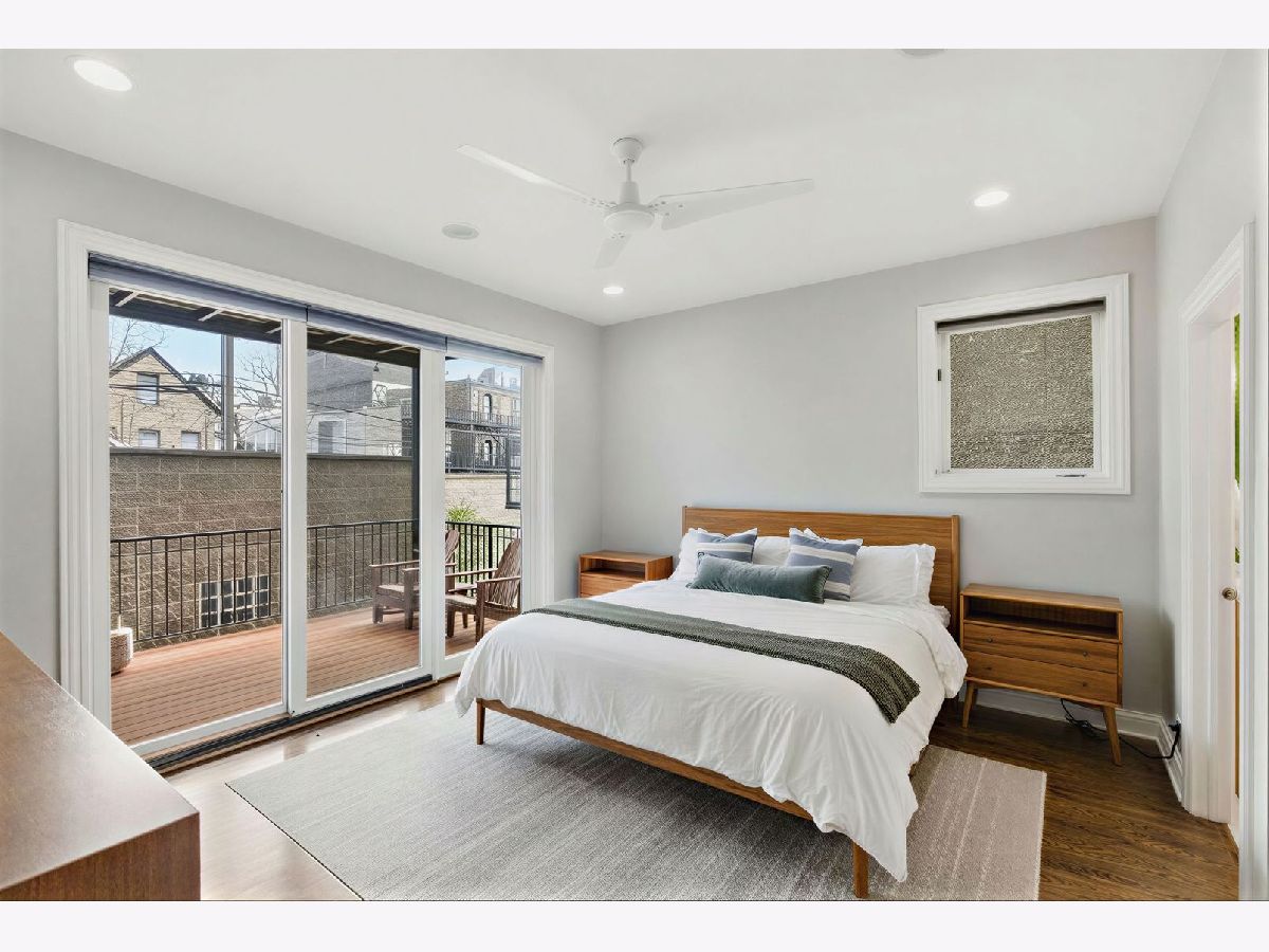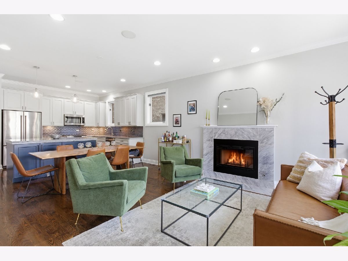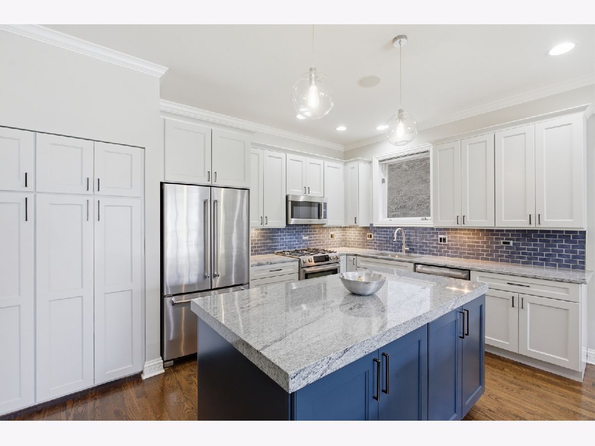 Stunning 3 bedroom, 3 bathroom duplex down condo located on a quiet tree-lined street in the bustling East Ukrainian Village neighborhood. This home features an open split-level layout with tall ceilings, tons of natural light, and beautiful refinished hardwood floors throughout. Two oversized living spaces showcase two wood burning fireplaces. The modern and updated kitchen features crisp white cabinets, high end stainless steel appliances, granite countertops with subway-tile backsplash, a custom pantry, and a large island that leaves plenty of room for entertaining. The generously sized primary bedroom on the main level features a custom walk-in-closet and an en-suite bath with a double vanity, separate shower with body sprays, a jetted tub, and a rear-facing private balcony, perfect for lounging with your morning cup of coffee. The second bedroom on the upper level offers generous space, and the third bedroom on the lower level features French doors that open into the family room. The lower level features a private patio space, perfect for grilling or huddling around a fire pit. The entire home and two outdoor spaces are hardwired for surround sound. Ample storage and in-unit side-by-side washer/dryer in the full laundry room with a sink are located in the lower level. Garage parking and storage closet are included. Don't miss this gem just a block from cafes, restaurants, bakeries, shopping, and everything Ukrainian Village has to offer! Across the street from the community garden, and 4 streets from the CTA Blue Line Division station.